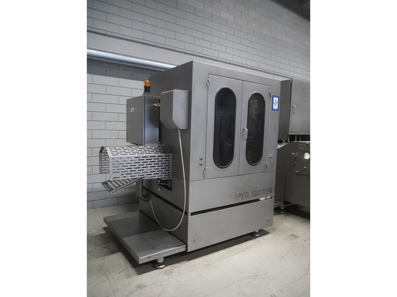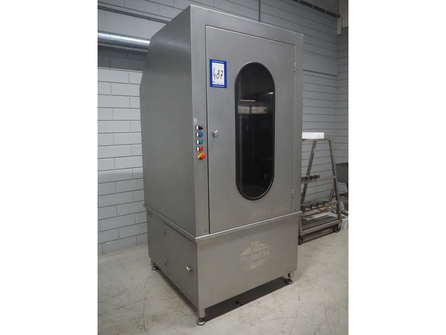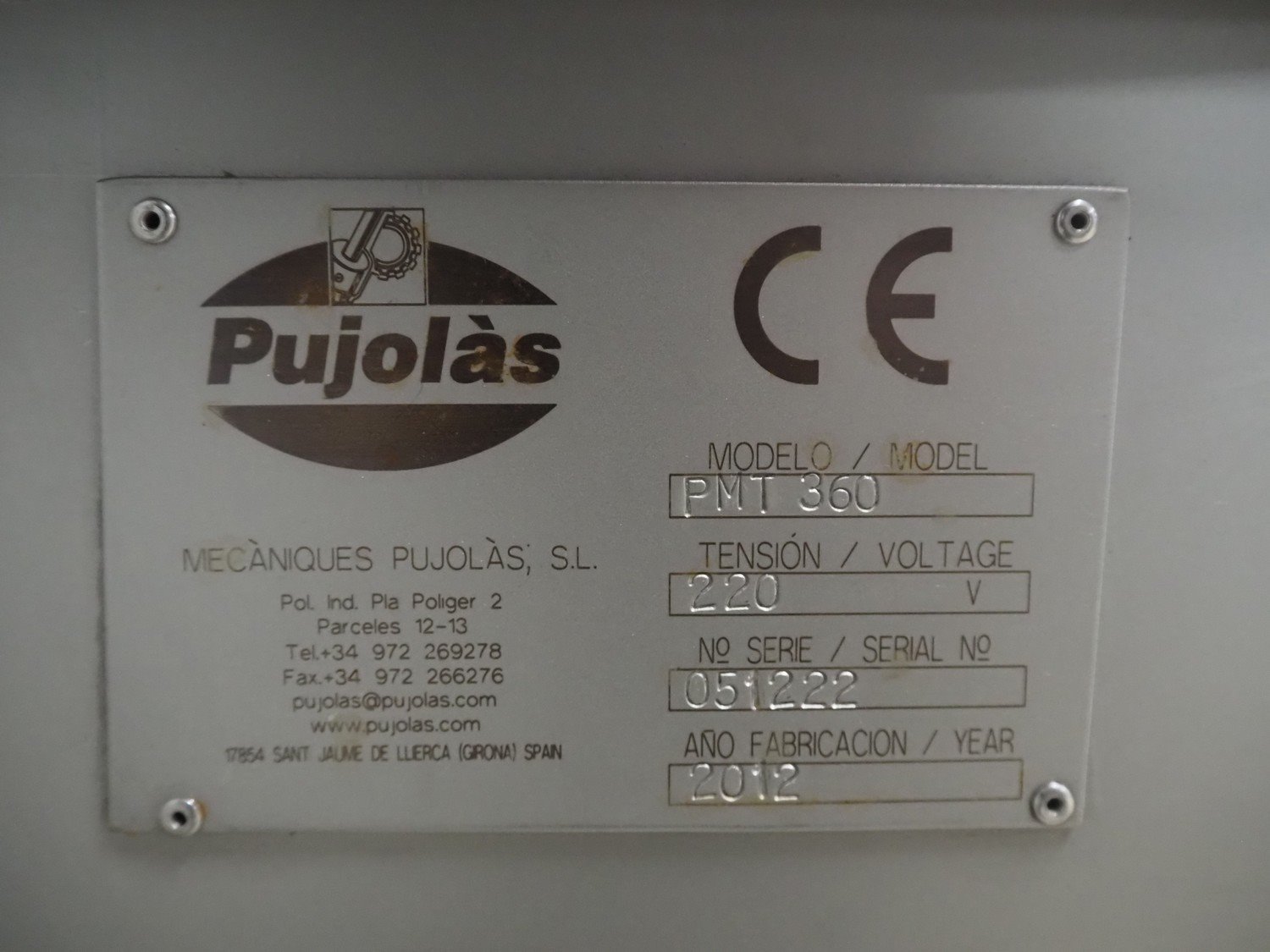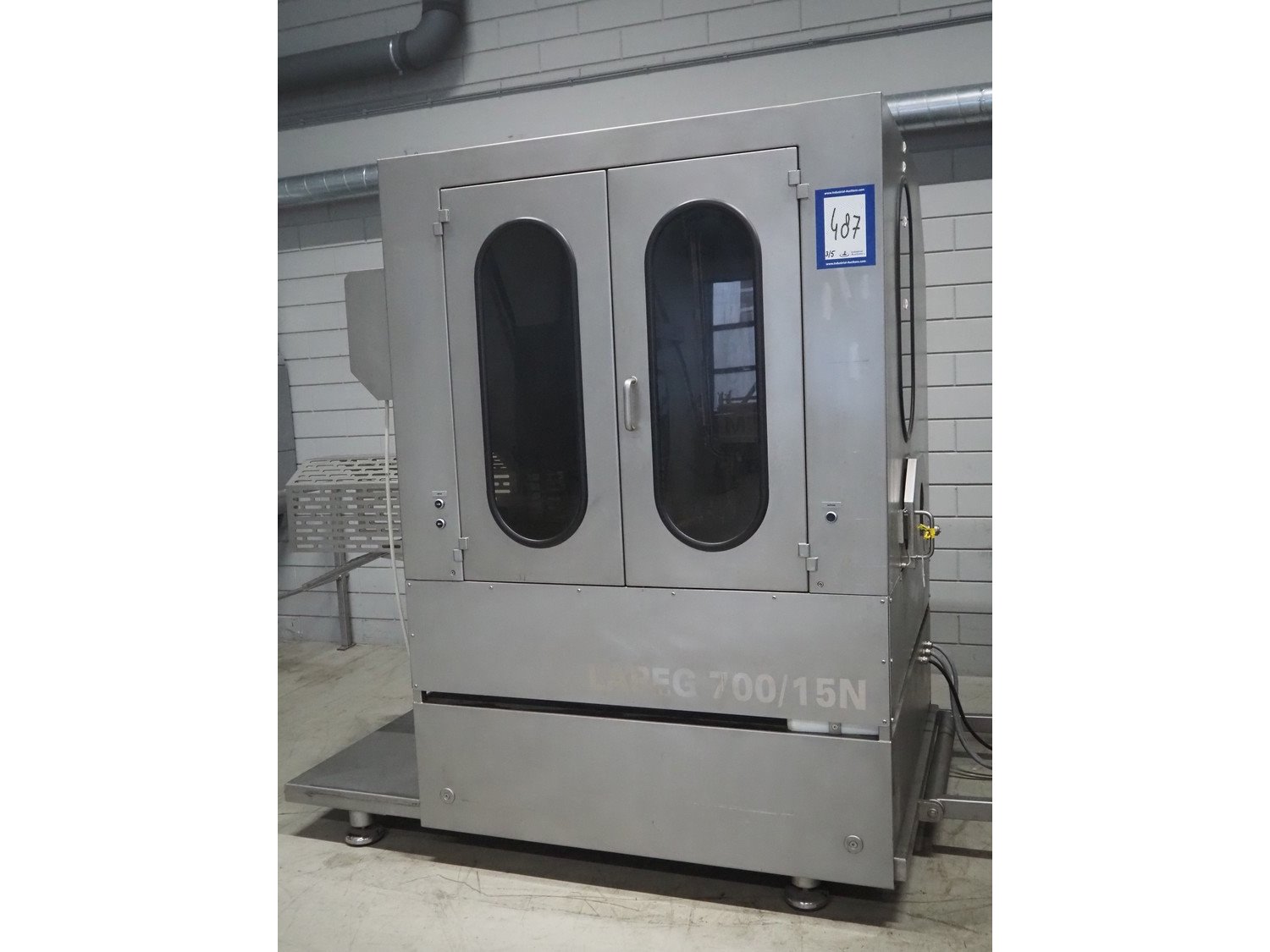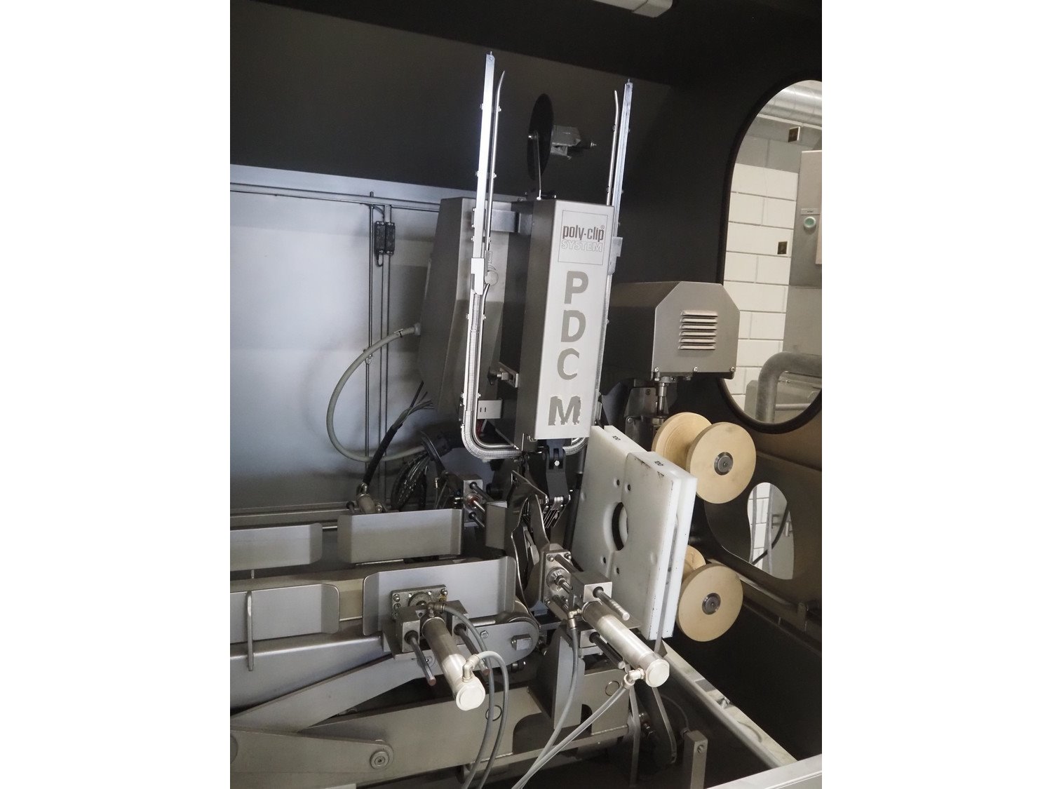 Pujolàs automatic filling and clipping machine, consisting of: Pujolàs automatic filling and clipping machine, model filling machine: LAPEG 700/15N, serial number: 051257, year of construction: 2012, 400 V, diameter filling pipe: 100 mm, plastic belt, belt width: 160 mm, including Poly-Clip Systems double clipper, type: PDC M 700, number: 011/12, 4-6 bar, total dimensions: 7500 mm x 3100 mm x 2320 mm and 2 s/s trolleys with parts, dimensions: 1430 mm x 750 mm x 900 mm and 900 mm x 800 mm x 1400 mm and Pujolàs automatic netting machine, model: PMT 360, serial number: 051222, year of construction: 2012, 220 V, weight: 270 kg, dimensions: 1160 mm x 1210 mm x 2380 mm. Kavel locatie: Looyenbeemd 11, 5652 BH Eindhoven, Nederland