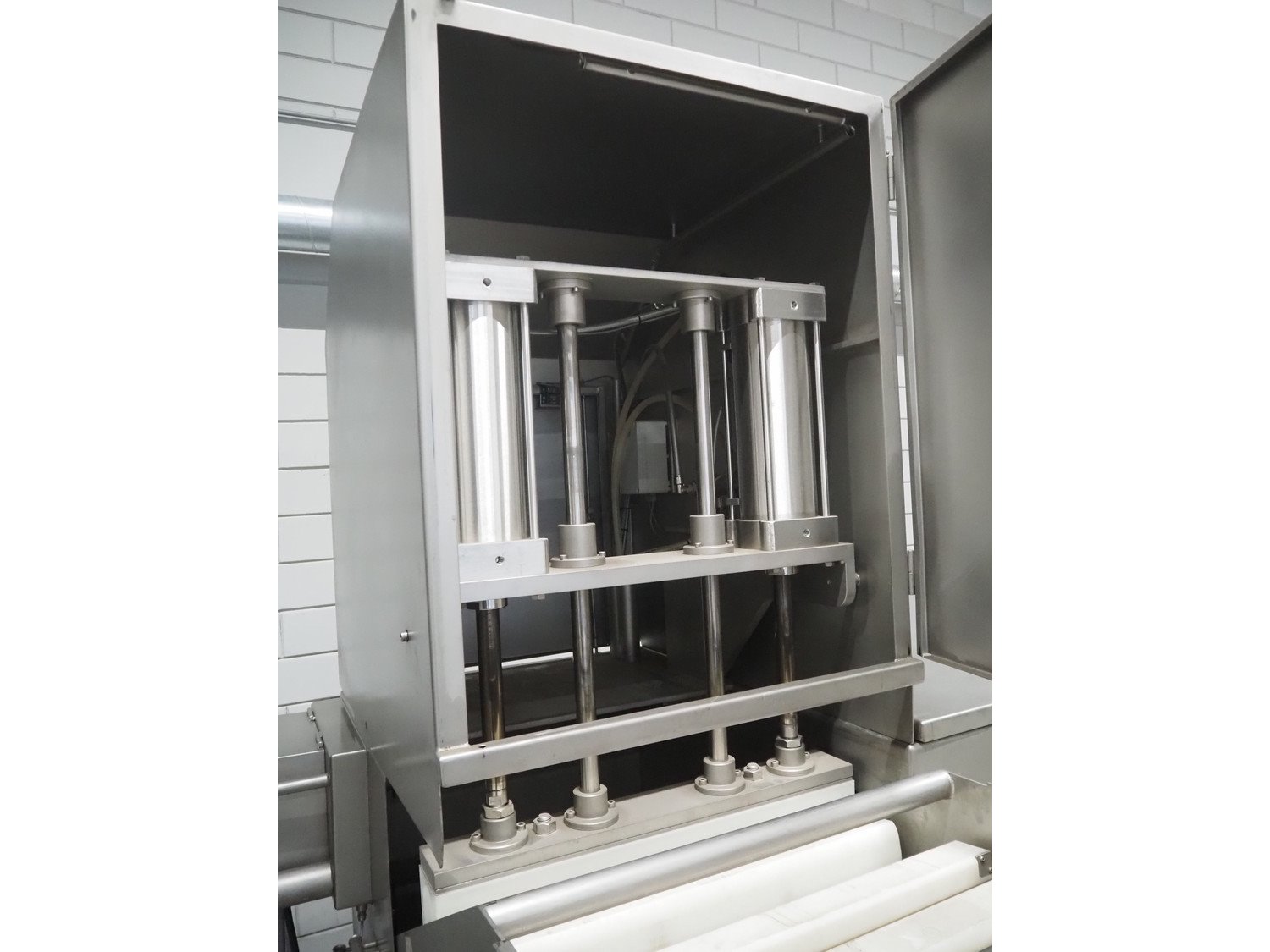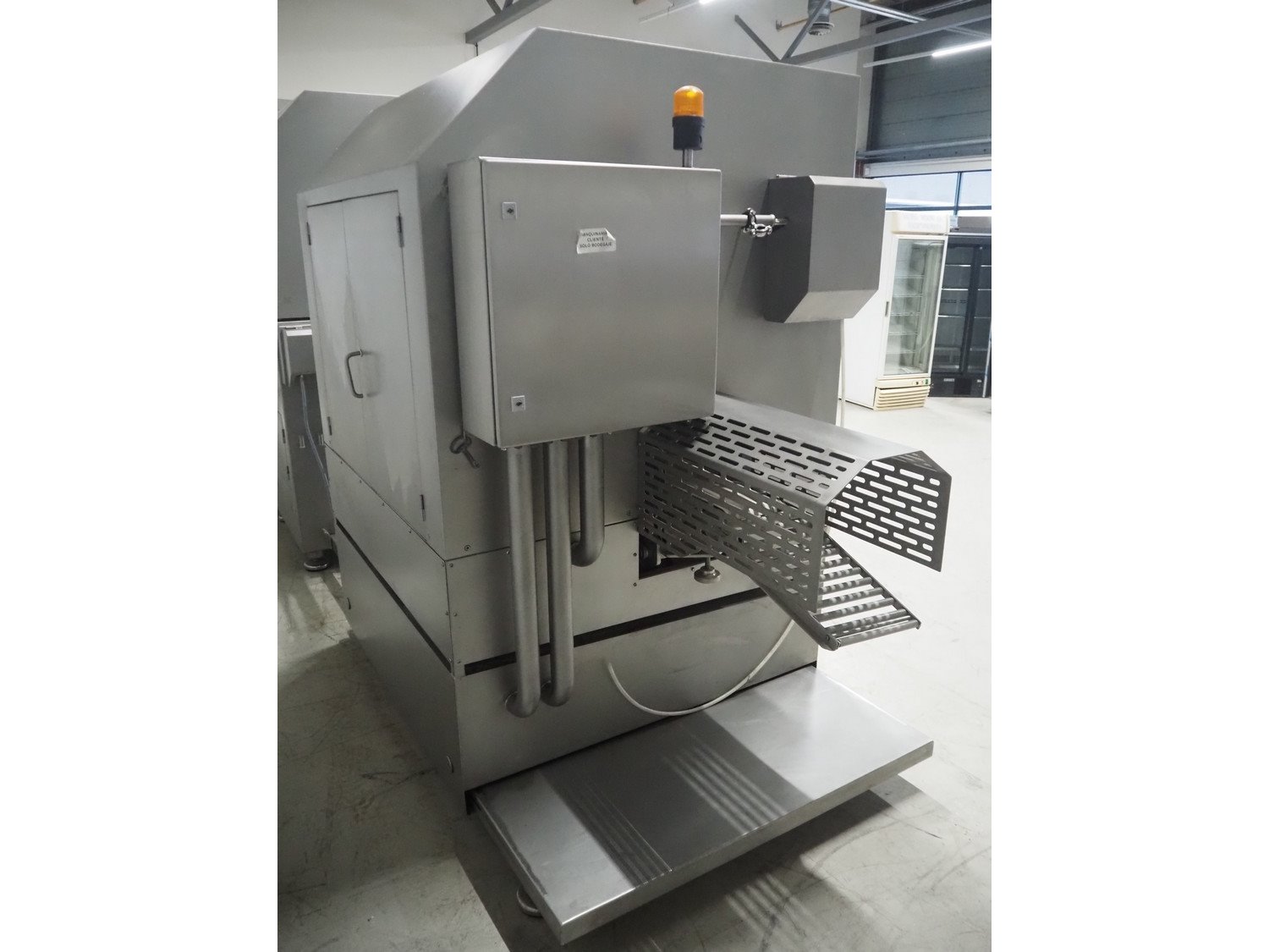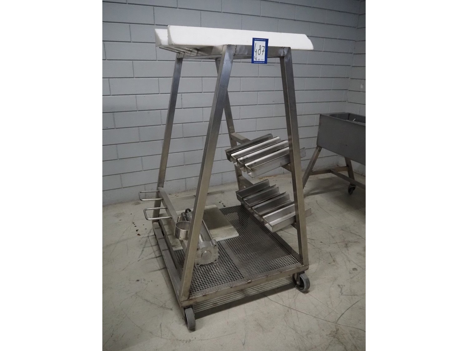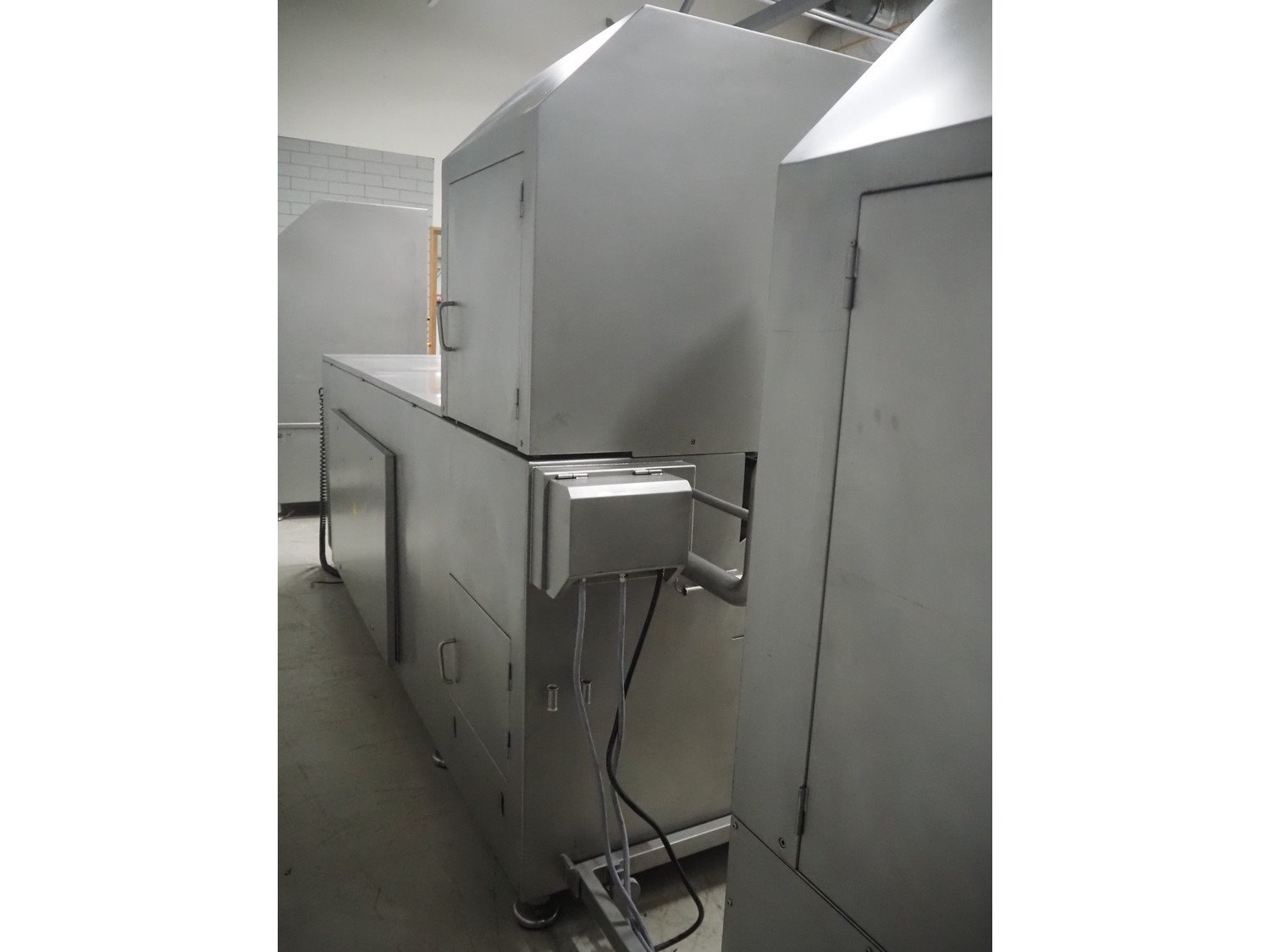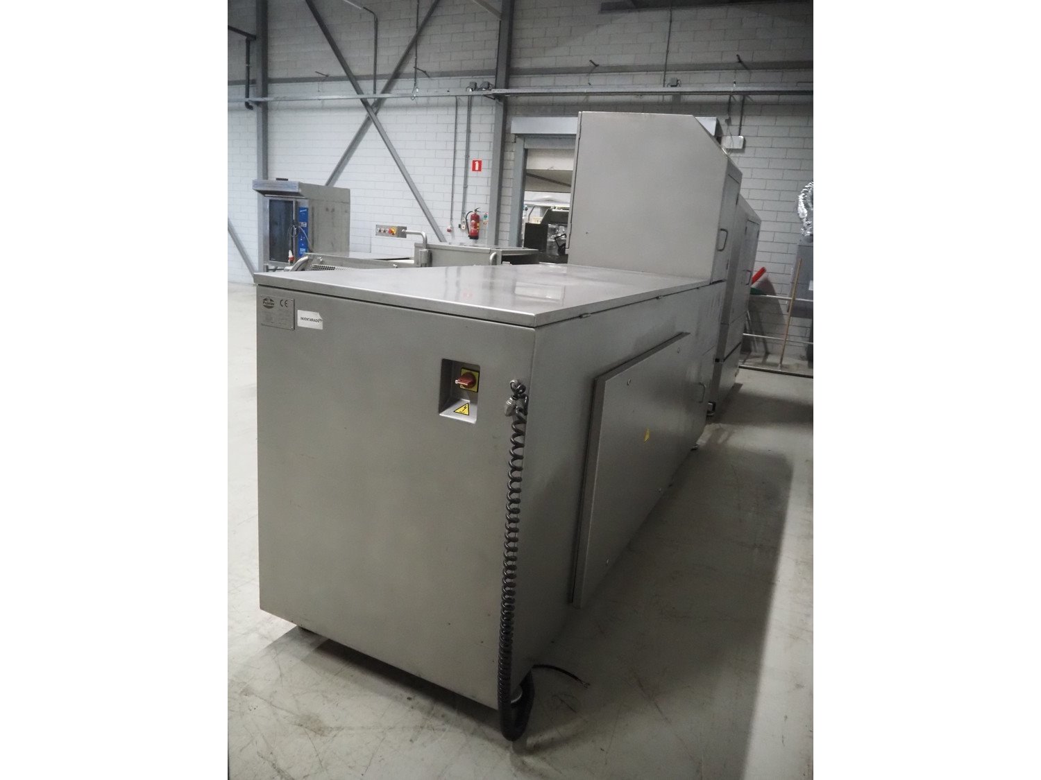 Pujolàs automatic filling and clipping machine, consisting of: Pujolàs automatic filling and clipping machine, model filling machine: LAPEG 700/15N, serial number: 051257, year of construction: 2012, 400 V, diameter filling pipe: 100 mm, plastic belt, belt width: 160 mm, including Poly-Clip Systems double clipper, type: PDC M 700, number: 011/12, 4-6 bar, total dimensions: 7500 mm x 3100 mm x 2320 mm and 2 s/s trolleys with parts, dimensions: 1430 mm x 750 mm x 900 mm and 900 mm x 800 mm x 1400 mm and Pujolàs automatic netting machine, model: PMT 360, serial number: 051222, year of construction: 2012, 220 V, weight: 270 kg, dimensions: 1160 mm x 1210 mm x 2380 mm. Kavel locatie: Looyenbeemd 11, 5652 BH Eindhoven, Nederland
