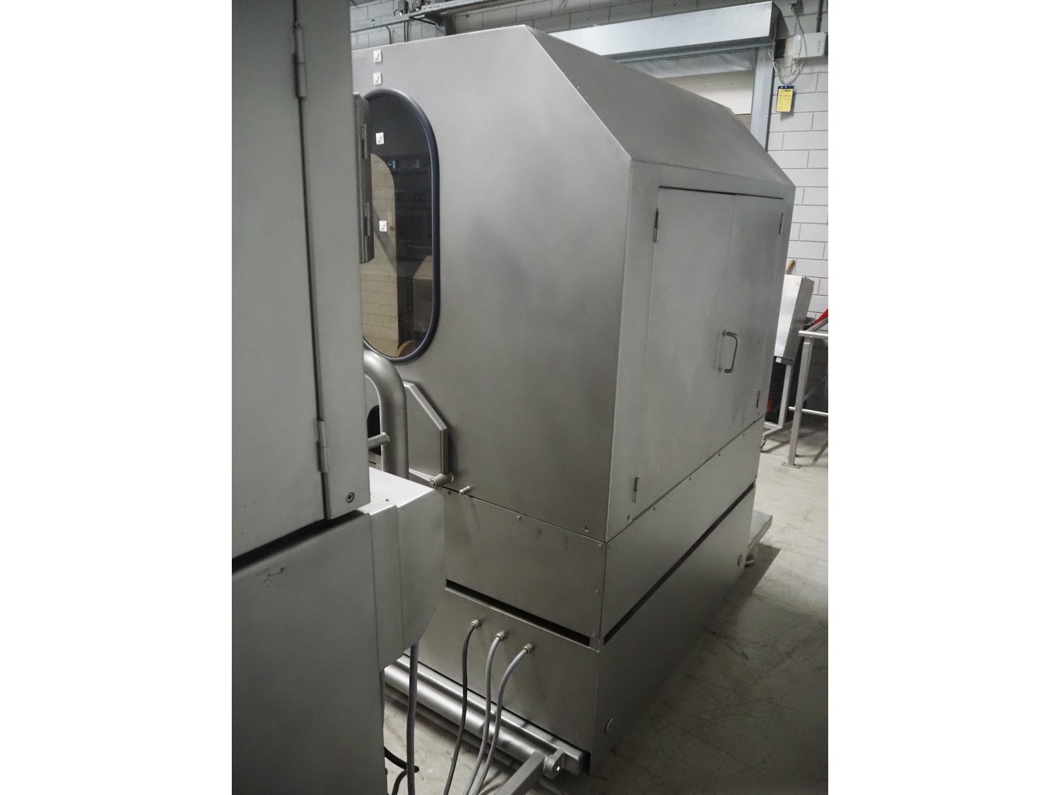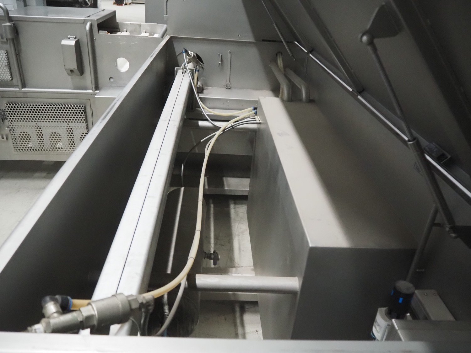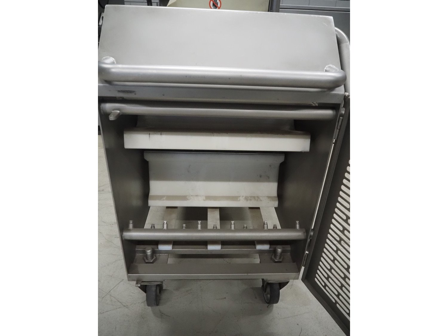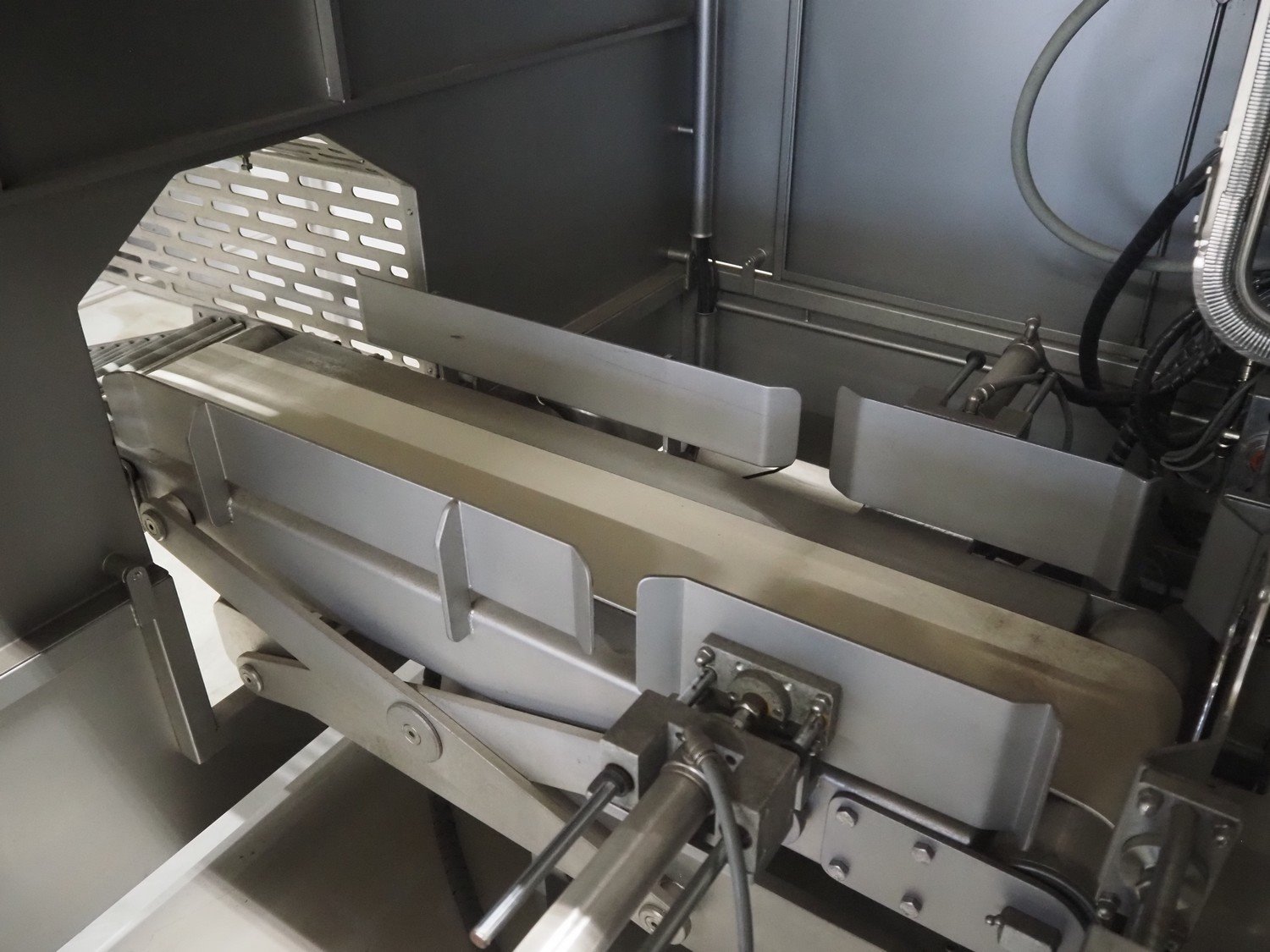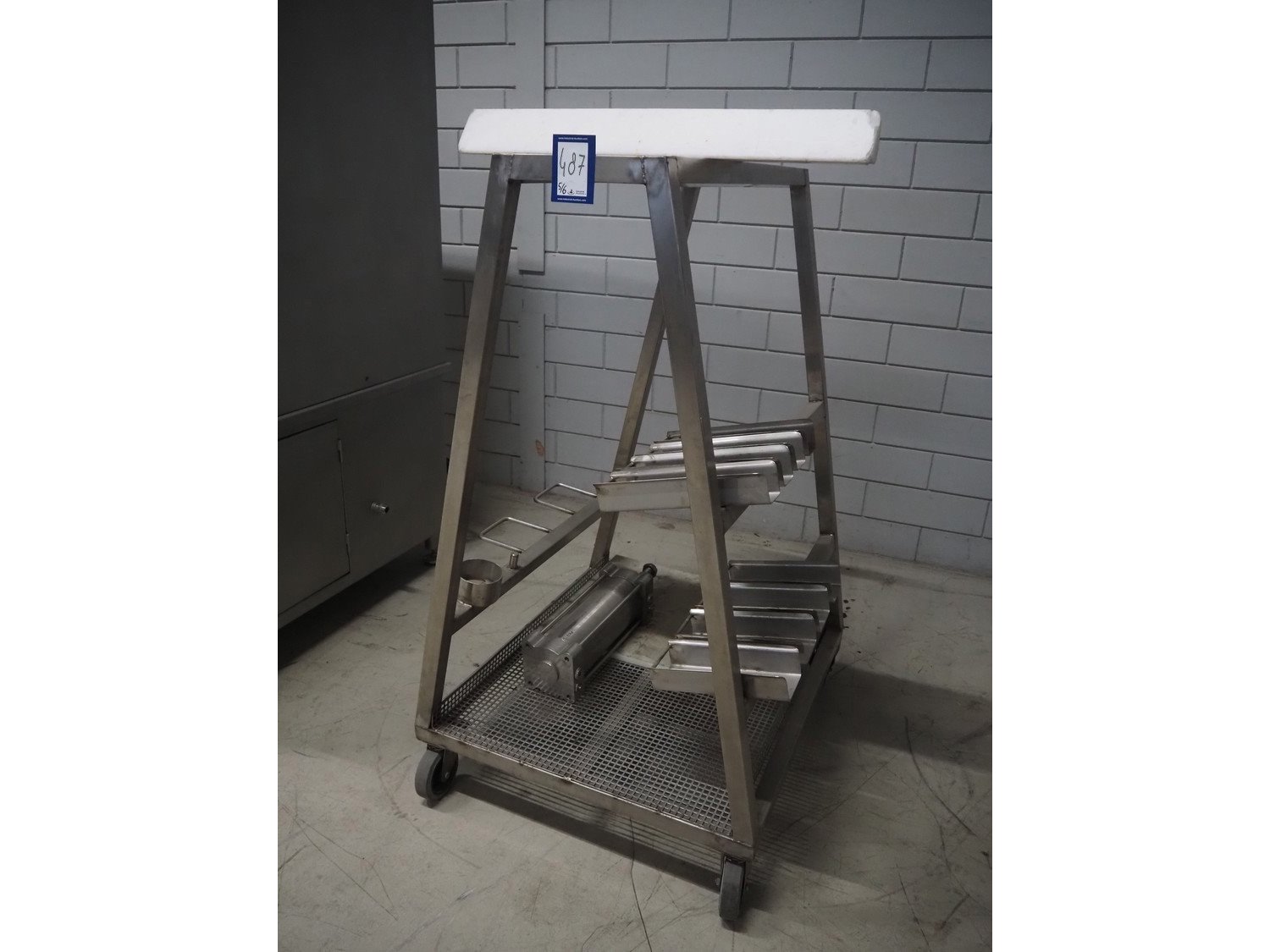 Pujolàs automatic filling and clipping machine, consisting of: Pujolàs automatic filling and clipping machine, model filling machine: LAPEG 700/15N, serial number: 051257, year of construction: 2012, 400 V, diameter filling pipe: 100 mm, plastic belt, belt width: 160 mm, including Poly-Clip Systems double clipper, type: PDC M 700, number: 011/12, 4-6 bar, total dimensions: 7500 mm x 3100 mm x 2320 mm and 2 s/s trolleys with parts, dimensions: 1430 mm x 750 mm x 900 mm and 900 mm x 800 mm x 1400 mm and Pujolàs automatic netting machine, model: PMT 360, serial number: 051222, year of construction: 2012, 220 V, weight: 270 kg, dimensions: 1160 mm x 1210 mm x 2380 mm. Kavel locatie: Looyenbeemd 11, 5652 BH Eindhoven, Nederland