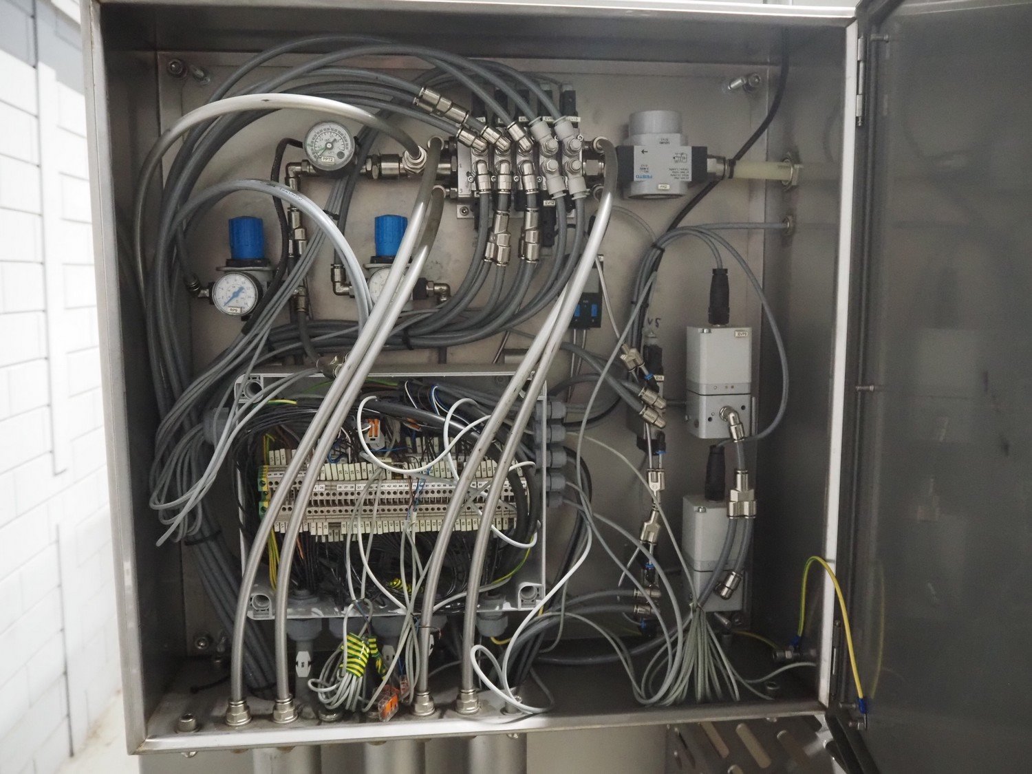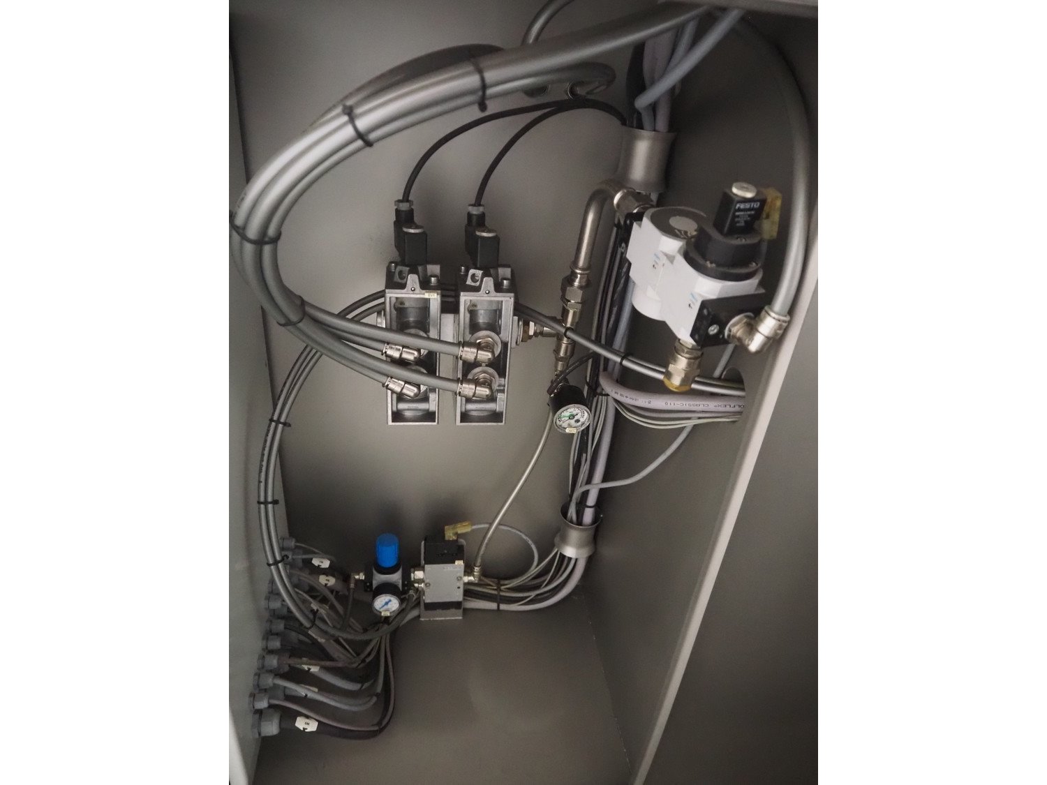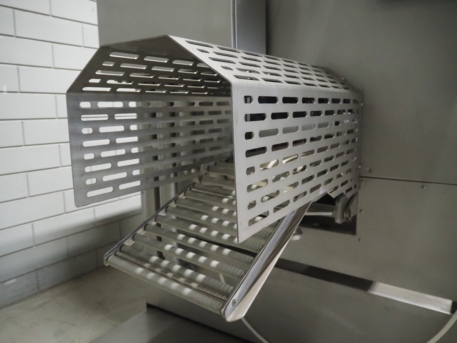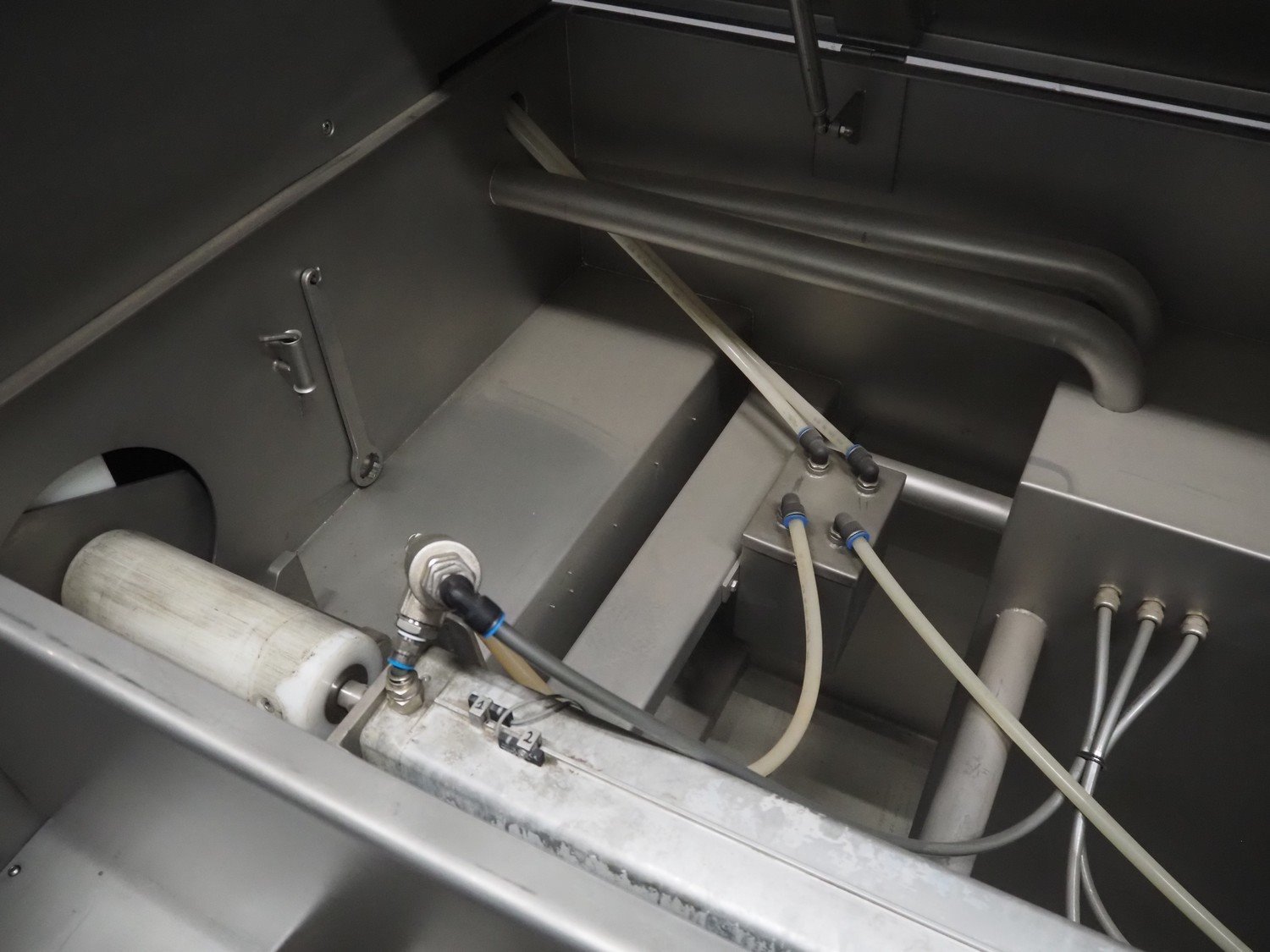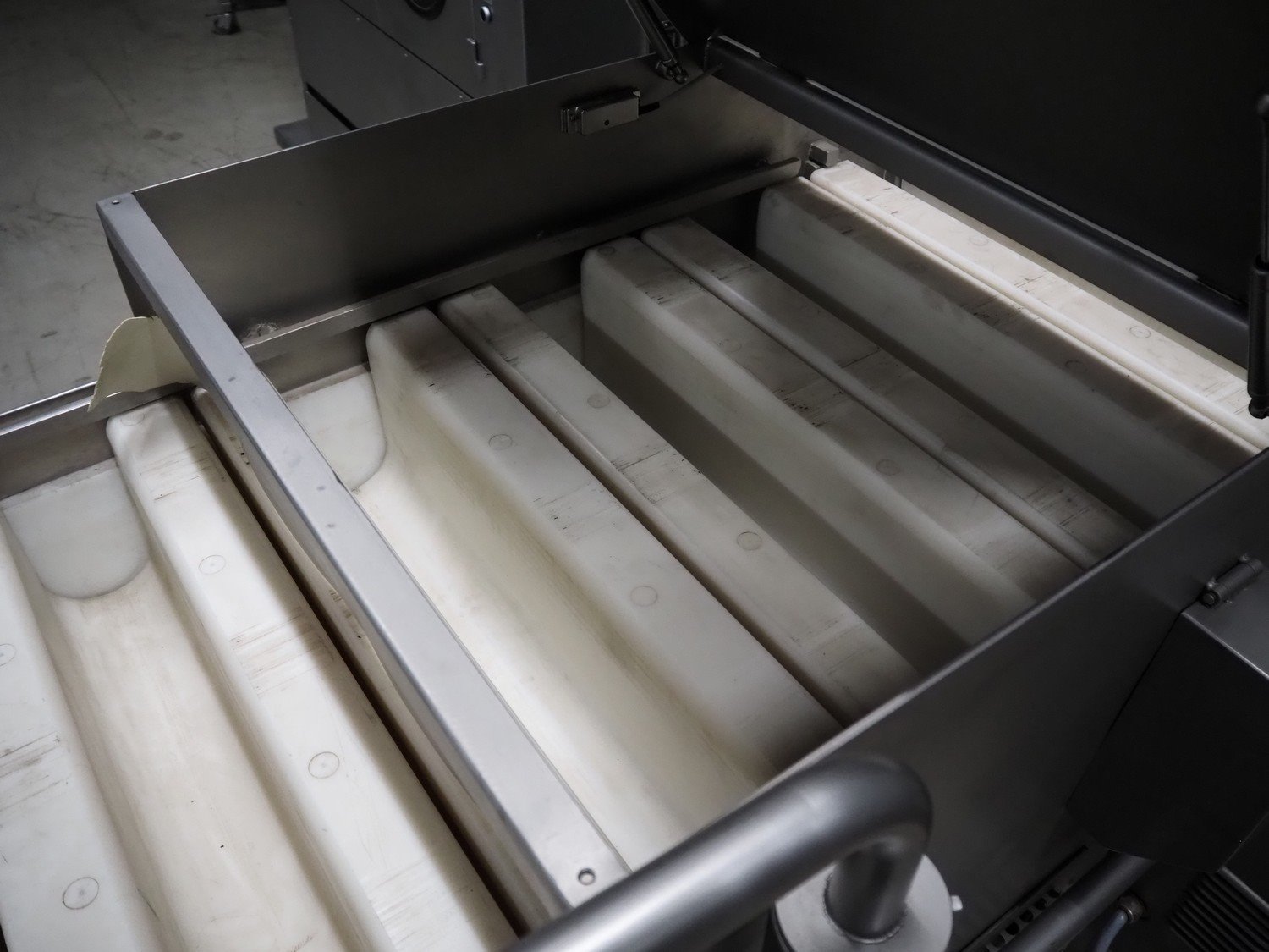 Pujolàs automatic filling and clipping machine, consisting of: Pujolàs automatic filling and clipping machine, model filling machine: LAPEG 700/15N, serial number: 051257, year of construction: 2012, 400 V, diameter filling pipe: 100 mm, plastic belt, belt width: 160 mm, including Poly-Clip Systems double clipper, type: PDC M 700, number: 011/12, 4-6 bar, total dimensions: 7500 mm x 3100 mm x 2320 mm and 2 s/s trolleys with parts, dimensions: 1430 mm x 750 mm x 900 mm and 900 mm x 800 mm x 1400 mm and Pujolàs automatic netting machine, model: PMT 360, serial number: 051222, year of construction: 2012, 220 V, weight: 270 kg, dimensions: 1160 mm x 1210 mm x 2380 mm. Kavel locatie: Looyenbeemd 11, 5652 BH Eindhoven, Nederland