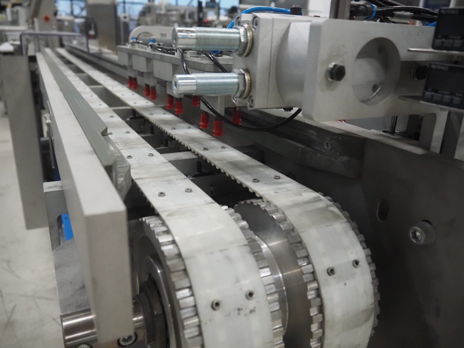 Transport belt, plastic belt, belt width: 170 mm, total dimensions: 3500 mm x 700 mm x 1100 mm. Kavel locatie: Looyenbeemd 11, 5652 BH Eindhoven, Nederland