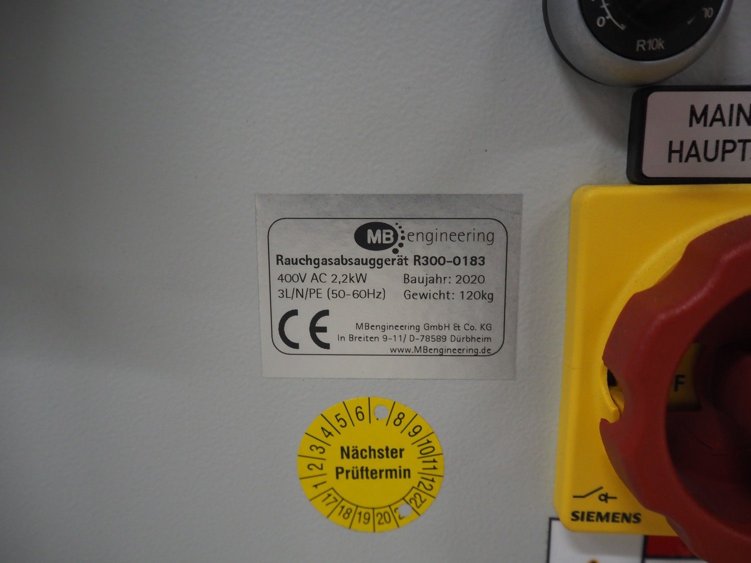 MB Engineering flue gas suction device, type: R300, dimensions: 1500 mm x 900 mm x 2500 mm. Kavel locatie: Looyenbeemd 11, 5652 BH Eindhoven, Nederland