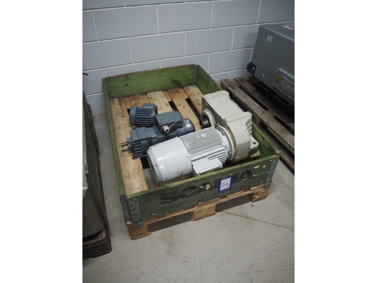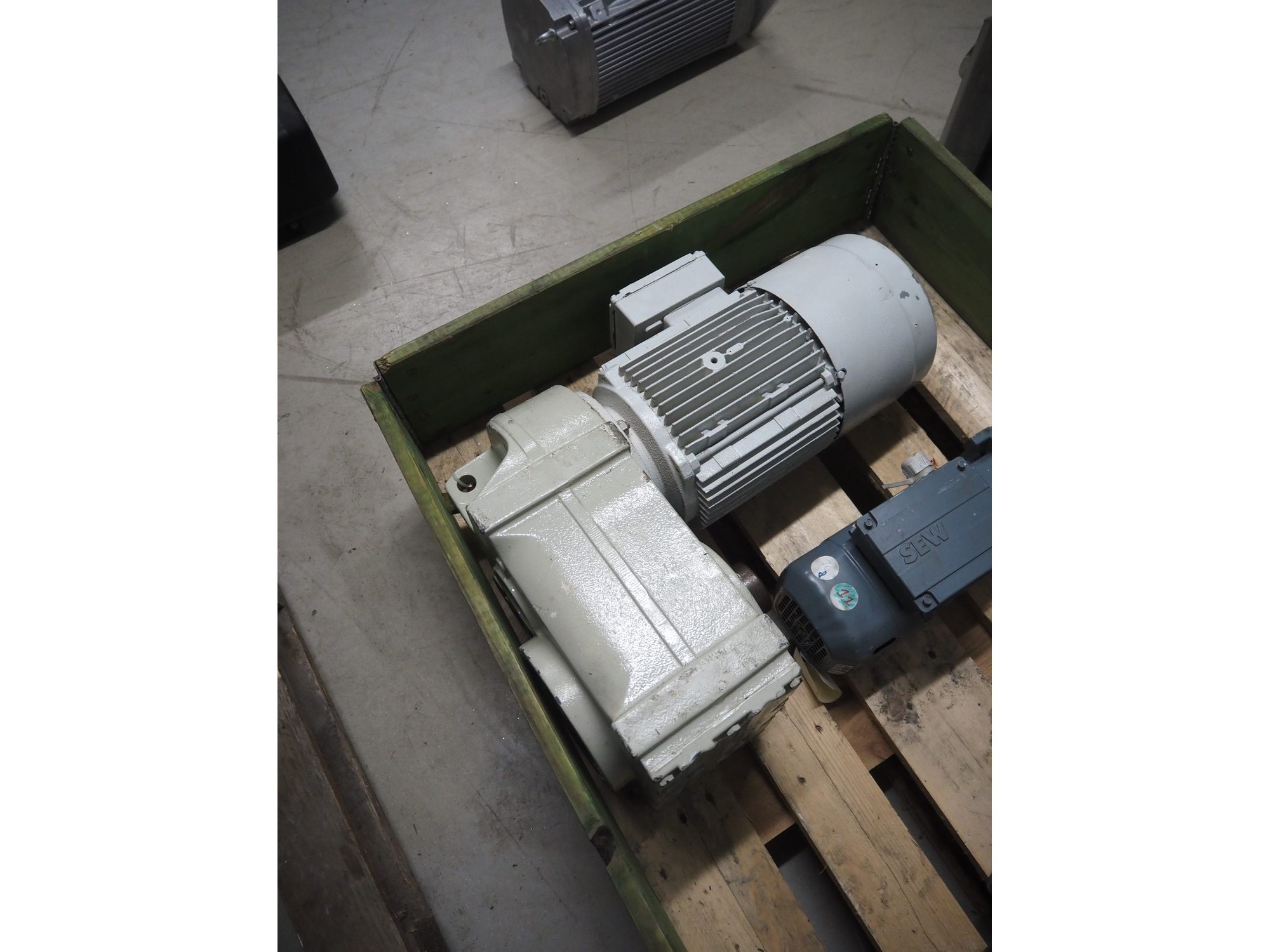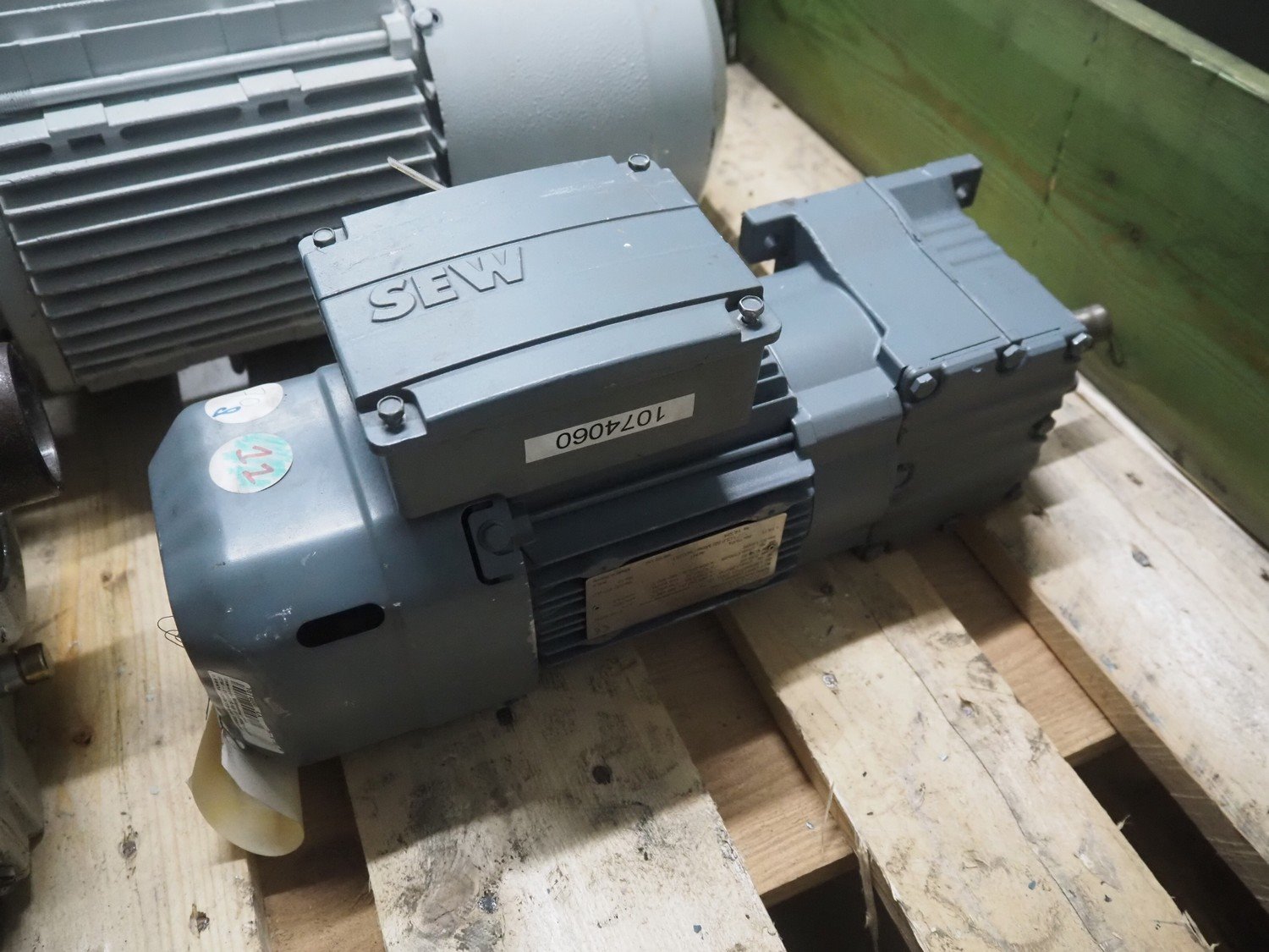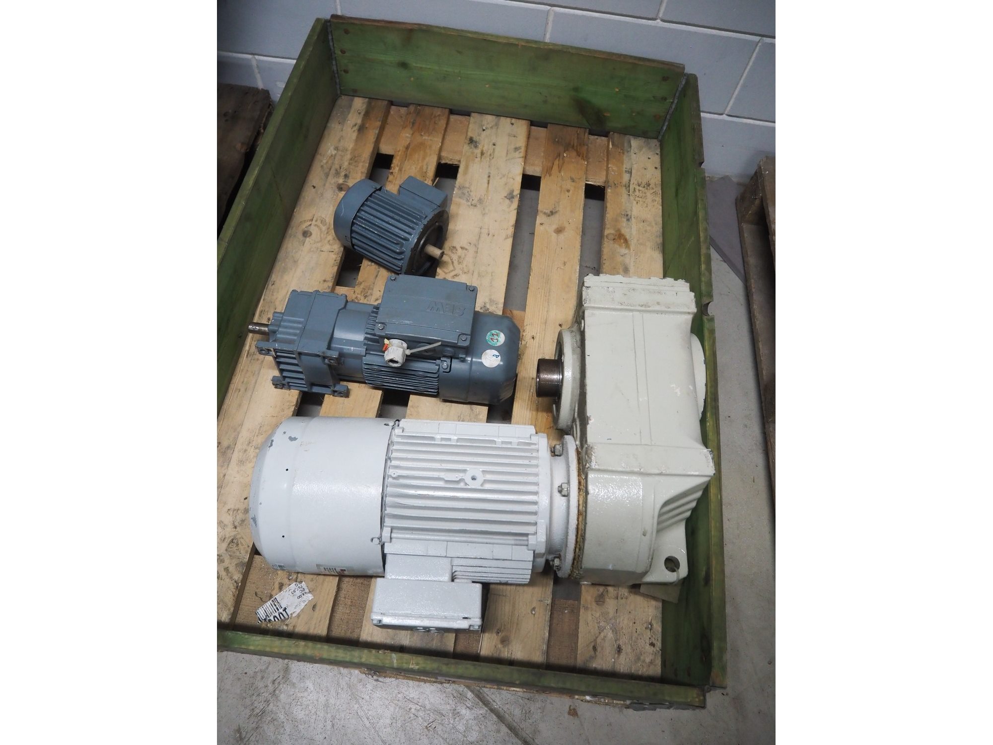 Pallet with 2 SEW motors and 1 VEM motor, dimensions pallet: 1200 mm x 800 mm x 400 mm. Kavel locatie: Looyenbeemd 11, 5652 BH Eindhoven, Nederland