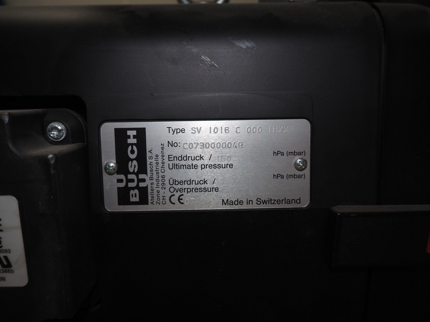 Busch vacuum pump, type: SV 1016 C 000 IHXX, number: C0730000049, year of construction: 2007, nominal pump speed: 16 m³ per hour, dimensions: 440 mm x 220 mm x 410 mm. Kavel locatie: Looyenbeemd 11, 5652 BH Eindhoven, Nederland
