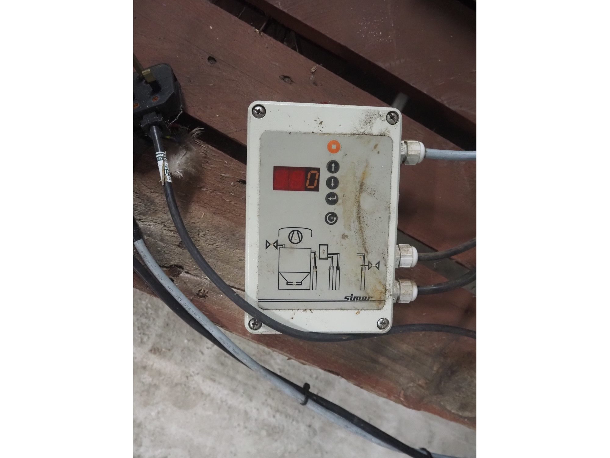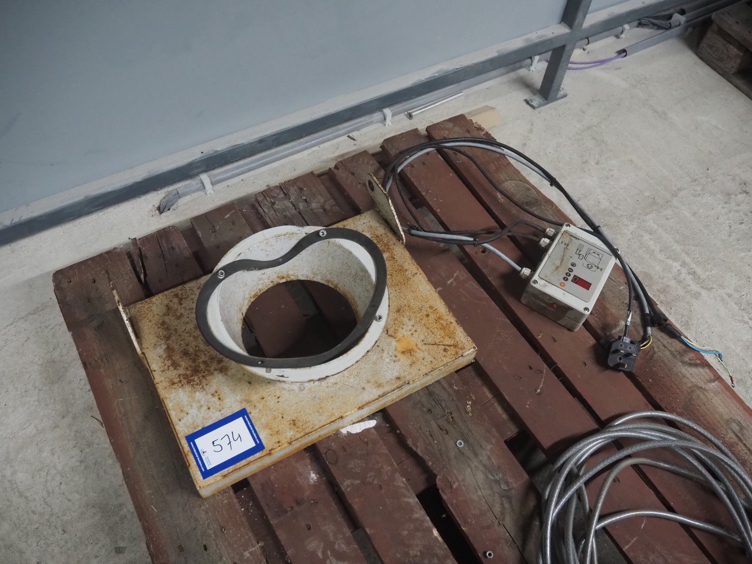 Outfeed gutter with control panel, dimensions: 510 mm x 400 mm x 160 mm. Kavel locatie: Looyenbeemd 11, 5652 BH Eindhoven, Nederland