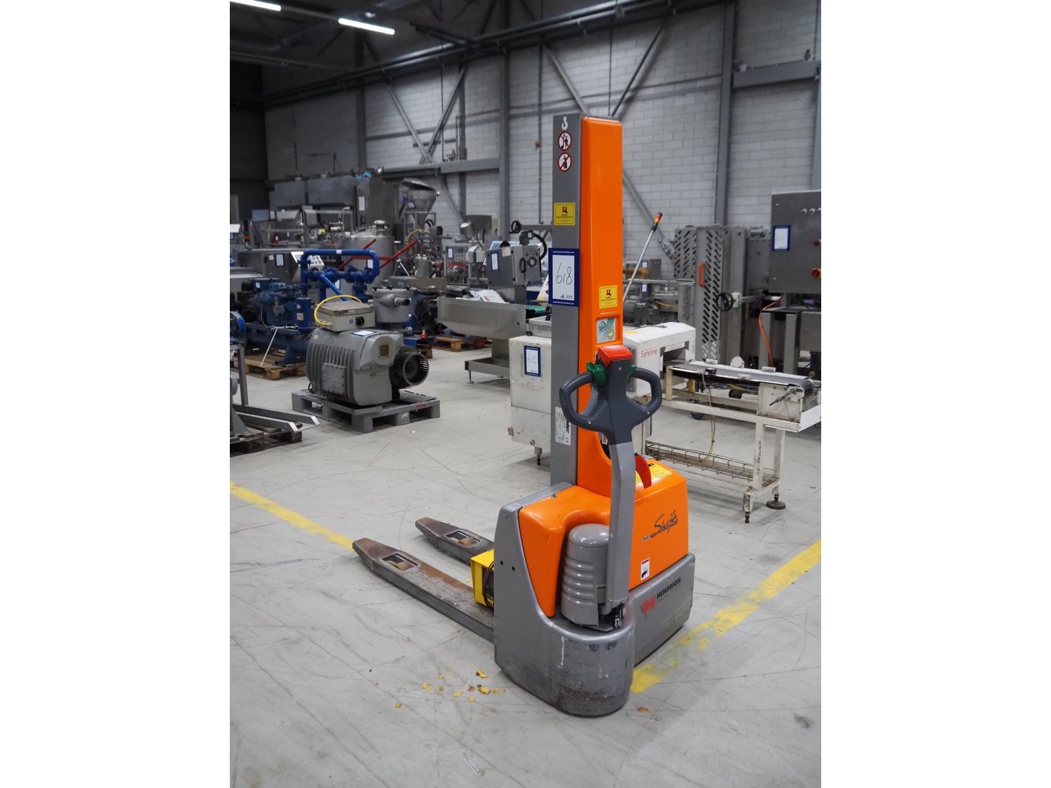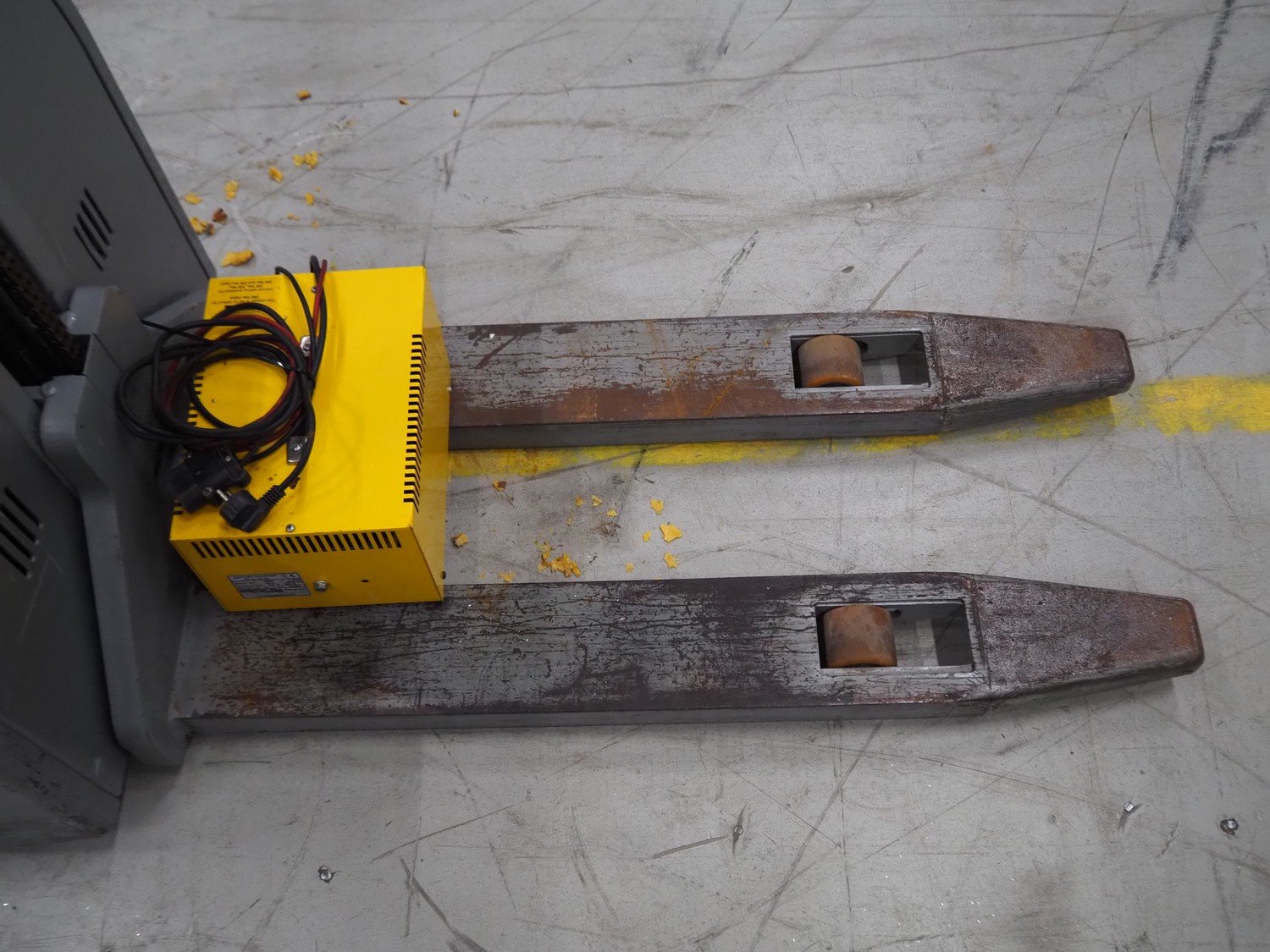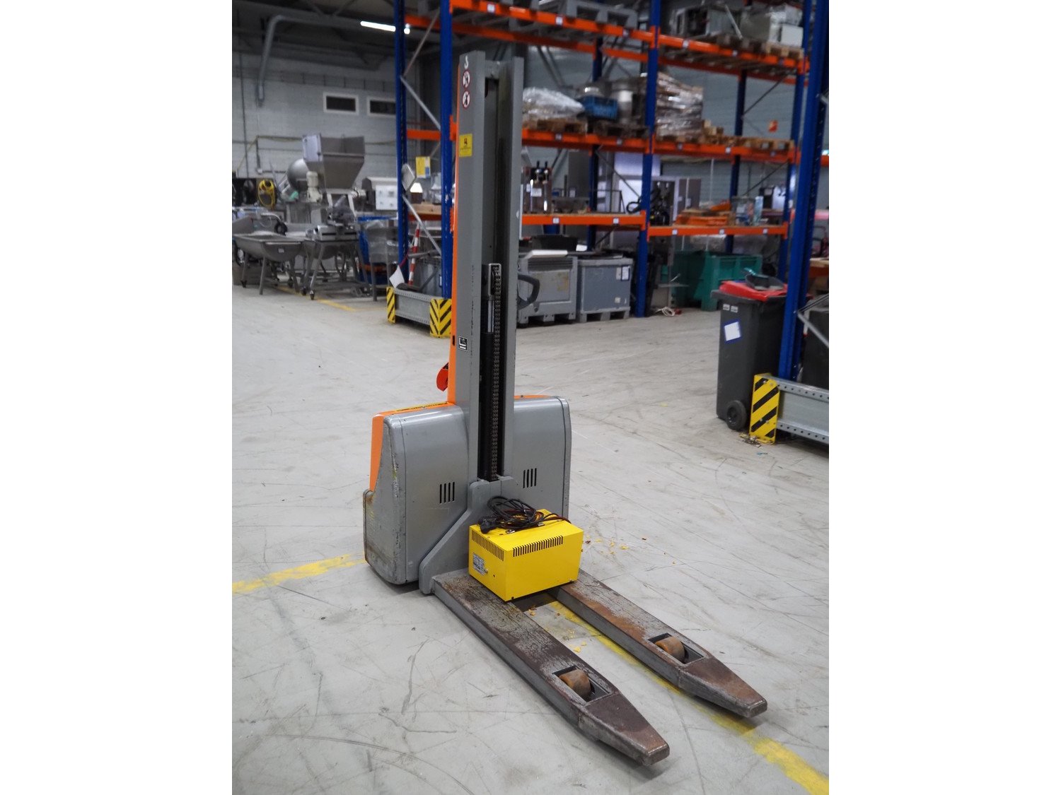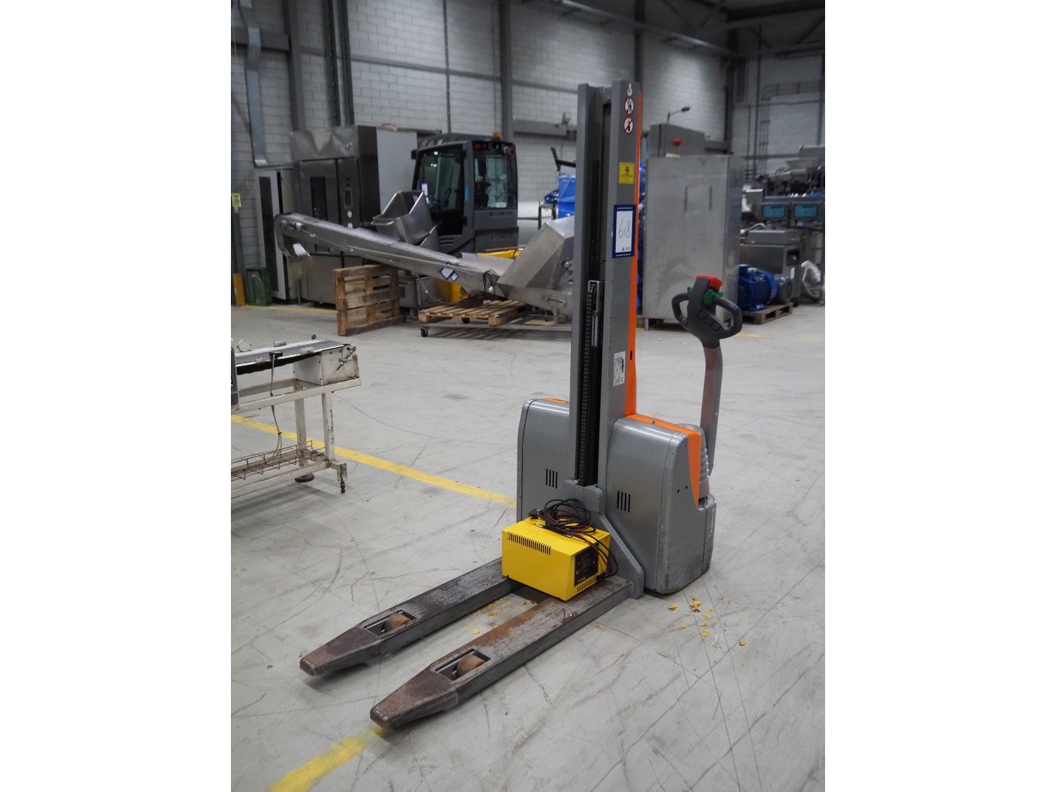 MIC S.A. electric pallet lifter, type: EMC 10G-117-156E, serial number: 97001430, year of construction: 2000, capacity: 1000 kg, fork length: 1170 mm, total dimensions: 1950 mm x 800 mm x 1850 mm. Including ENERGIC Plus battery charger. Kavel locatie: Looyenbeemd 11, 5652 BH Eindhoven, Nederland