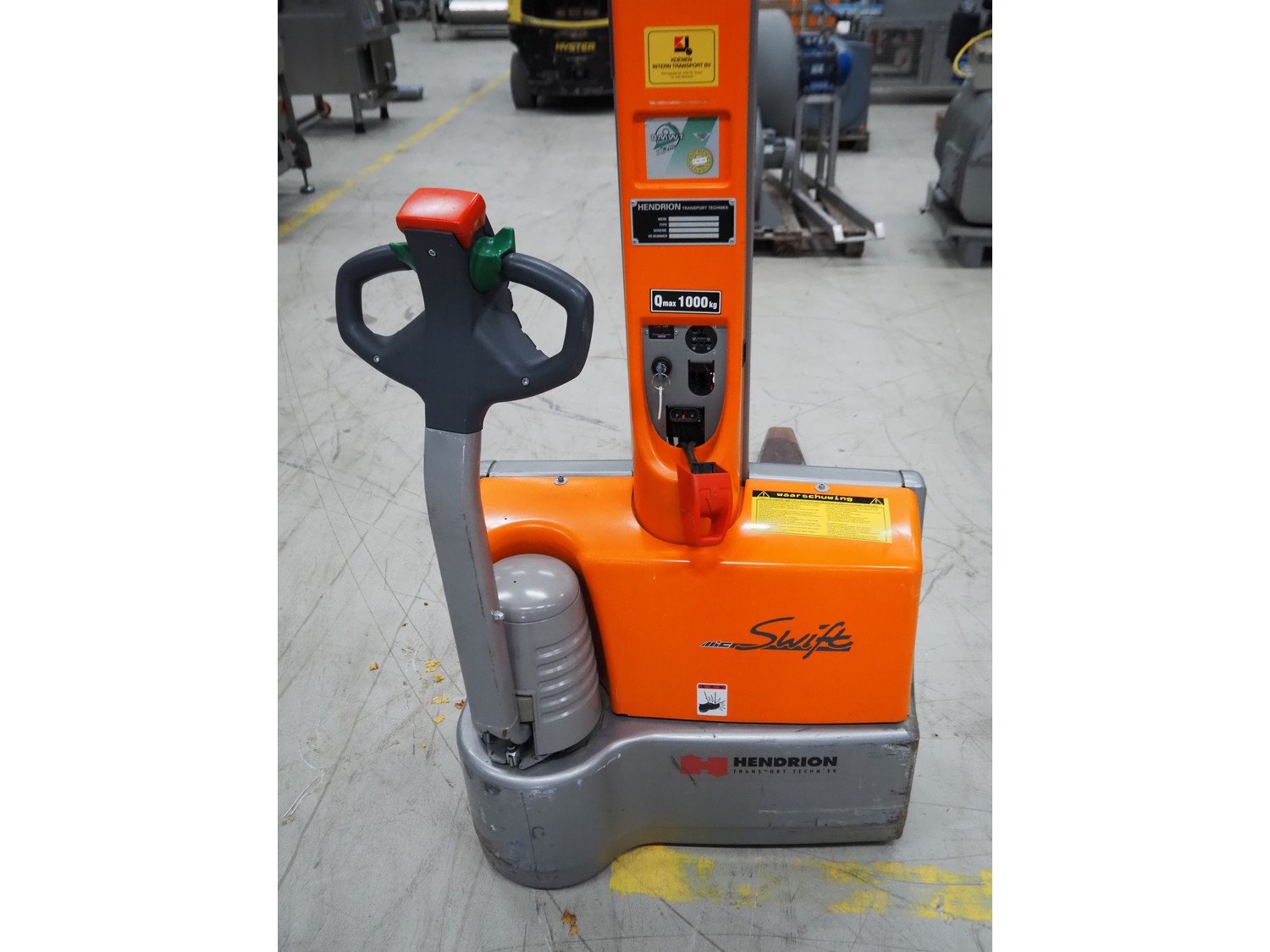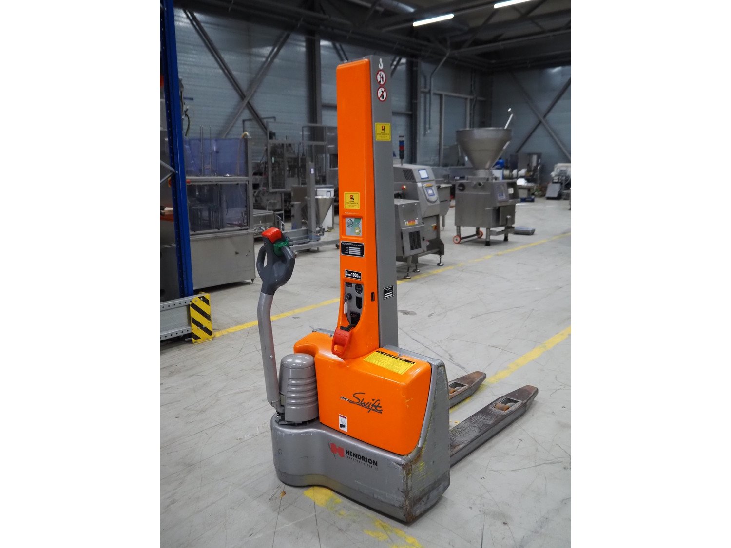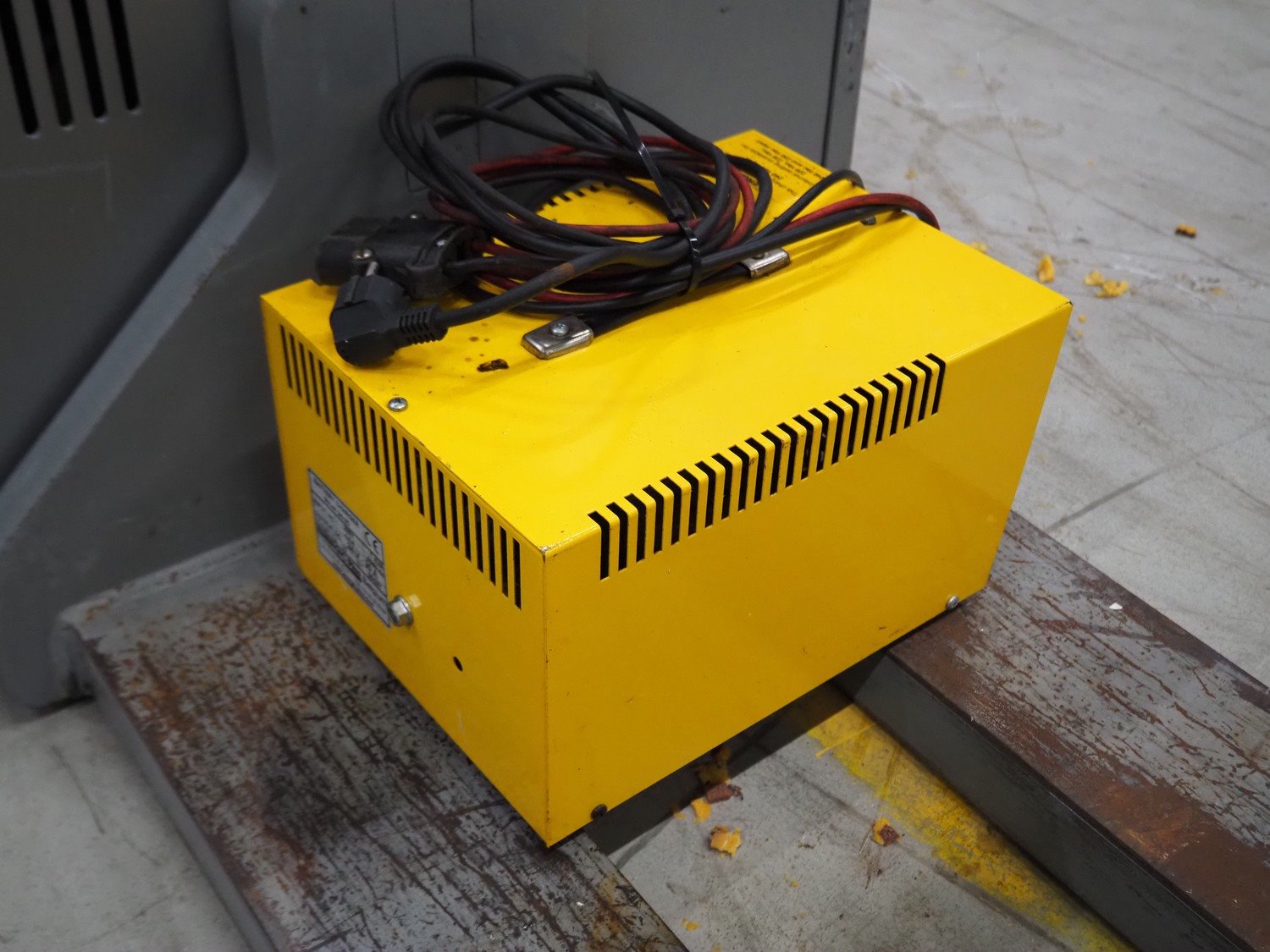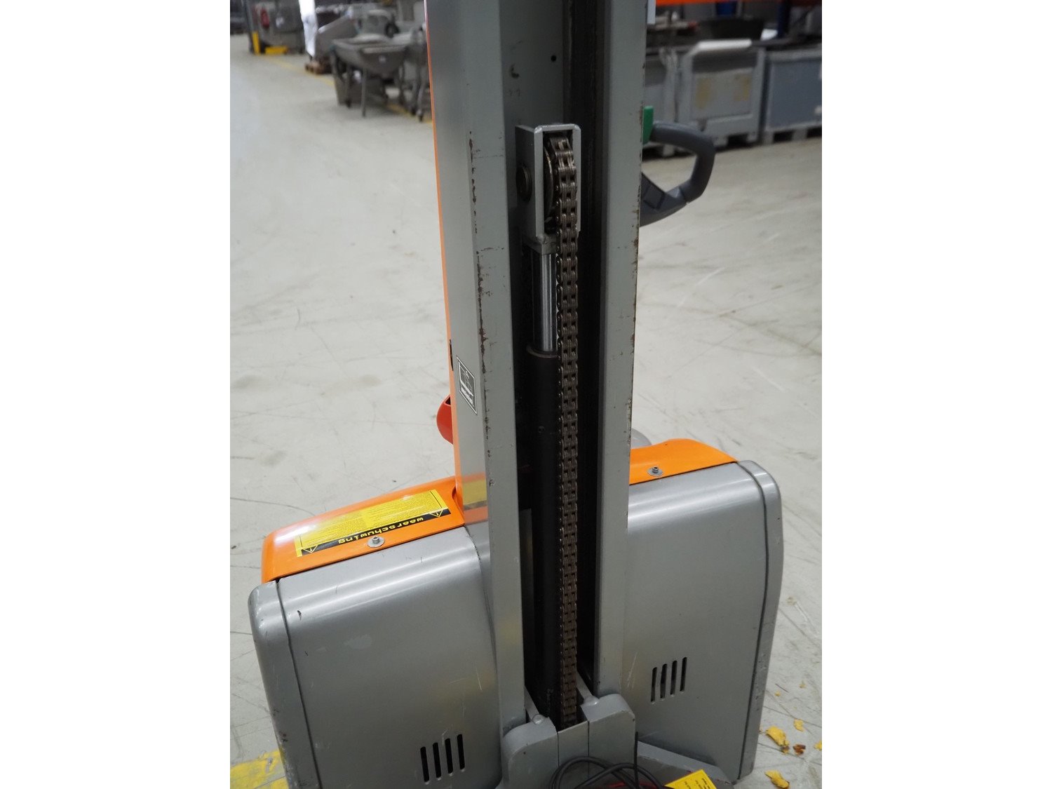 MIC S.A. electric pallet lifter, type: EMC 10G-117-156E, serial number: 97001430, year of construction: 2000, capacity: 1000 kg, fork length: 1170 mm, total dimensions: 1950 mm x 800 mm x 1850 mm. Including ENERGIC Plus battery charger. Kavel locatie: Looyenbeemd 11, 5652 BH Eindhoven, Nederland