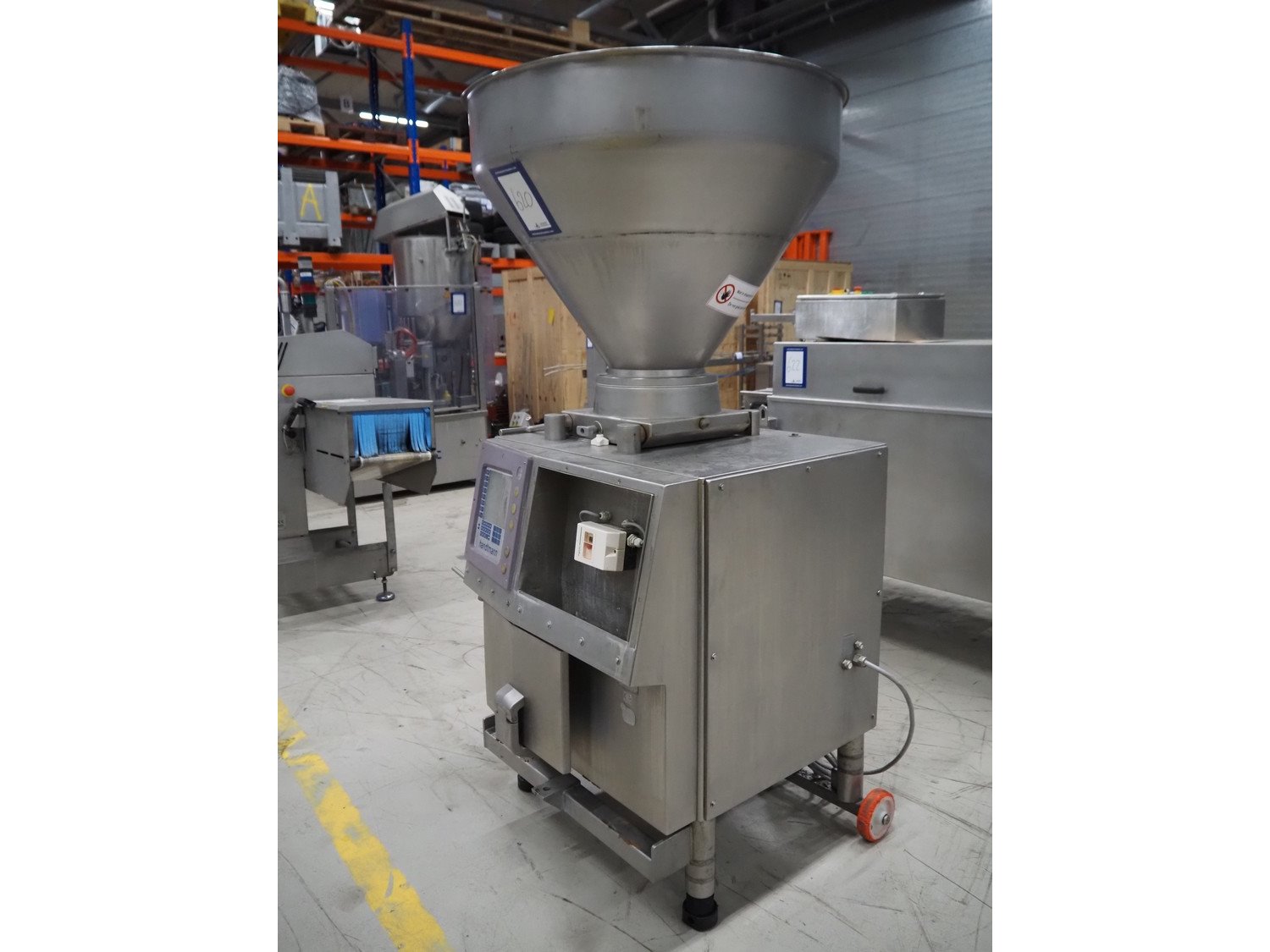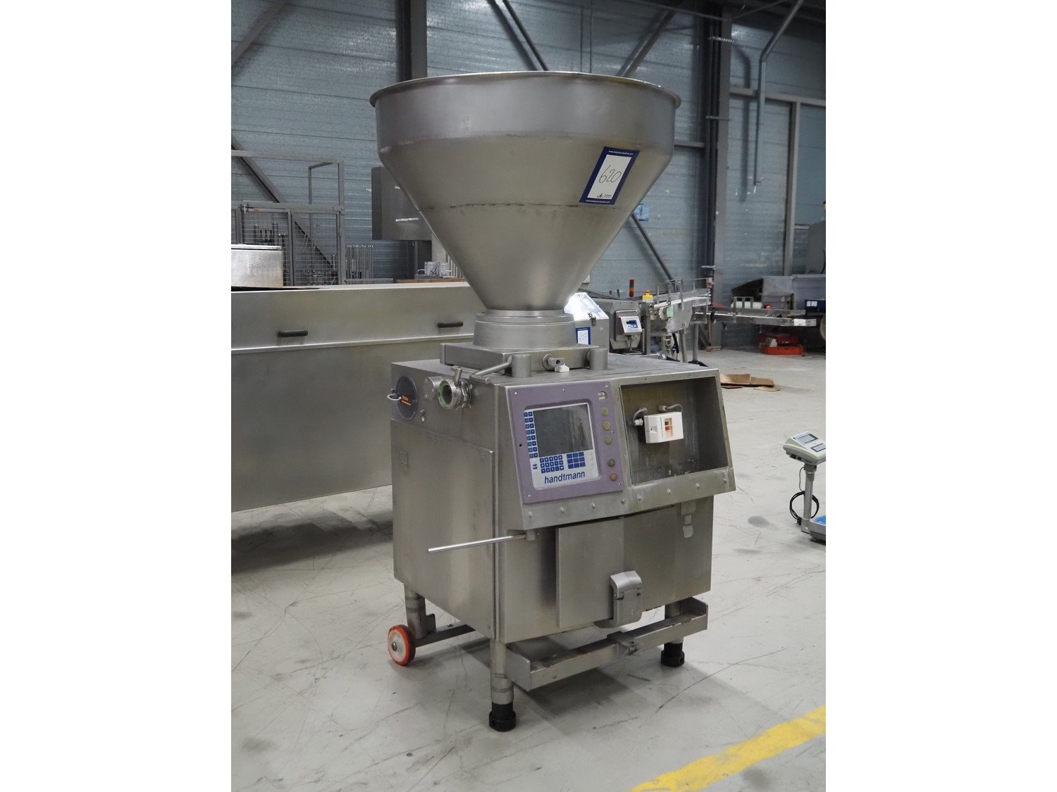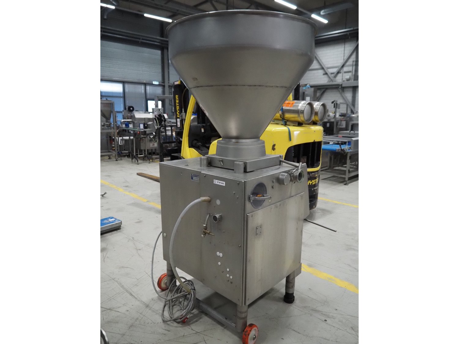 Handtmann mobile vacuum filling machine, type: VF300, number: 2804, year of construction: 1997, 400 V, 50 Hz, 21.8 A, 9 kW, dimensions: 1150 mm x 950 mm x 2050 mm. Incomplete. Kavel locatie: Looyenbeemd 11, 5652 BH Eindhoven, Nederland