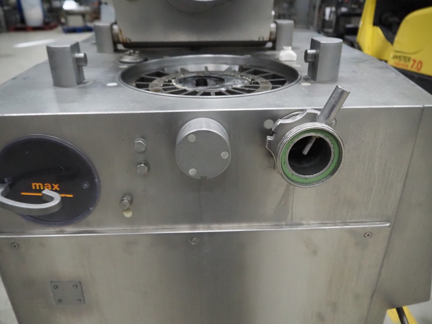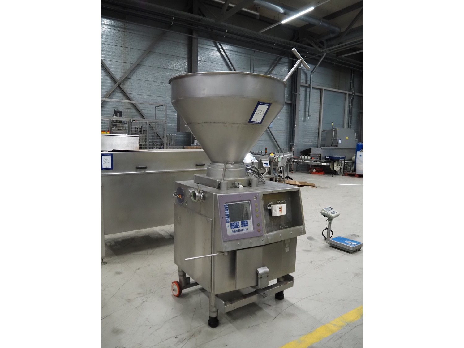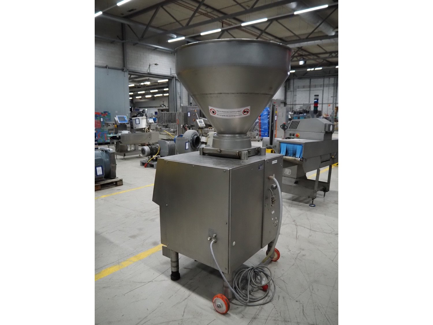 Handtmann mobile vacuum filling machine, type: VF300, number: 2804, year of construction: 1997, 400 V, 50 Hz, 21.8 A, 9 kW, dimensions: 1150 mm x 950 mm x 2050 mm. Incomplete. Kavel locatie: Looyenbeemd 11, 5652 BH Eindhoven, Nederland