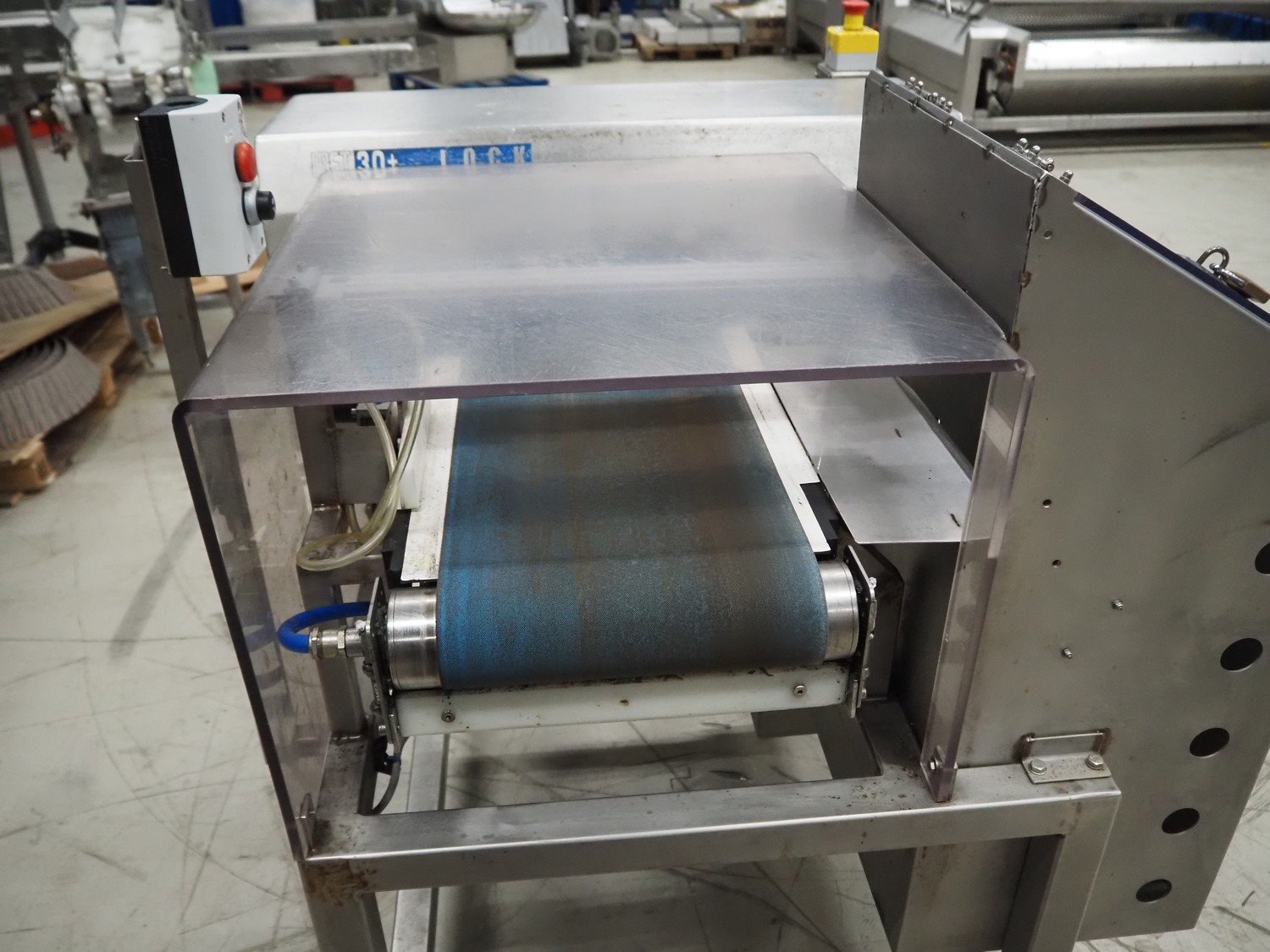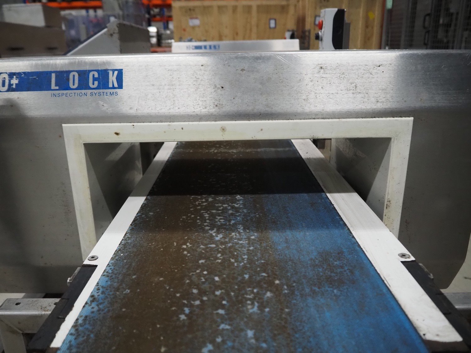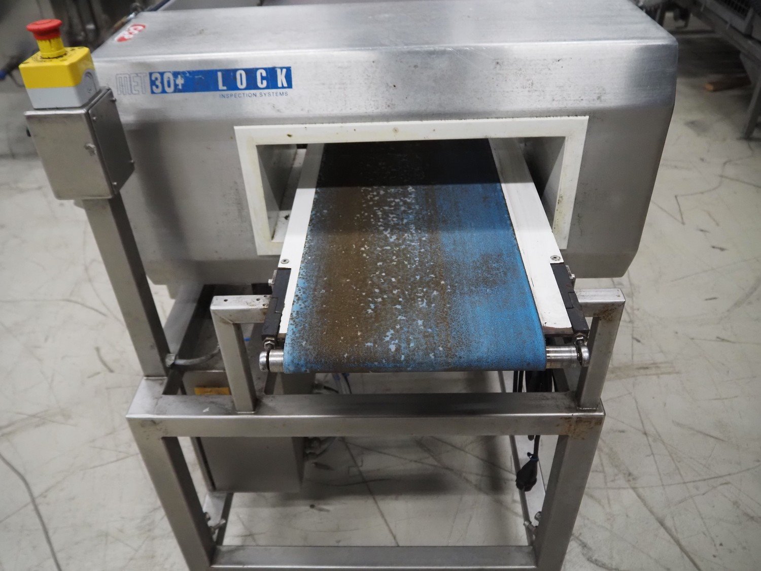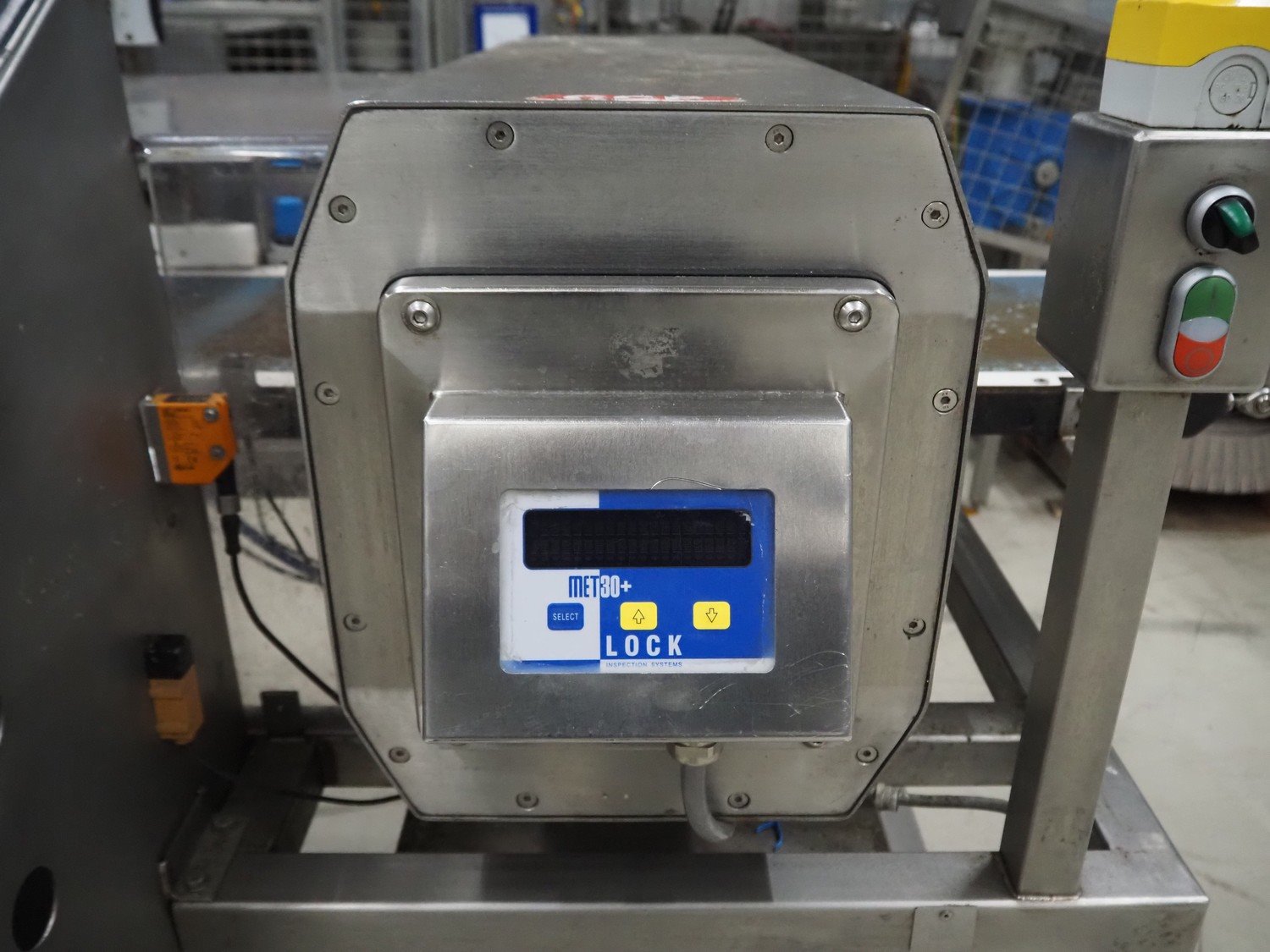 Lock Inspection metal detector with rejector, model: MET30+, plastic belt, belt width: 300 mm, clearance: 450 mm x 120 mm, total dimensions: 1200 mm x 1250 mm x 1350 mm. Kavel locatie: Looyenbeemd 11, 5652 BH Eindhoven, Nederland