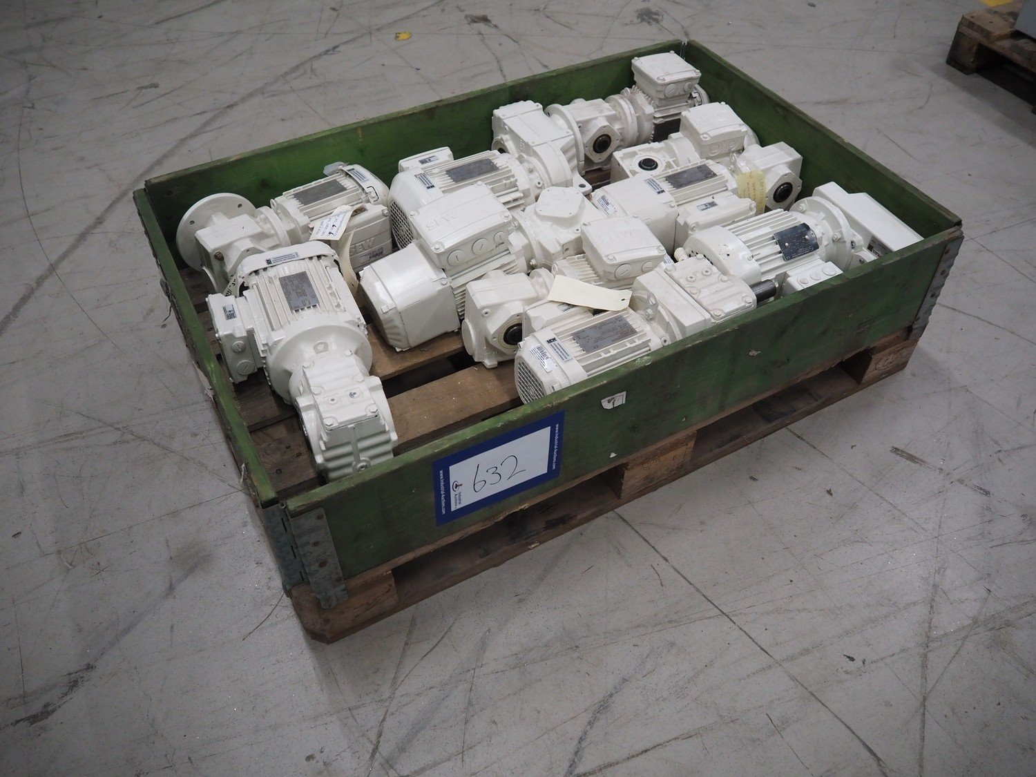 10 pcs. SEW-Eurodrive motor, model: K 67 / SA 47 / SA 57 / R 17 / KA 19 / SA 37, total dimensions: 1200 mm x 800 mm x 400 mm. Kavel locatie: Looyenbeemd 11, 5652 BH Eindhoven, Nederland