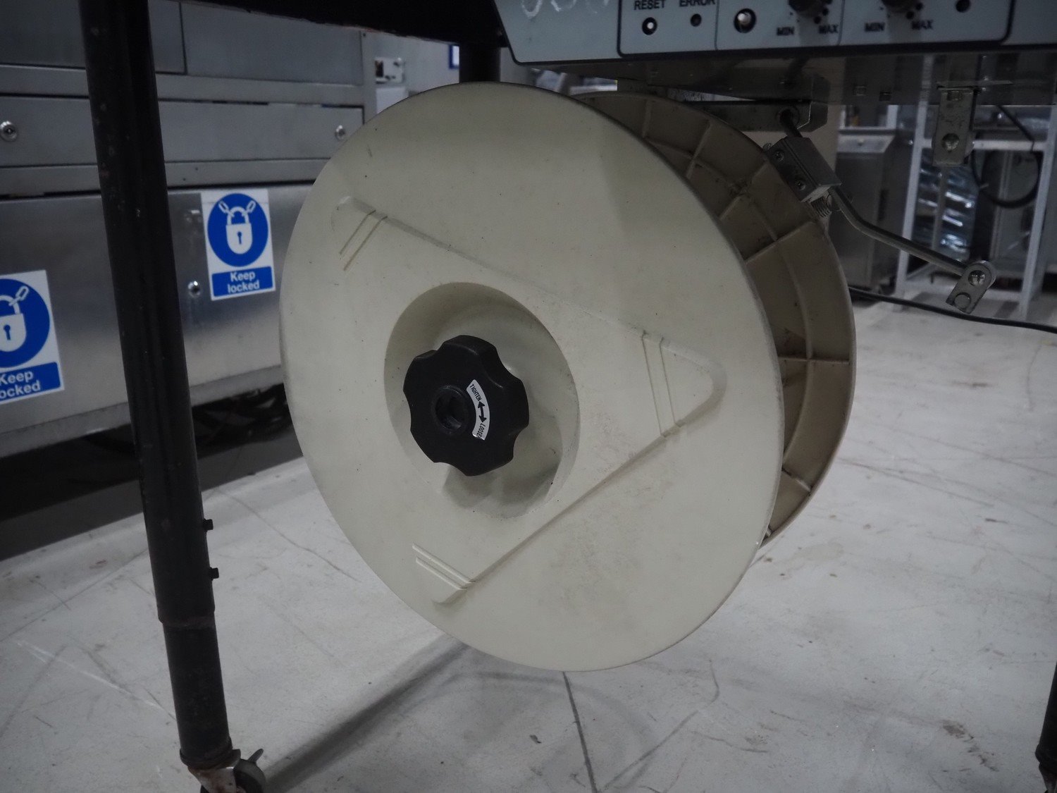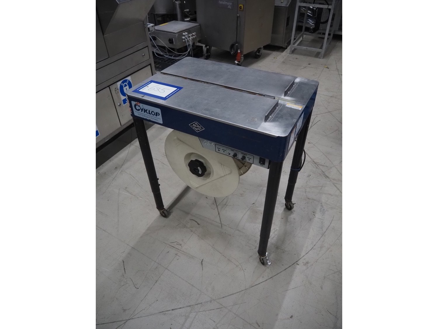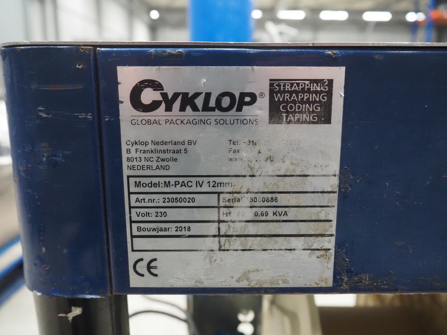 Cyklop mobile semi automatic strapping machine, model: M-PAC IV 12 mm, machine number: 18000886, year of construction: 2018, 230 V, 1 Ph, 50 Hz, 0.69 kVa, dimensions: 780 mm x 540 mm x 900 mm. Kavel locatie: Looyenbeemd 11, 5652 BH Eindhoven, Nederland