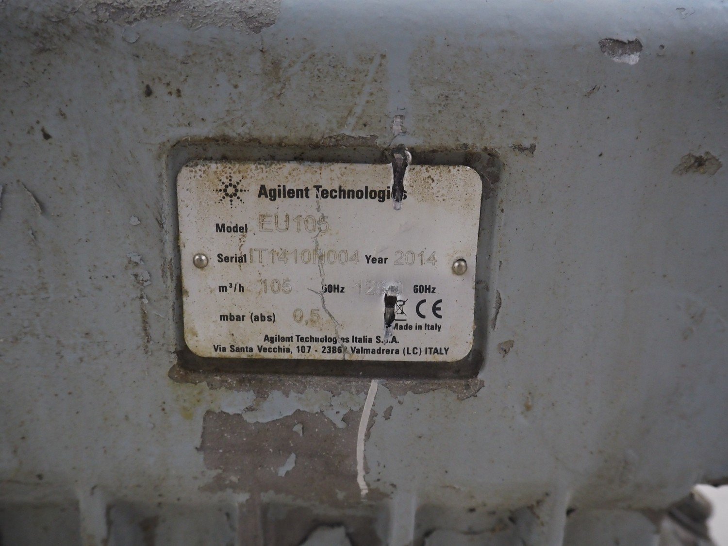 Agilent Technologies vacuum pump, model: EU 105, serial number: IT1410N004, year of construction: 2014, capacity: 105 m³ per hour, dimensions: 740 mm x 440 mm x 500 mm. Kavel locatie: Looyenbeemd 11, 5652 BH Eindhoven, Nederland