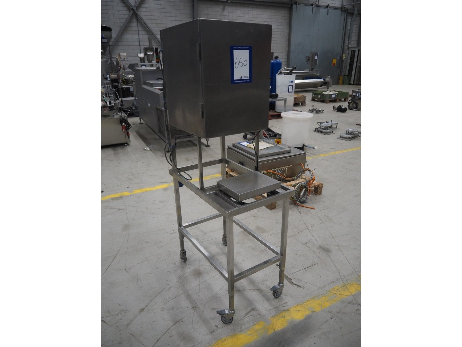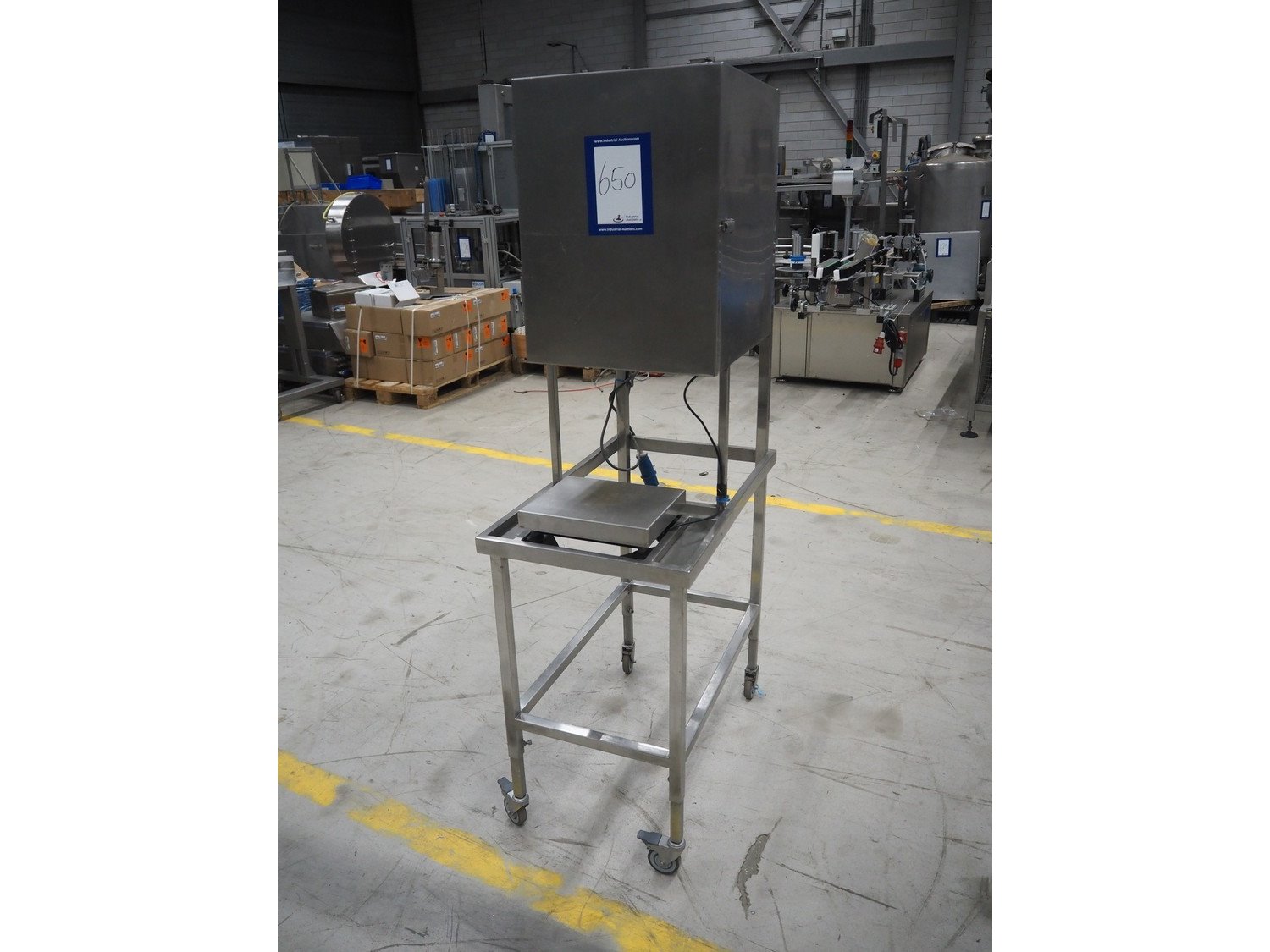 Kern weighing scale on s/s frame, type: SXS 6K-3M, serial number: WX18060105, 220/240 V, 1 Ph, 50 Hz, maximum capacity: 3/6 kg, minimum capacity: 0.02/0.04 kg, e= 0.001/0.002 kg, dimensions scale: 240 mm x 300 mm, total dimensions: 800 mm x 500 mm x 1750 mm. Kavel locatie: Looyenbeemd 11, 5652 BH Eindhoven, Nederland