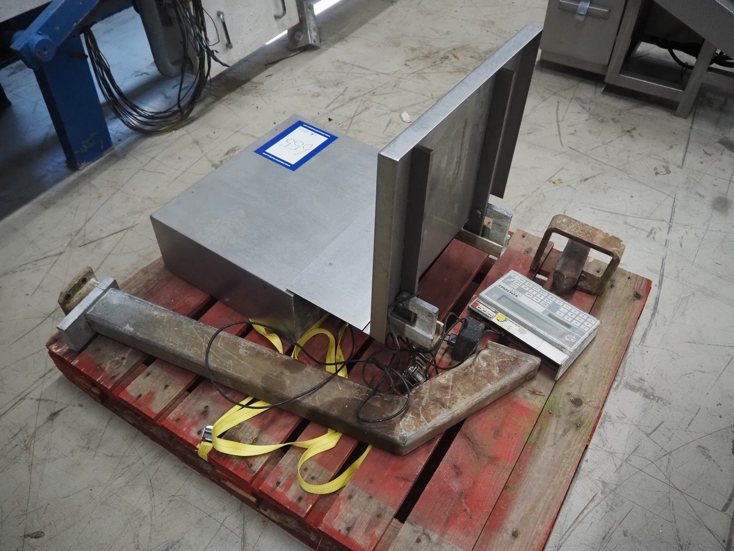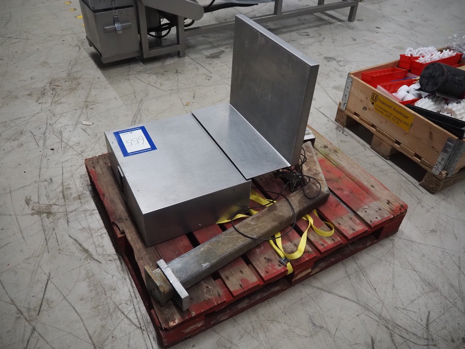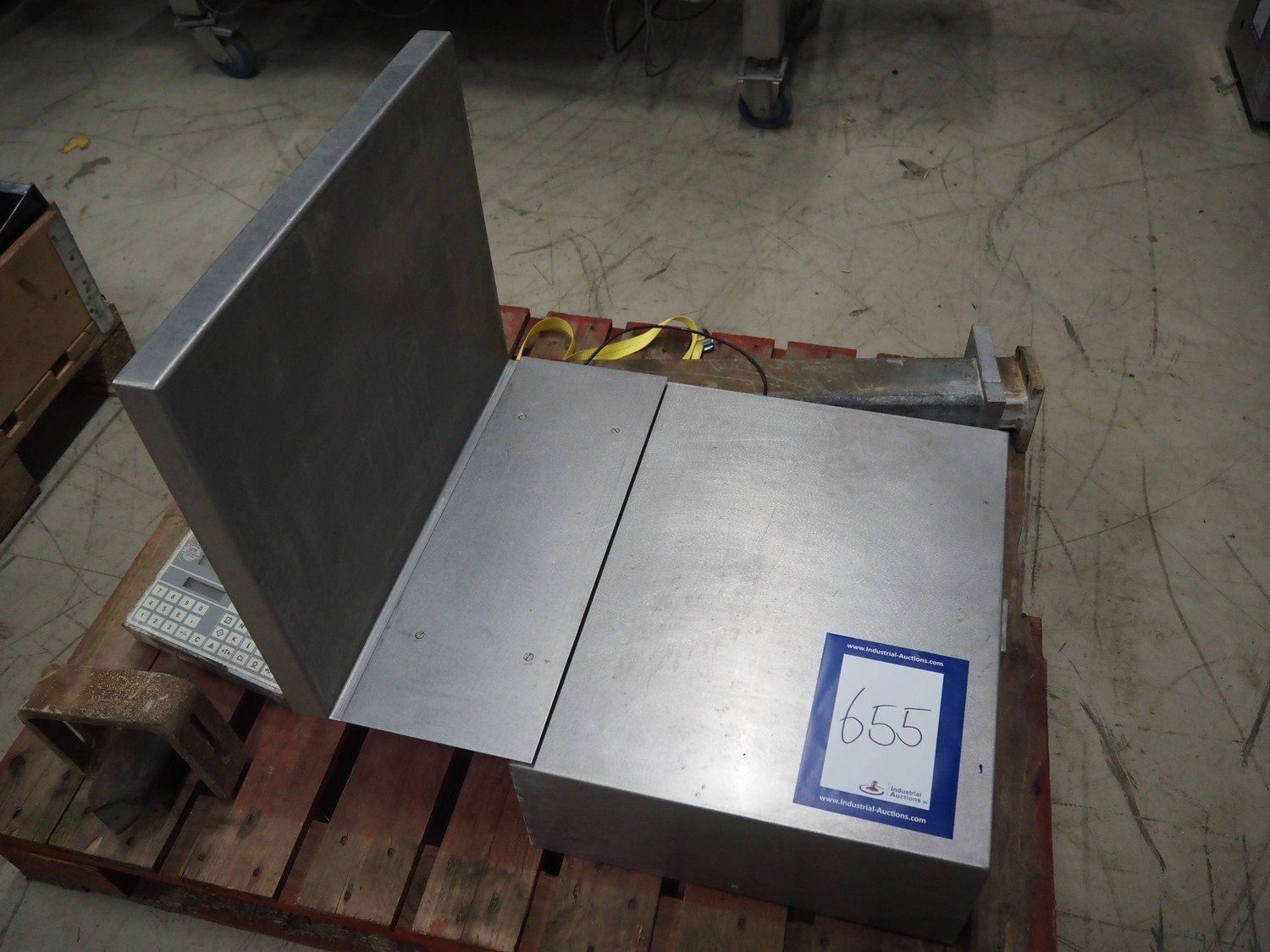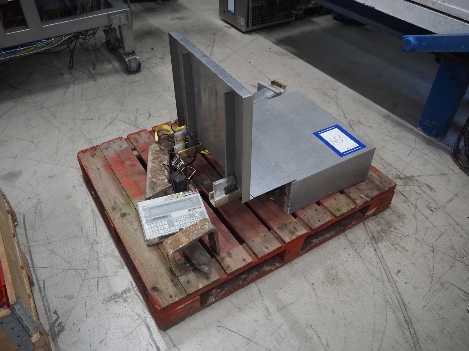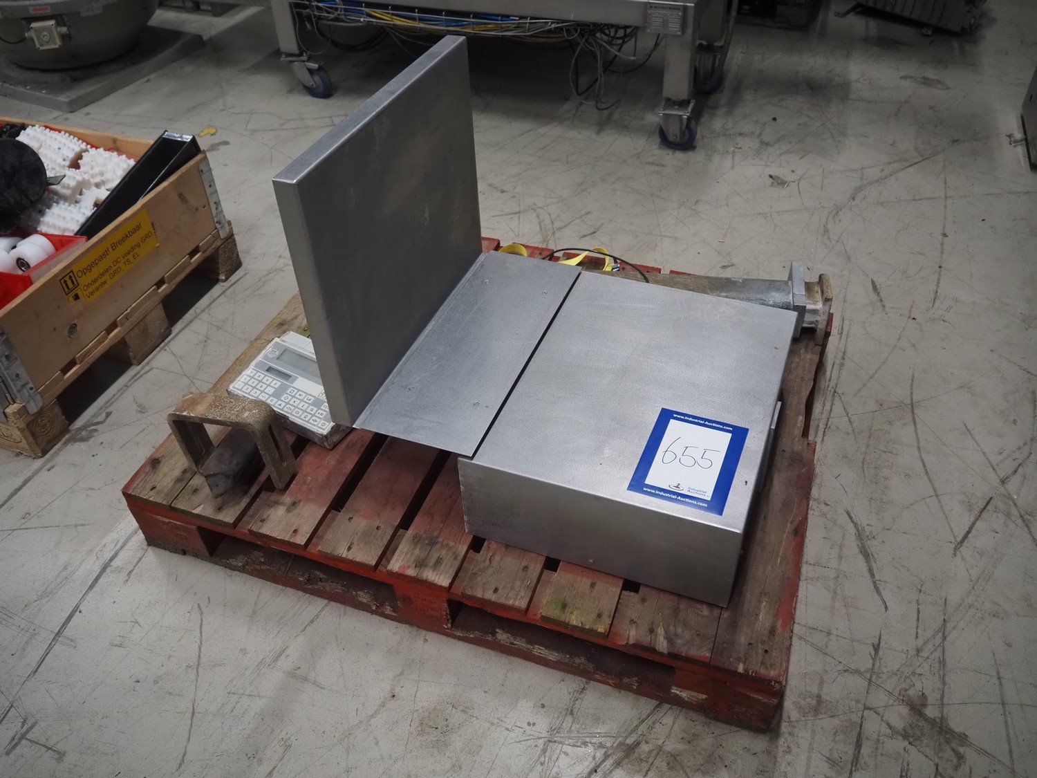 Weighing scale with Soehnle indicator, serial number: 50153, maximum weight: 150 kg, minimum weight: 2 kg, e = 100 gram, dimensions: 560 mm x 600 mm x 750 mm. Kavel locatie: Looyenbeemd 11, 5652 BH Eindhoven, Nederland