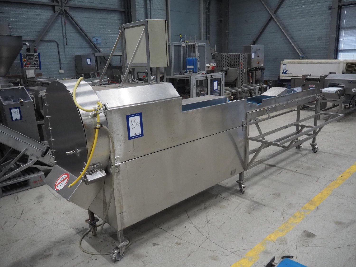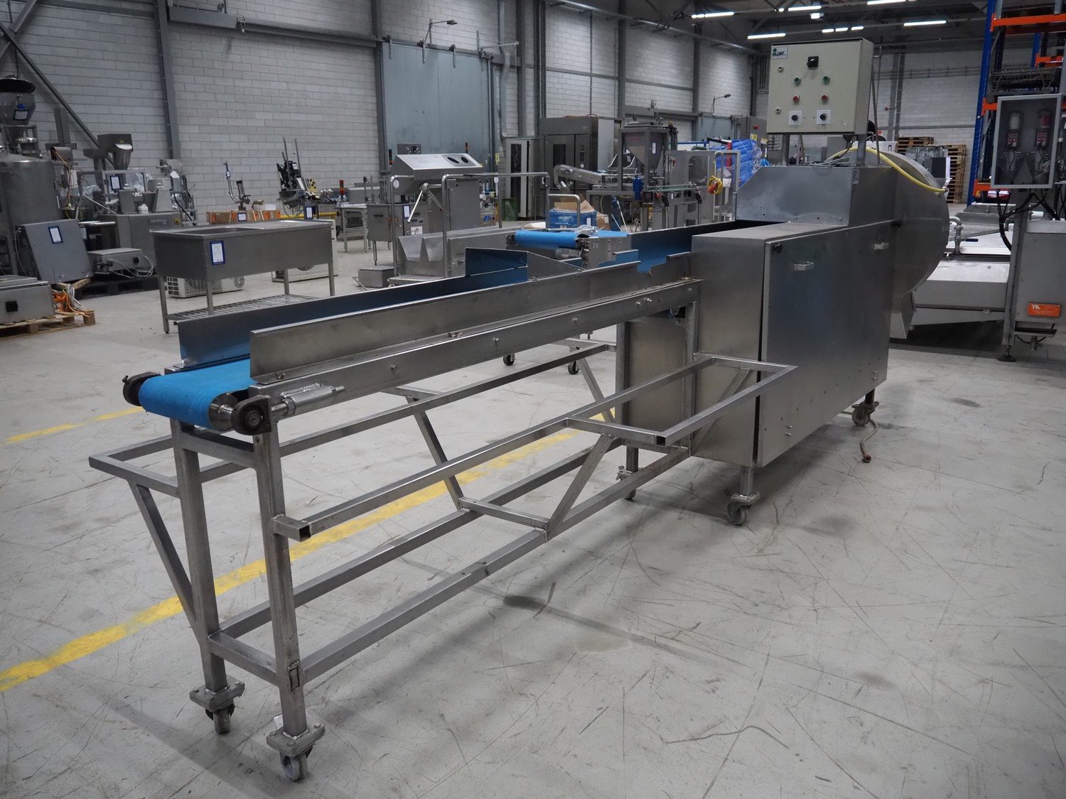 Eillert mobile vegetable slicer, type: G3300, serial number: 382-9037, 220 V, 4.2 A, plastic belt, belt width: 250 mm, total dimensions: 4170 mm x 1140 mm x 1900 mm. Kavel locatie: Looyenbeemd 11, 5652 BH Eindhoven, Nederland