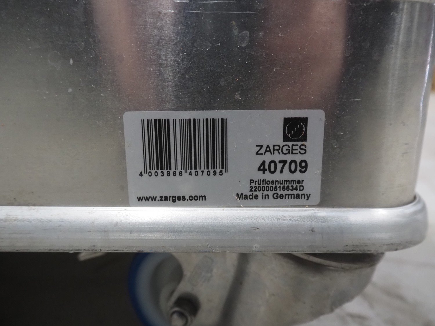 Zarges mobile aluminium box, dimensions: 800 mm x 1200 mm x 620 mm. Kavel locatie: Looyenbeemd 11, 5652 BH Eindhoven, Nederland