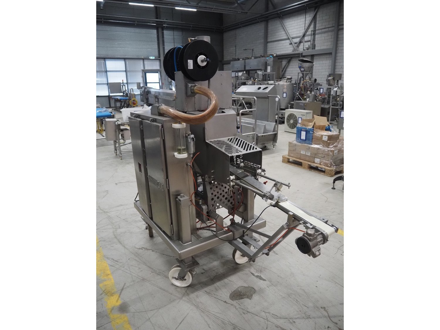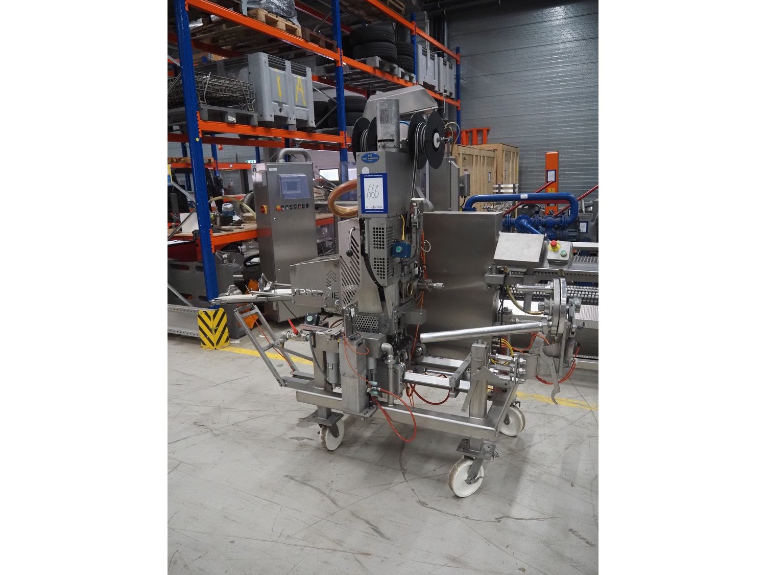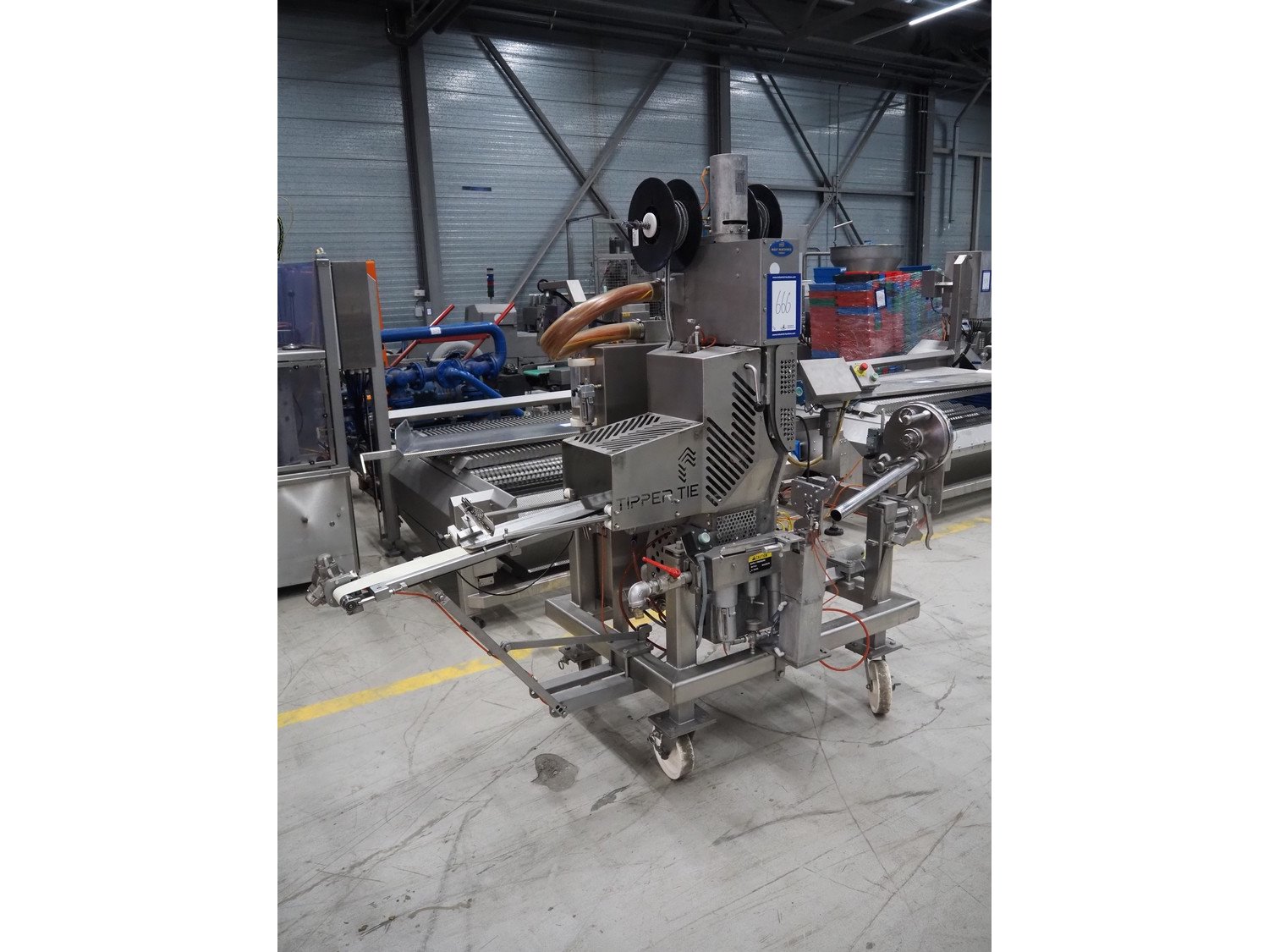 Tipper Tie mobile automatic double clipper, model: SAM3E, serial number: T0007097, year of construction: 04/10/1995, dimensions: 2050 mm x 1050 mm x 2050 mm. Including crate with parts. Kavel locatie: Looyenbeemd 11, 5652 BH Eindhoven, Nederland