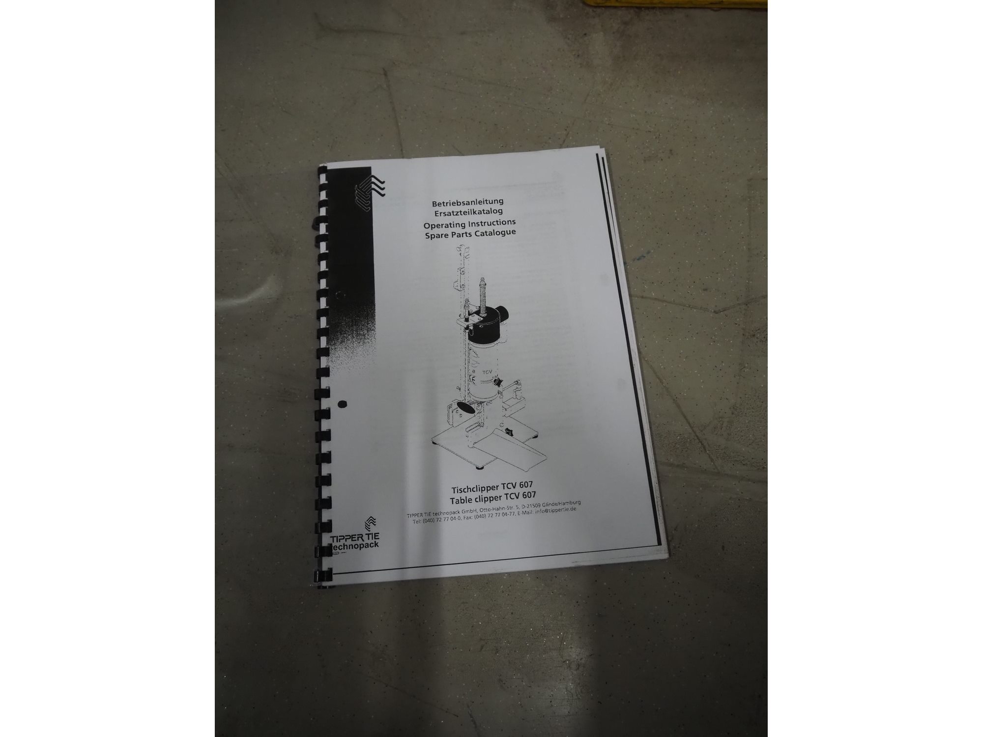 TipperTie Technopack clipper, type: TCV 607 VA, number: 2681.090.38, air pressure: 5 bar, dimensions: 450 mm x 370 mm x 920 mm. Including pallet with large amount of boxes with clips, type: 603 T, 1400 clips per box, dimensions pallet: 1200 mm x 800 mm x 710 mm. Kavel locatie: Looyenbeemd 11, 5652 BH Eindhoven, Nederland