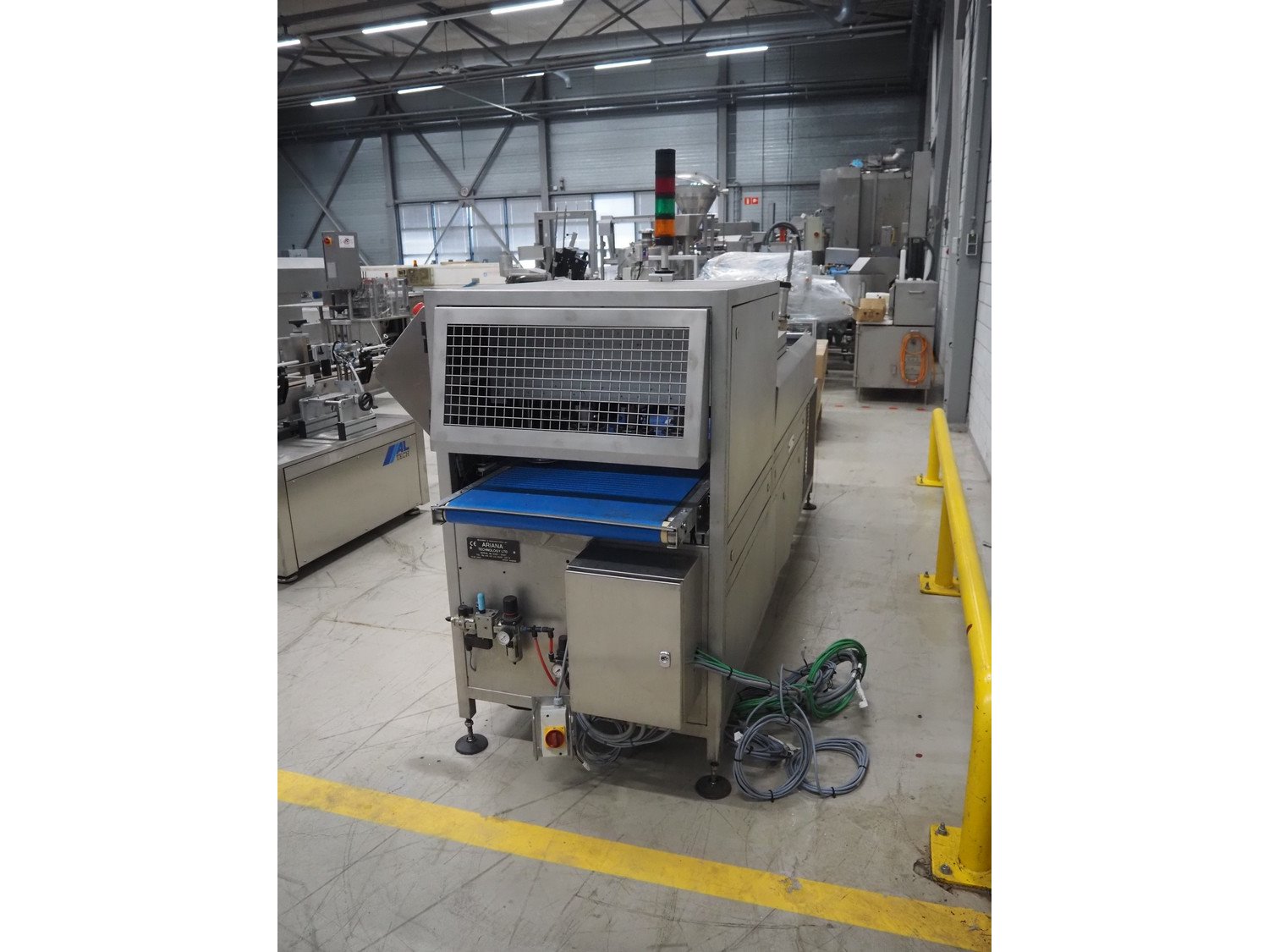 Ariana Technology LTD packaging machine, serial number: 3481-3481, year of construction: 2004, plastic belts, belt width: (2x) 250 mm, (1x) 570 mm, 16 heads, head diameter: Ø 120 mm, total dimensions: 3400 mm x 1040 mm x 1800 mm. Kavel locatie: Looyenbeemd 11, 5652 BH Eindhoven, Nederland