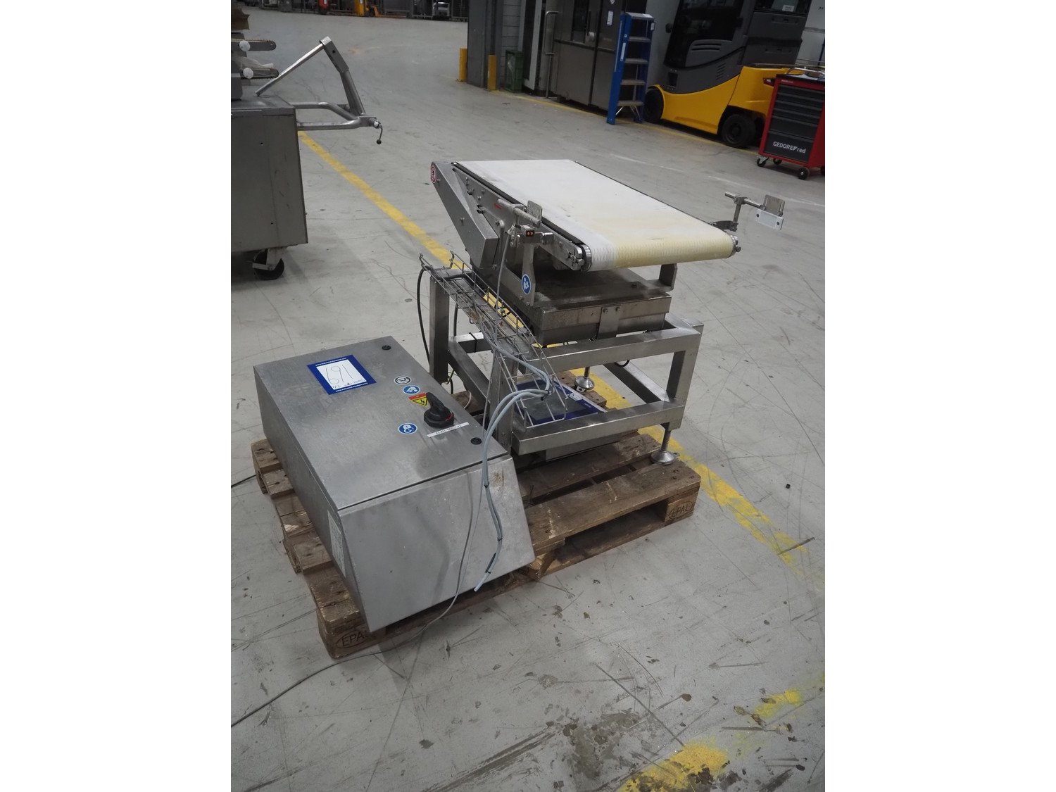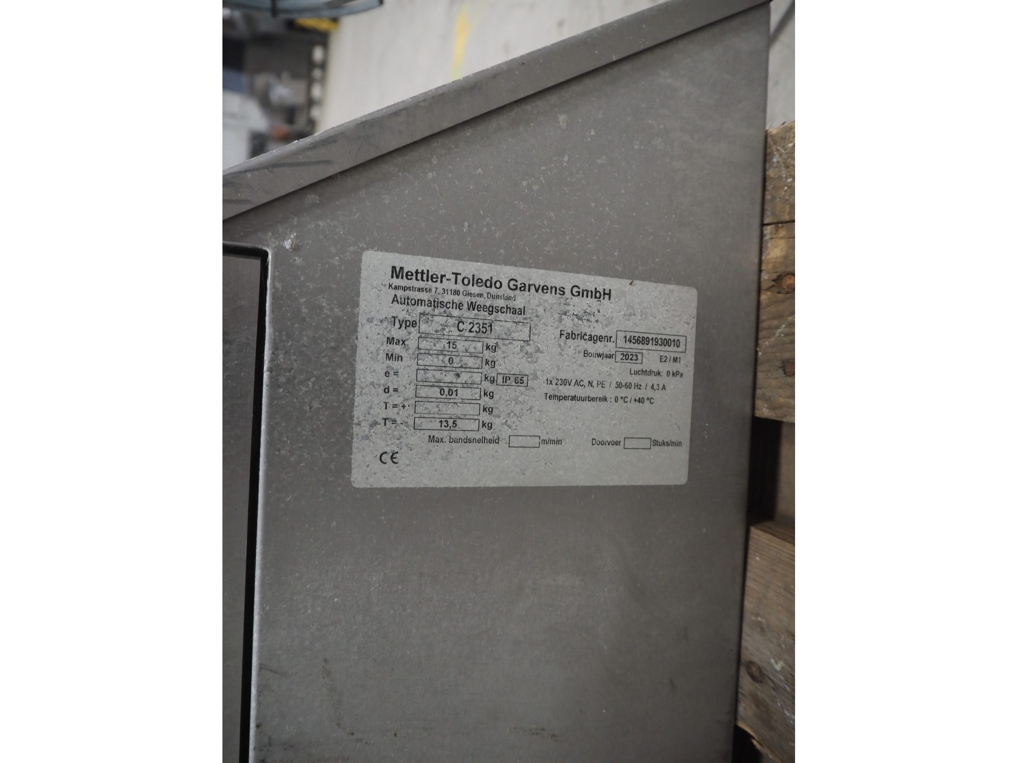 Mettler-Toledo Garvens GmbH checkweigher with scanner, type: C 2351, fabrication number: 1456891930010, year of construction: 2023, 230 V, 1 Ph, 50-60 Hz, 4.3 A, temperature range: 0-40 °C, weighing range: 0-15 kg, plastic belt, belt width: 450 mm, total dimensions: 850 mm x 700 mm x 1700 mm. Screen broken, already dismantled. Kavel locatie: Looyenbeemd 11, 5652 BH Eindhoven, Nederland
