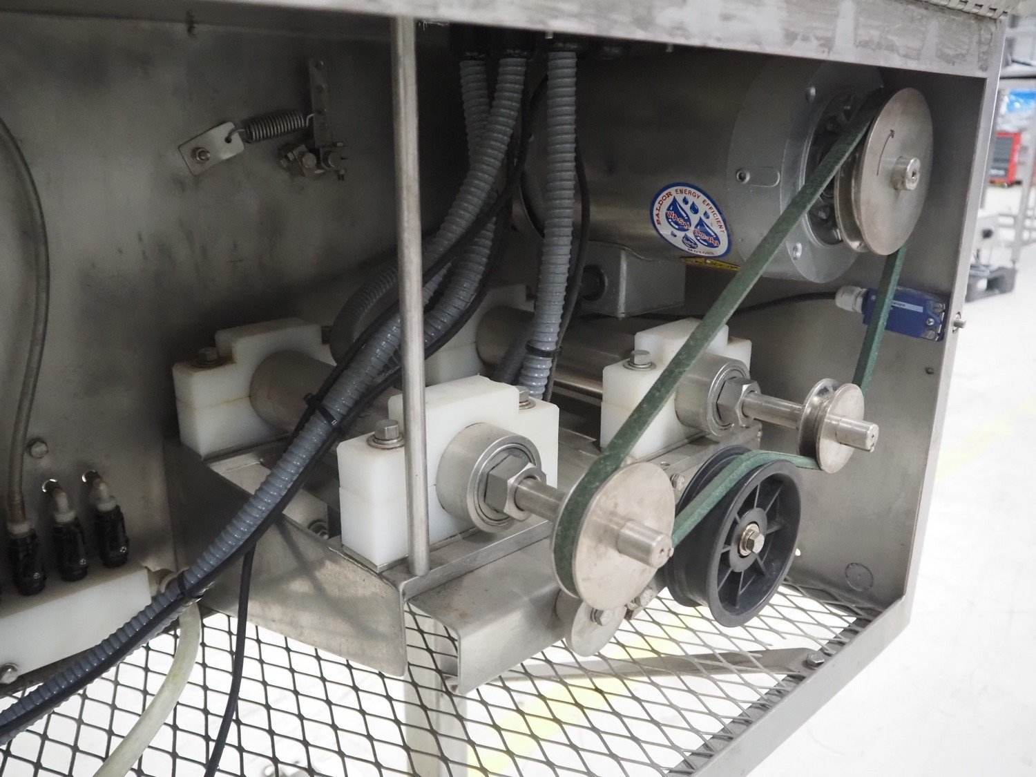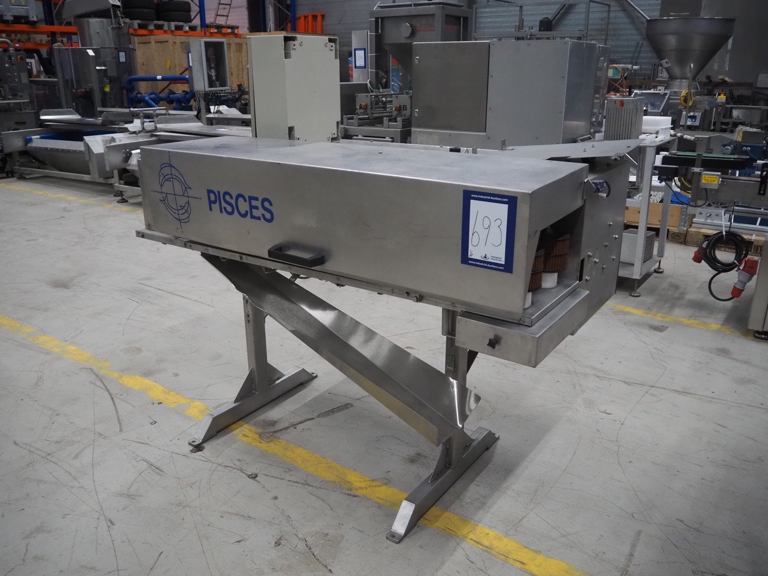 Pisces fish filleting machine, model: FR 200, working width: 45 mm, total dimensions: 1750 mm x 950 mm x 1650 mm. Kavel locatie: Looyenbeemd 11, 5652 BH Eindhoven, Nederland
