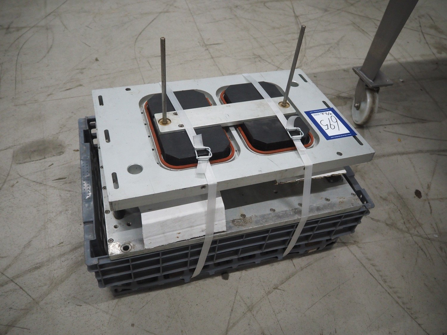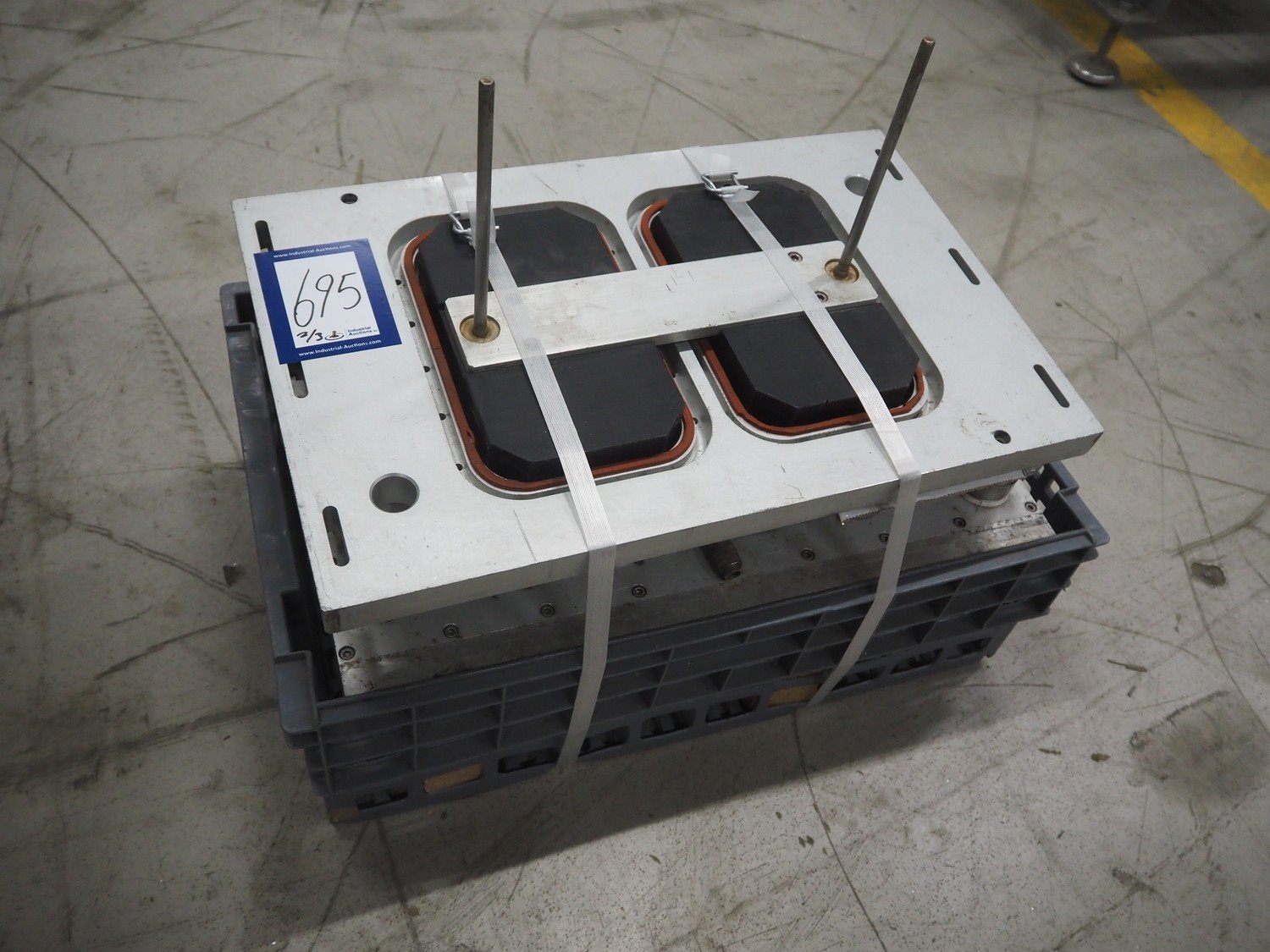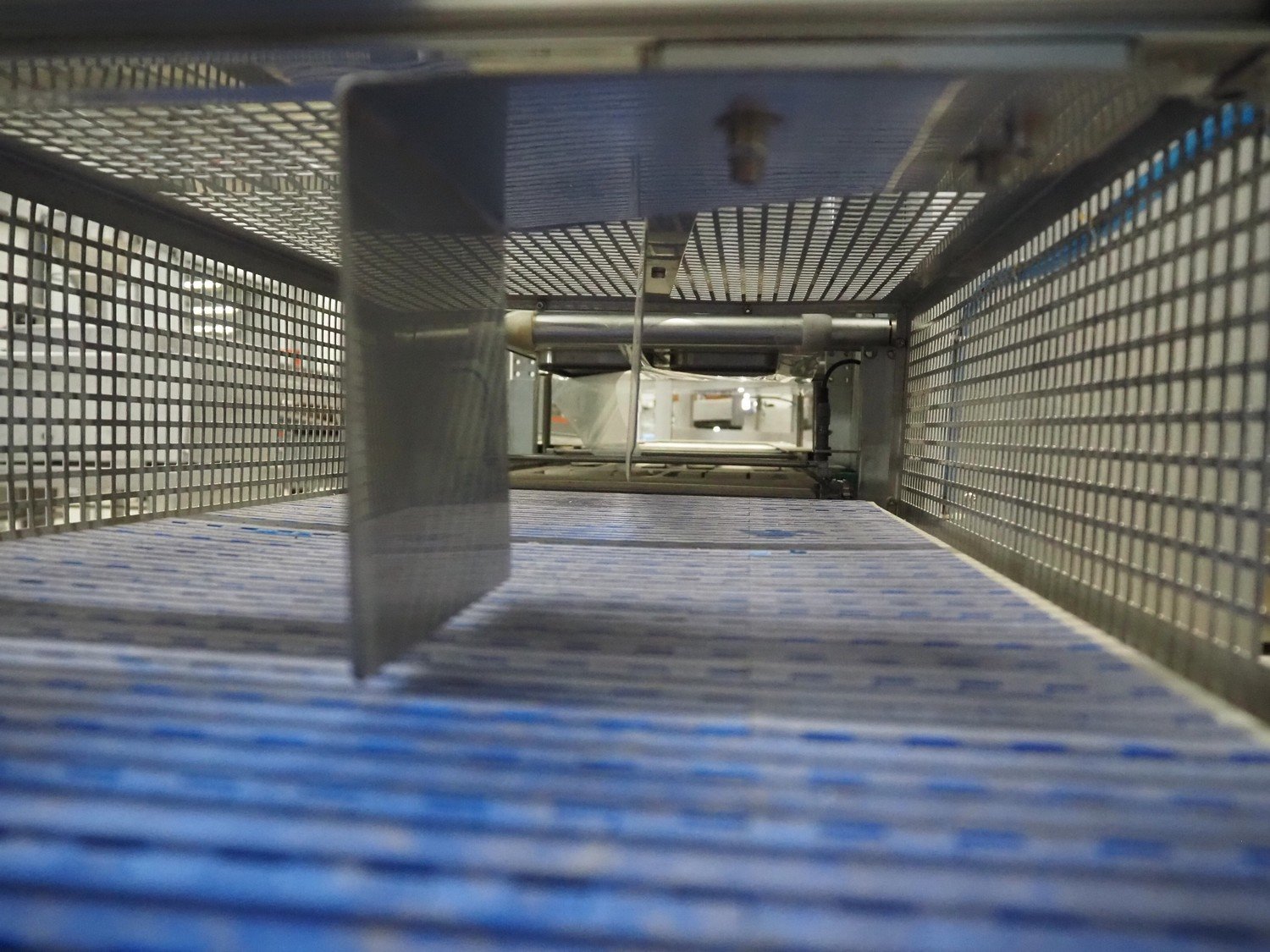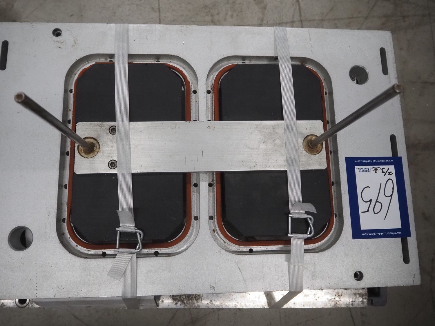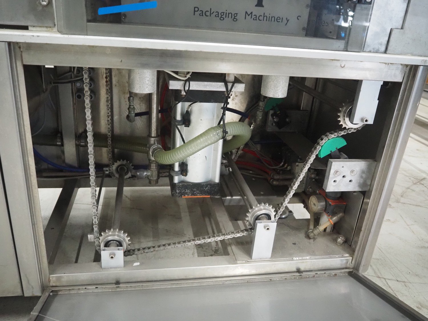 Reepack traysealer, model: Reeflex, serial number: 0402025, year of construction: 2002, 400 V, 3 Ph, 50 Hz, 21 A, s/s chain and pin conveyor, belt width: 360 mm, distance between dividers: 440 mm, divider height: 20 mm, 2 lanes, lane width: 140 mm, film width: 400 mm, dimensions dyes: (2x) 220 mm x 140 mm, plastic outfeed belt, belt width: 420 mm, total dimensions: 3550 mm x 900 mm x 1750 mm. With additional dye, dimensions dye: (2x) 220 mm x 140 mm, and Busch vacuum pump, type: RA 0100 E 503, number: 03018852, capacity: 100 m³ per hour. Kavel locatie: Looyenbeemd 11, 5652 BH Eindhoven, Nederland