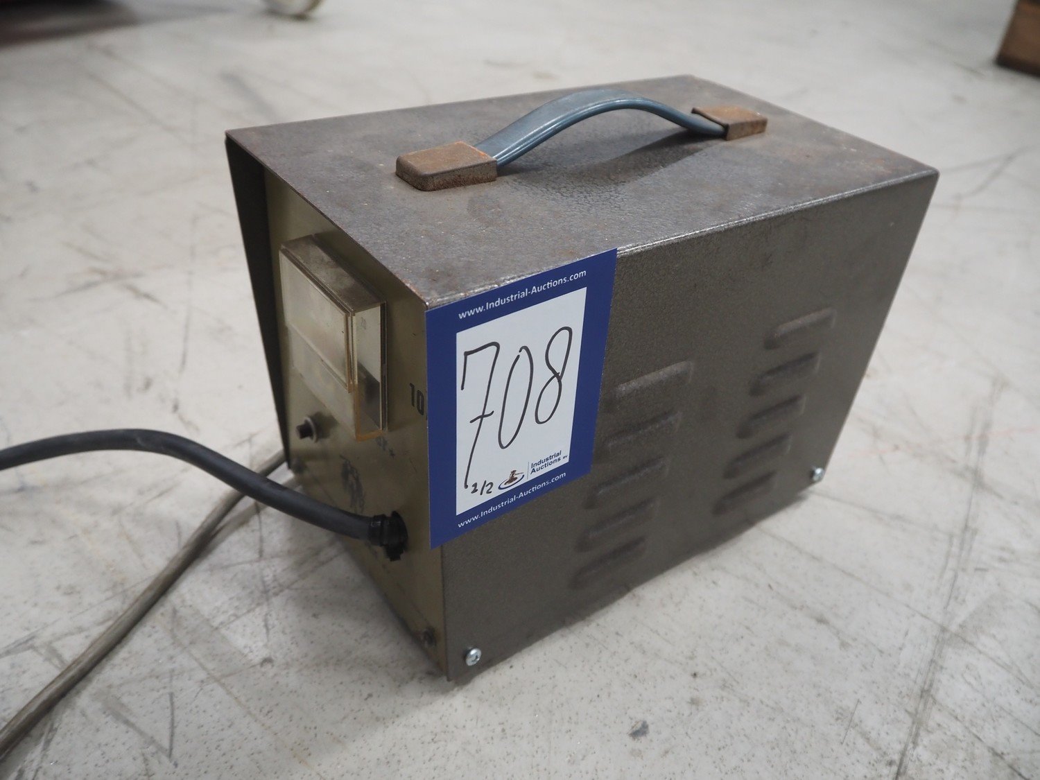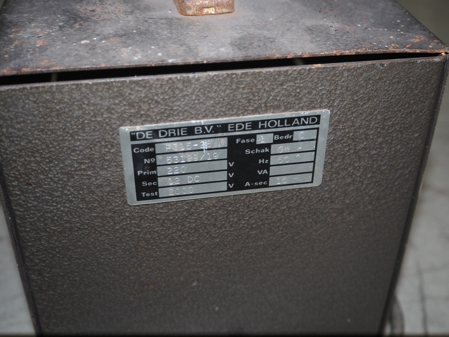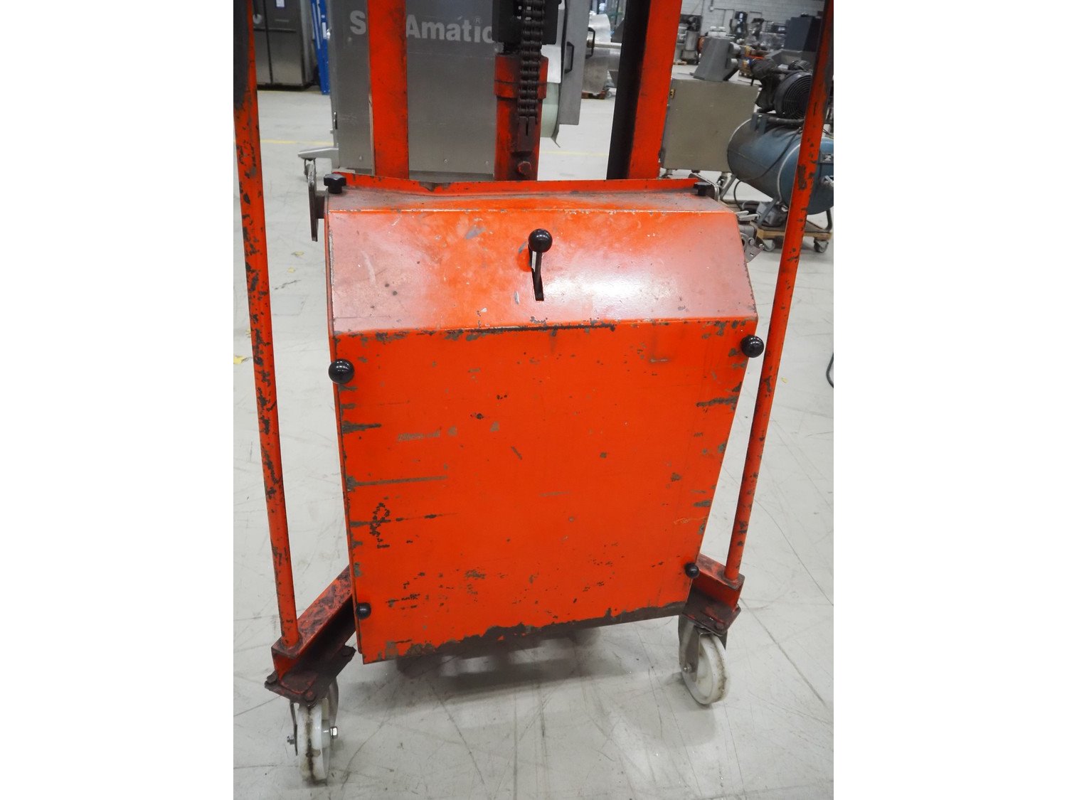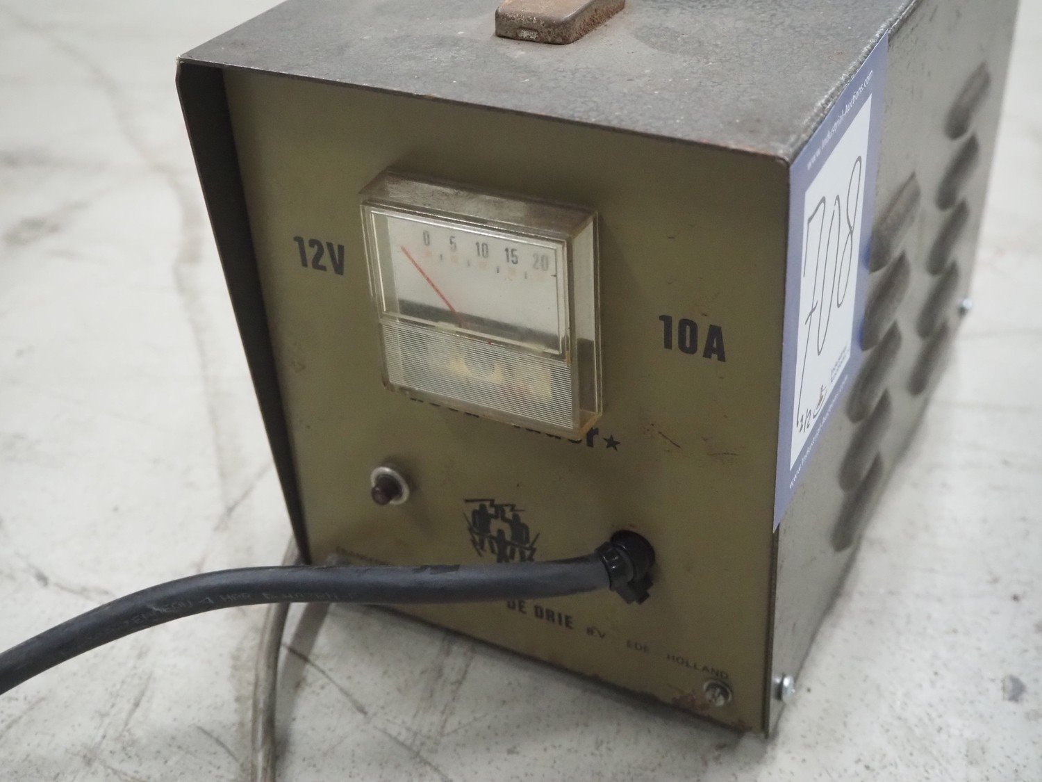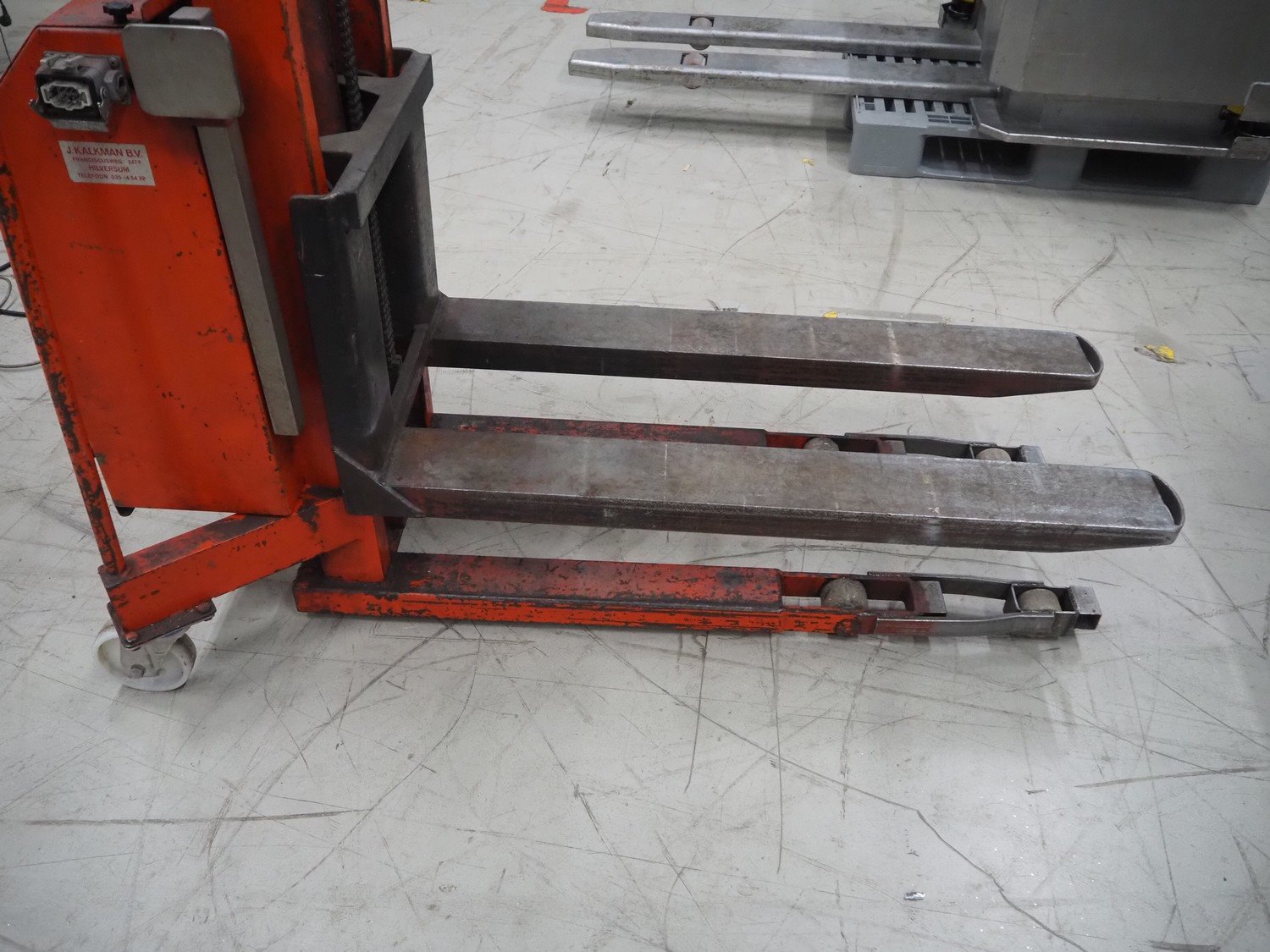 Tramatic electric pallet lifter, fork length: 1200 mm, lifting height: 1400 mm, total dimensions: 1650 mm x 900 mm x 2000 mm. Including De Drie B.V. battery charger, 220 V, 12 DC and VARTA battery. Kavel locatie: Looyenbeemd 11, 5652 BH Eindhoven, Nederland