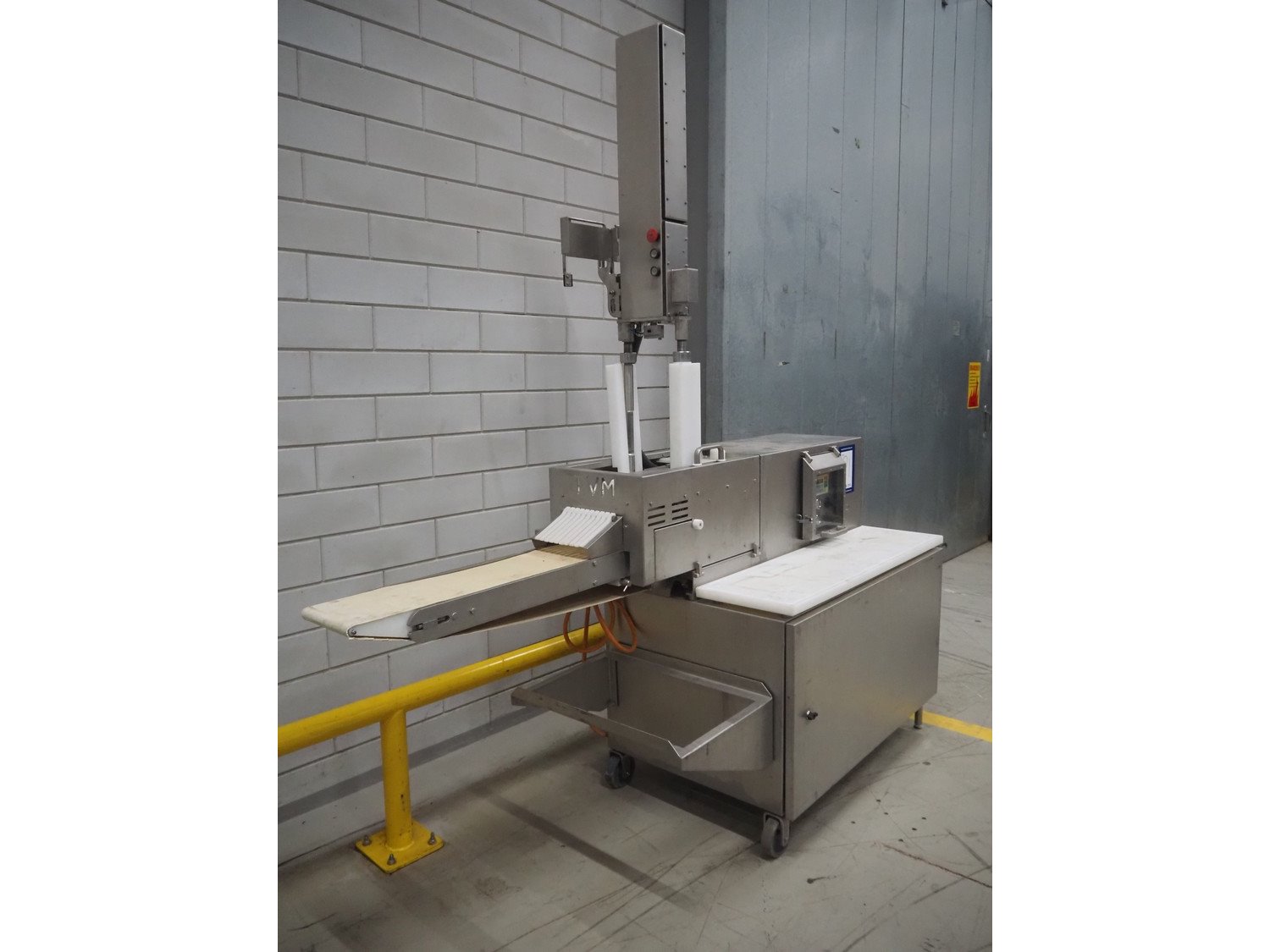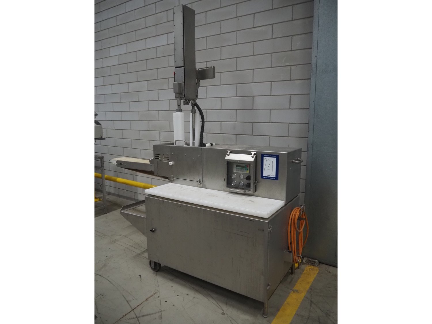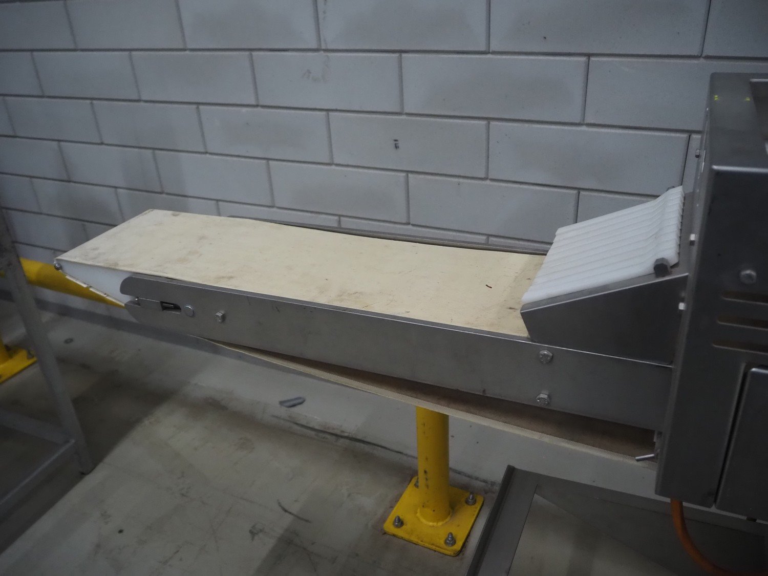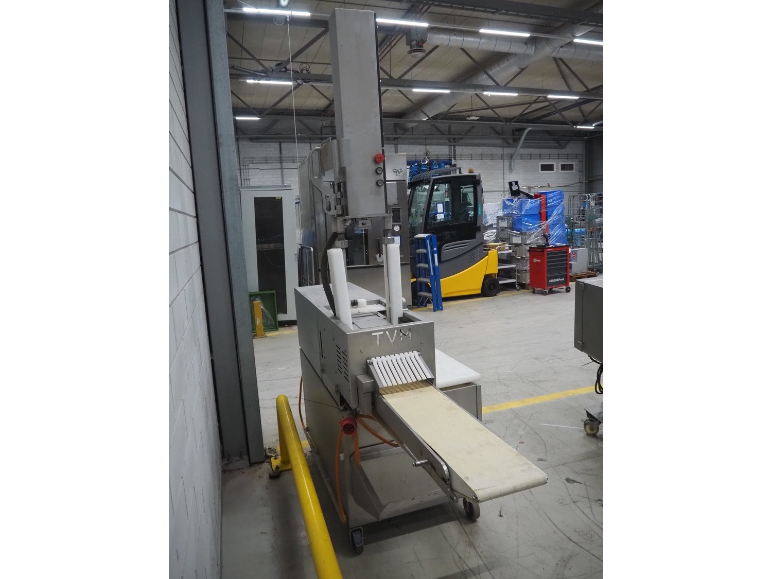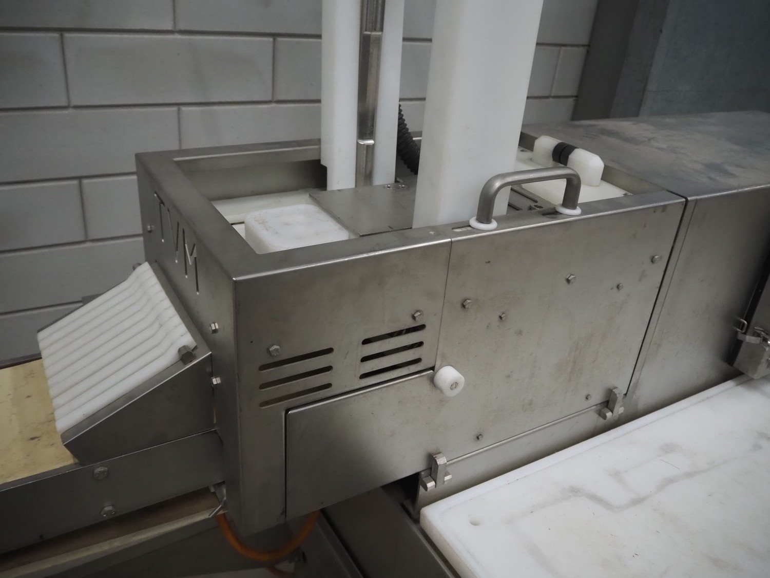 Marel TVM mobile portioning machine, type: TVM - Portio 4000, serial number: 08010-00305, year of construction: 2002, weight: 380 kg, plastic belt, belt width: 200 mm, total dimensions: 2350 mm x 760 mm x 2150 mm. Kavel locatie: Looyenbeemd 11, 5652 BH Eindhoven, Nederland