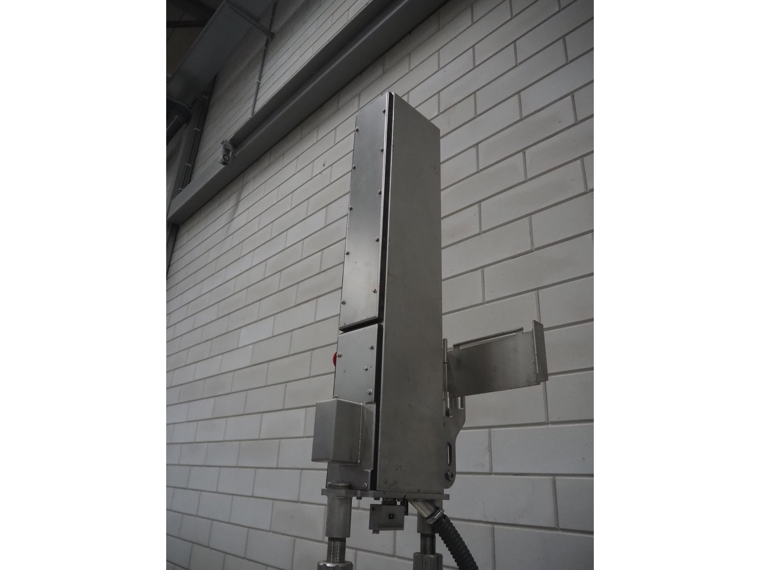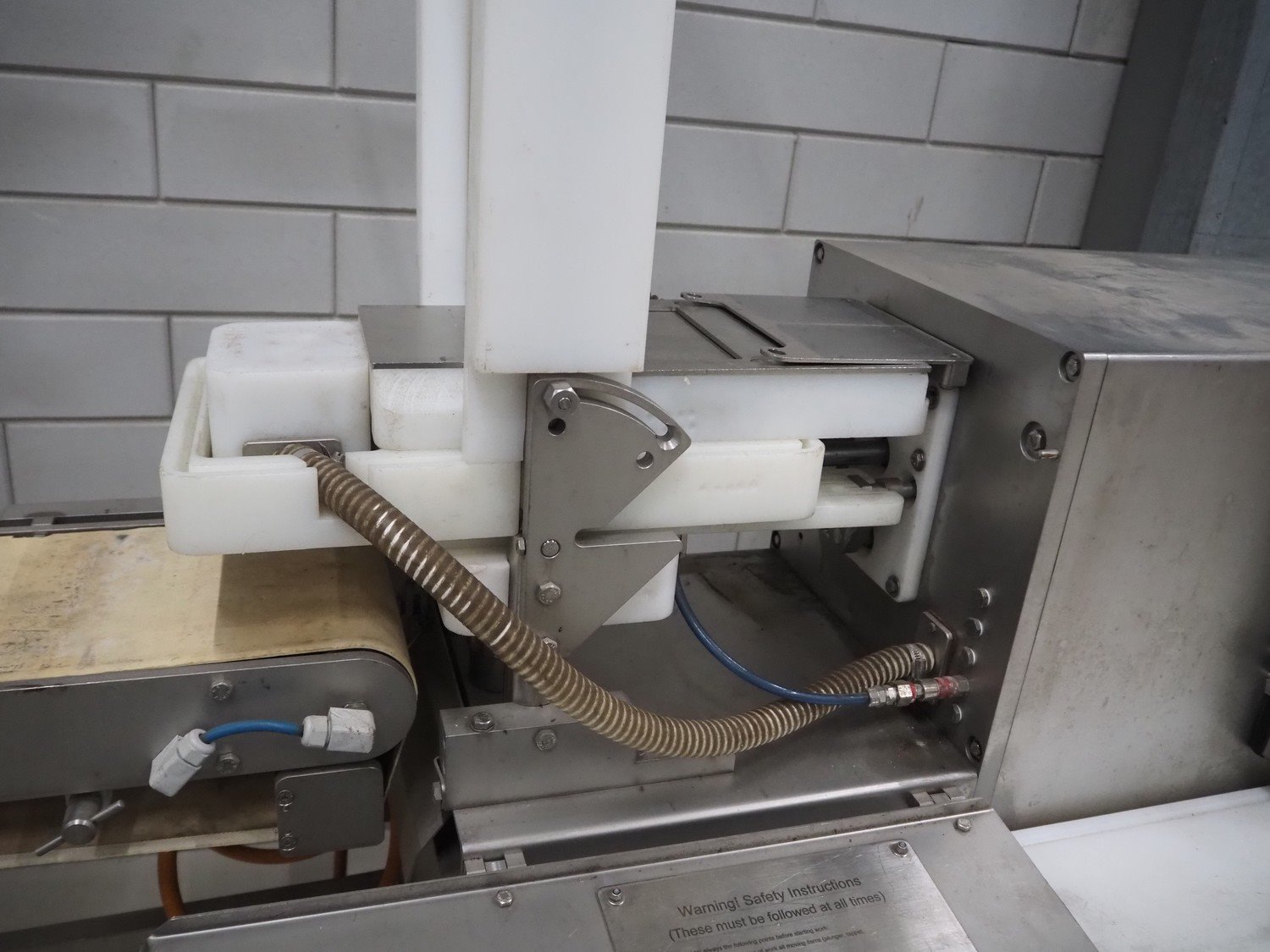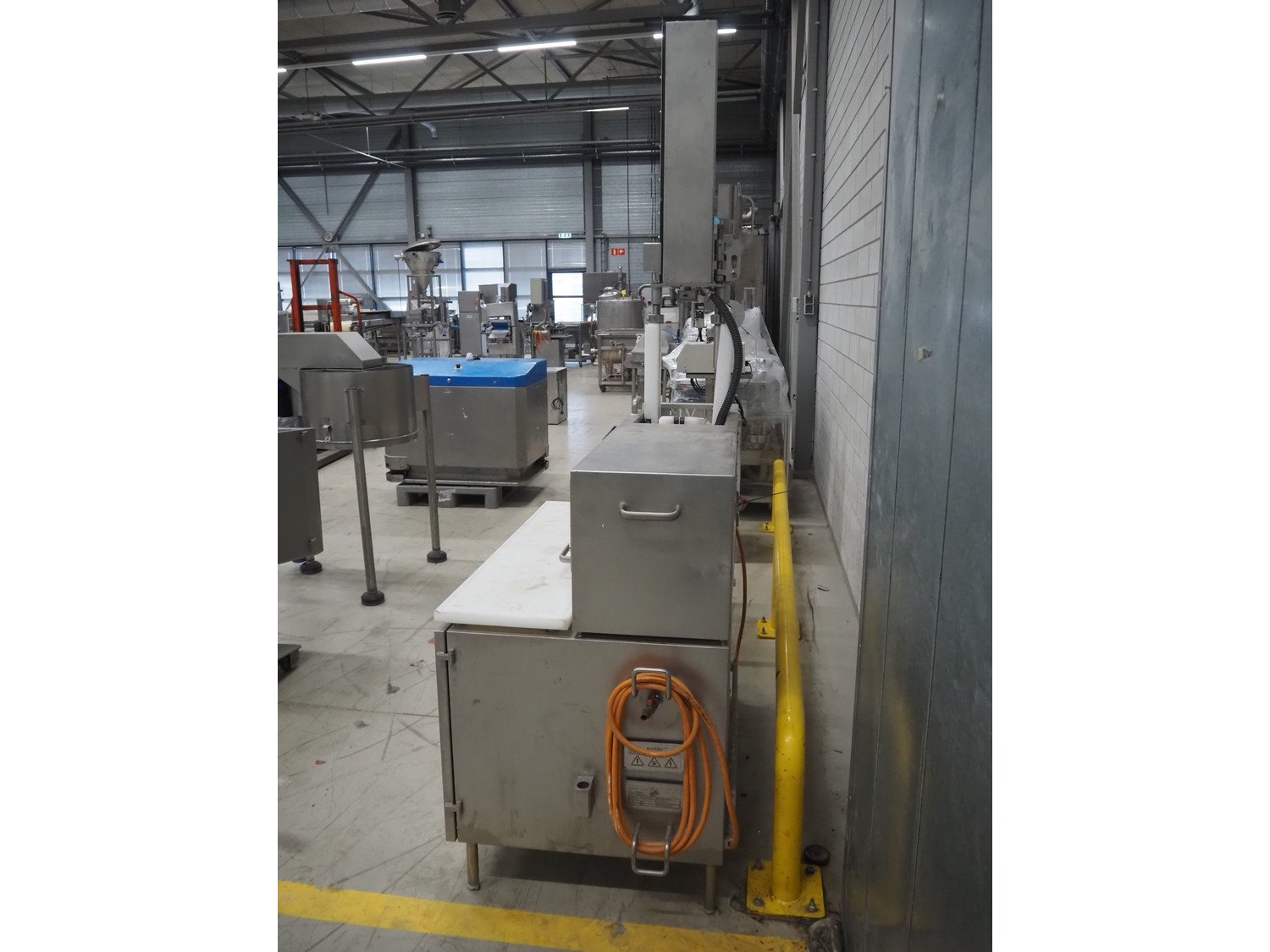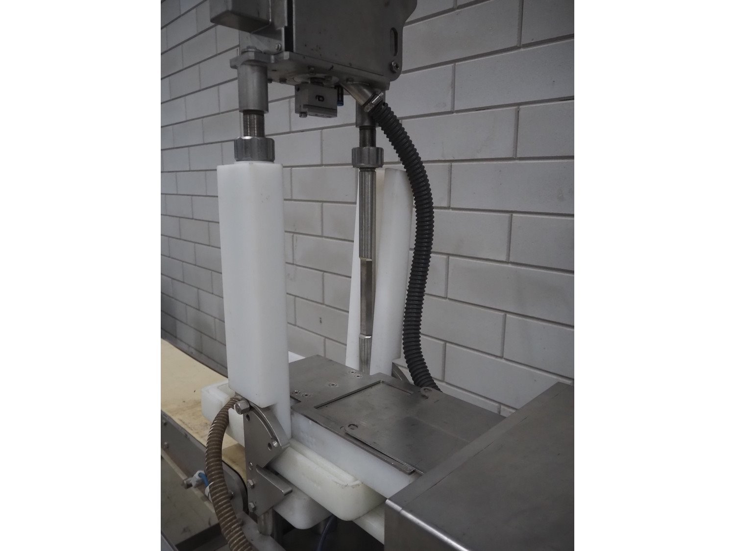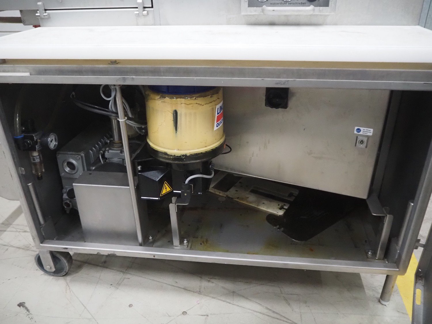Marel TVM mobile portioning machine, type: TVM - Portio 4000, serial number: 08010-00305, year of construction: 2002, weight: 380 kg, plastic belt, belt width: 200 mm, total dimensions: 2350 mm x 760 mm x 2150 mm. Kavel locatie: Looyenbeemd 11, 5652 BH Eindhoven, Nederland