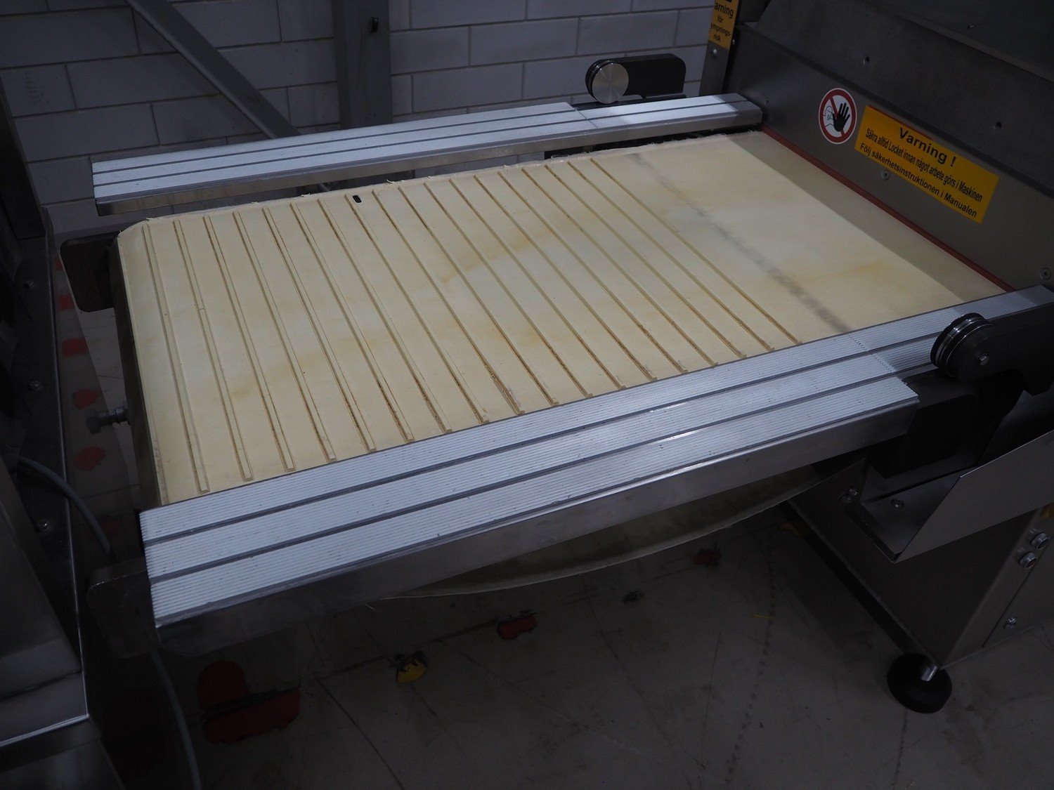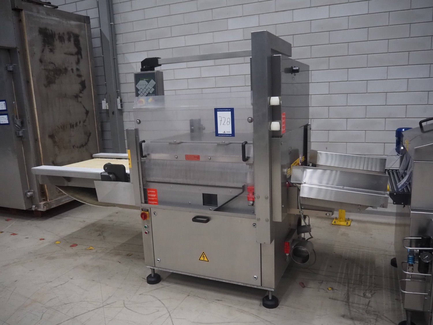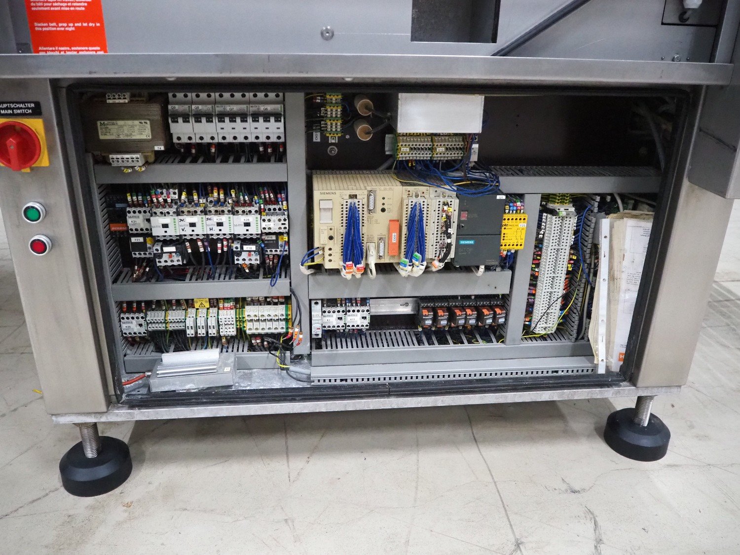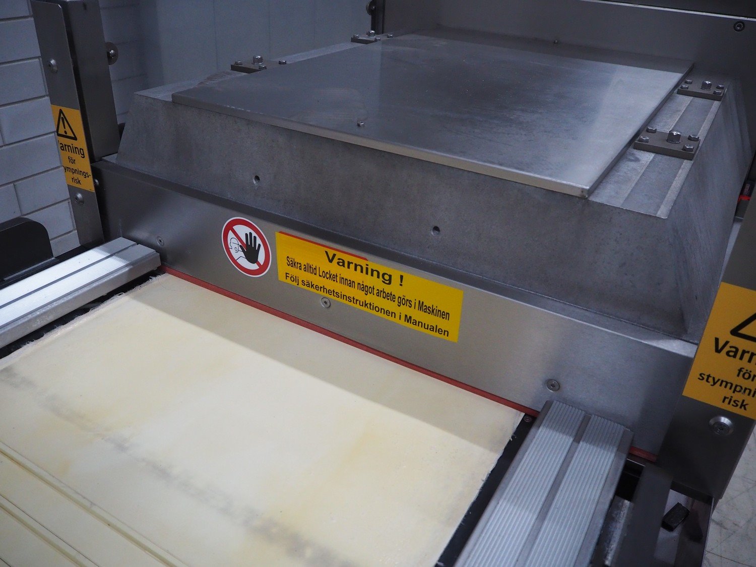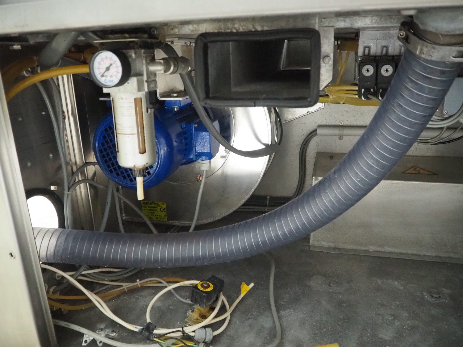 Cryovac belt vacuum machine, model: VS 90, serial number: A03301308, year of construction: 1998, 400 V, 3 Ph, 50 Hz, 20 A, 7 kW, 6/4 bar, plastic belt, belt width: 660 mm, plastic rollers, roller width: 660 mm, total dimensions: 3200 mm x 1300 mm x 1940 mm. Without vacuum pump. Kavel locatie: Looyenbeemd 11, 5652 BH Eindhoven, Nederland