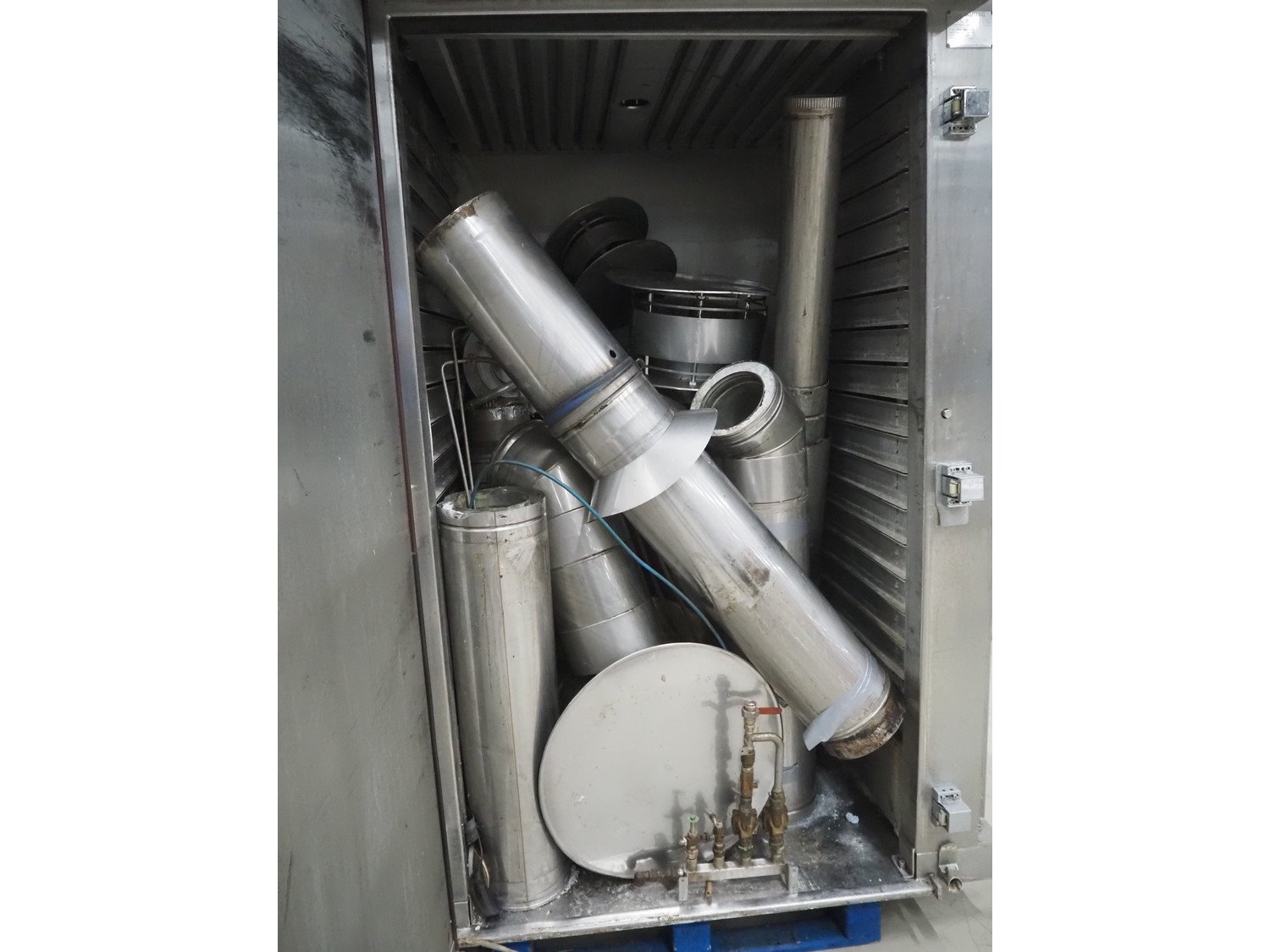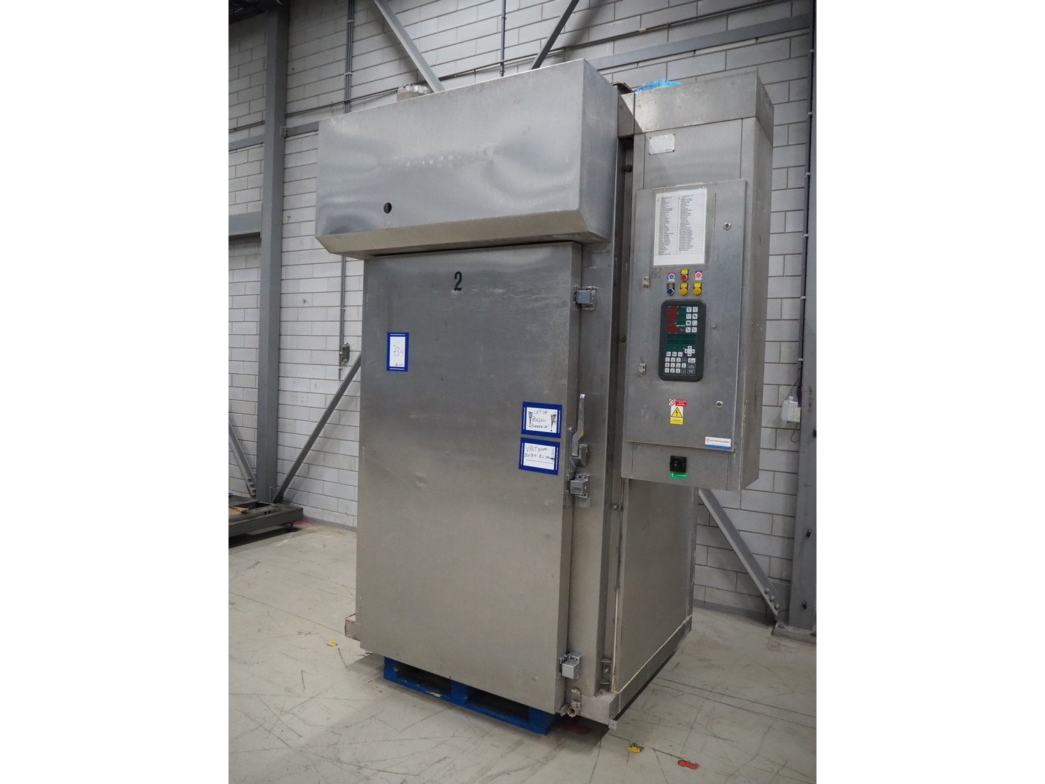 Mauting cooking and roasting chamber for 1 trolley, type: VPKM 2001 G-LL, serial number: 1138/05, year of construction: 2005, 400 V, 3 Ph, 9.5 A, 3.5 kW, weight: 1000 kg, Wieshaupt burner, type: WG10N/1A Z-LN, gas heated, dimensions: 1570 mm x 1200 mm x 3540 mm. Including s/s switch cabinet, dimensions: 500 mm x 400 mm x 1570 mm. Kavel locatie: Looyenbeemd 11, 5652 BH Eindhoven, Nederland