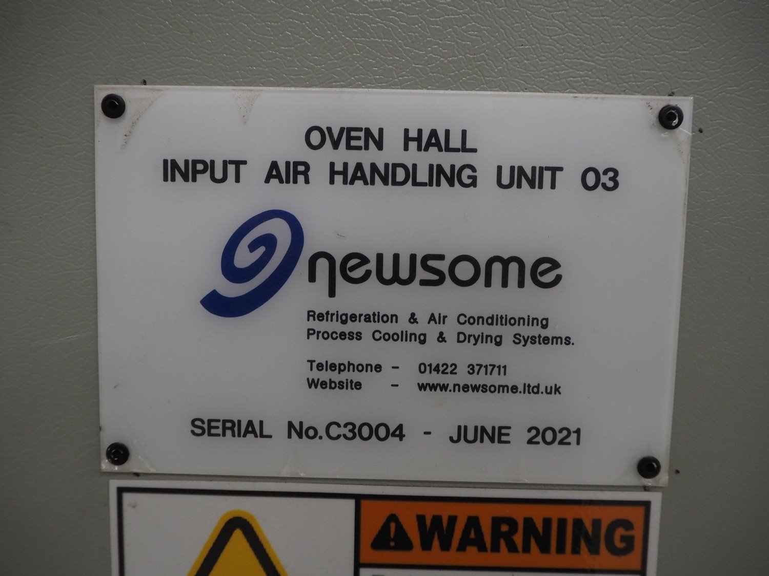 Newsome air handling unit, serial number: C3004, year of construction: 06/2021, 415 V, 3 Ph, 50 Hz, 3.80 A, 3.0/1.79 kW, 4018 rpm, dimensions: 1500 mm x 1200 mm x 2400 mm. Kavel locatie: Looyenbeemd 11, 5652 BH Eindhoven, Nederland