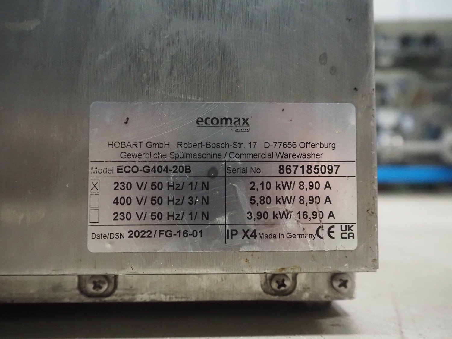 Hobart dishwasher, model: ECO-G404-20B, serial number: 867185097, year of construction: 2022, 230 V, 1 Ph, 50 Hz, 8.90 A, 2.10 kW, dimensions: 550 mm x 450 mm x 700 mm. Kavel locatie: Looyenbeemd 11, 5652 BH Eindhoven, Nederland