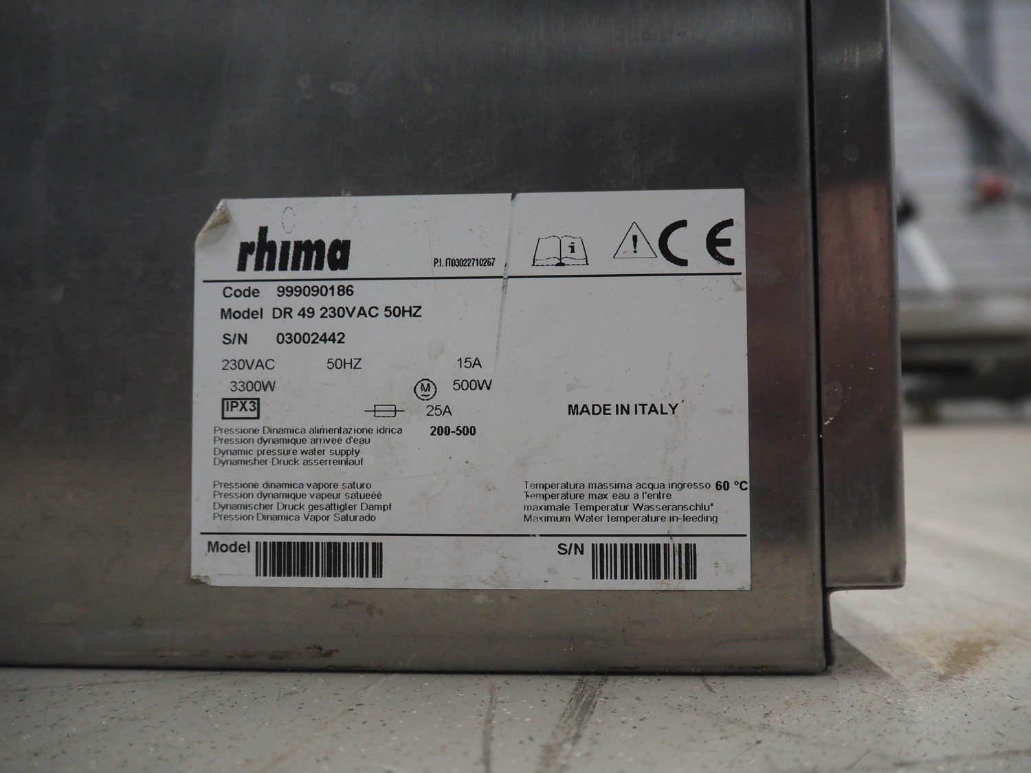 Rhima dishwasher, model: DR 49, serial number: 03002442, 230 V, 50 Hz, 15 A, 500 W, dimensions: 620 mm x 600 mm x 830 mm. Kavel locatie: Looyenbeemd 11, 5652 BH Eindhoven, Nederland