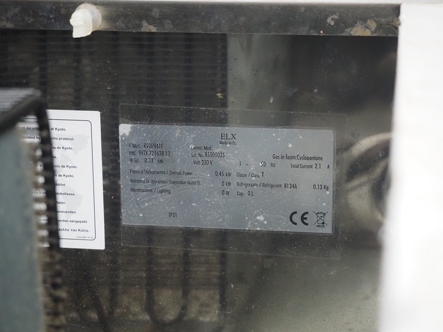 ELX refrigerator, model: RS06N41F, serial number: 85000025, 230 V, 1 Ph, 50 Hz, 2.1 A, 0.33 kW, refrigerant: R134A, 0.13 kg, 3 floors, floor dimensions: 650 mm x 520 mm, total dimensions: 750 mm x 800 mm x 2000 mm. Kavel locatie: Looyenbeemd 11, 5652 BH Eindhoven, Nederland