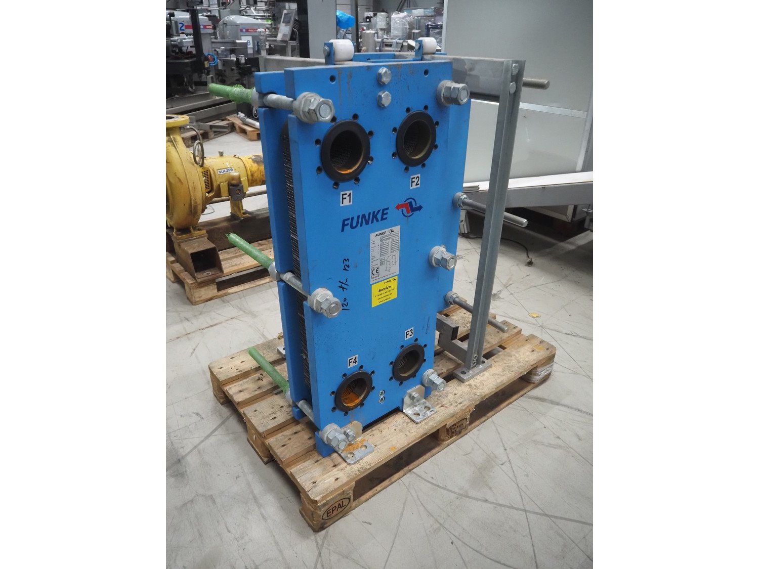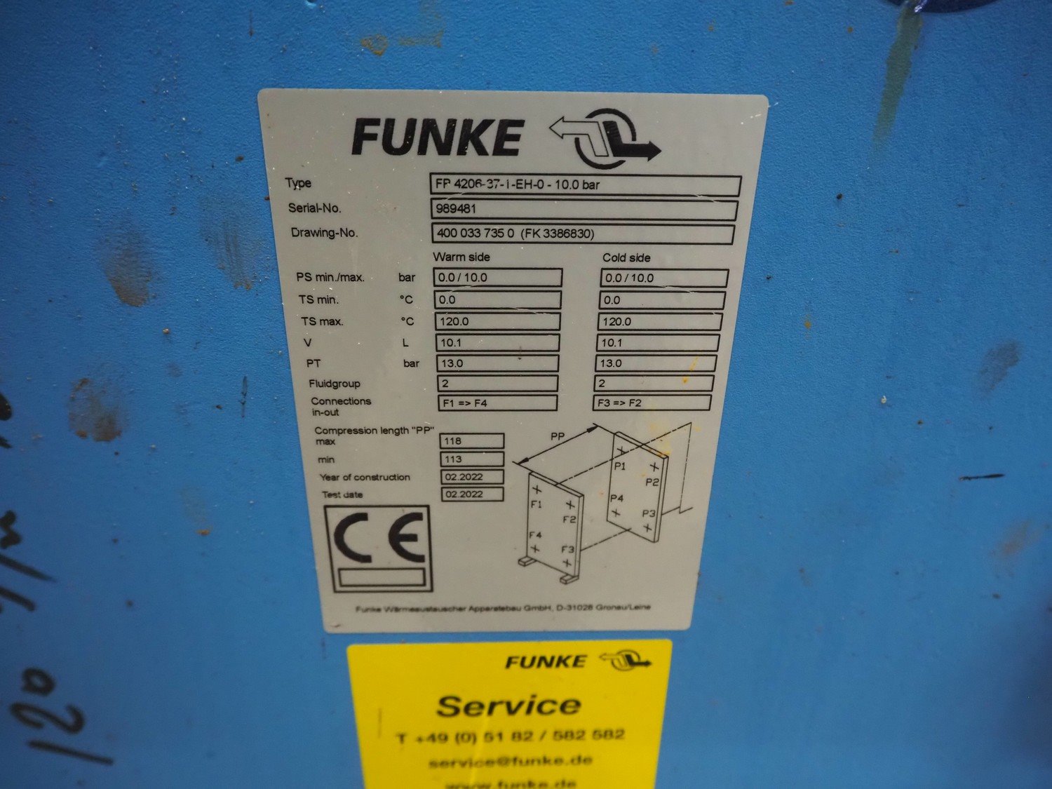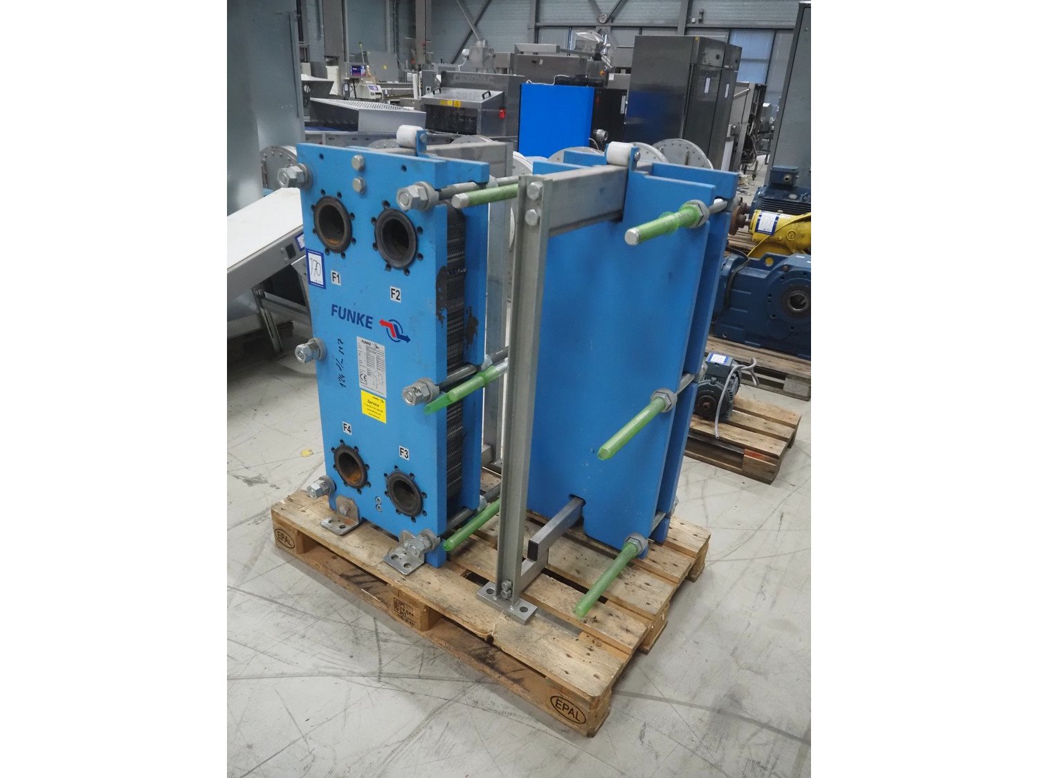 2 Funke plate heat exchangers, type: (1x) fFP 206-37-1-EH-0 -10.0 bar, serial number: 940770, year of construction: 06.2020, volume: 10.7 liter, (1x) FP 4206-37-I-EH-0-10.0 bar, serial number: 989481, year of construction: 02/2022, volume: 10.1 liter, dimensions: (2x) 570 mm x 470 mm x 1110 mm. Kavel locatie: Looyenbeemd 11, 5652 BH Eindhoven, Nederland