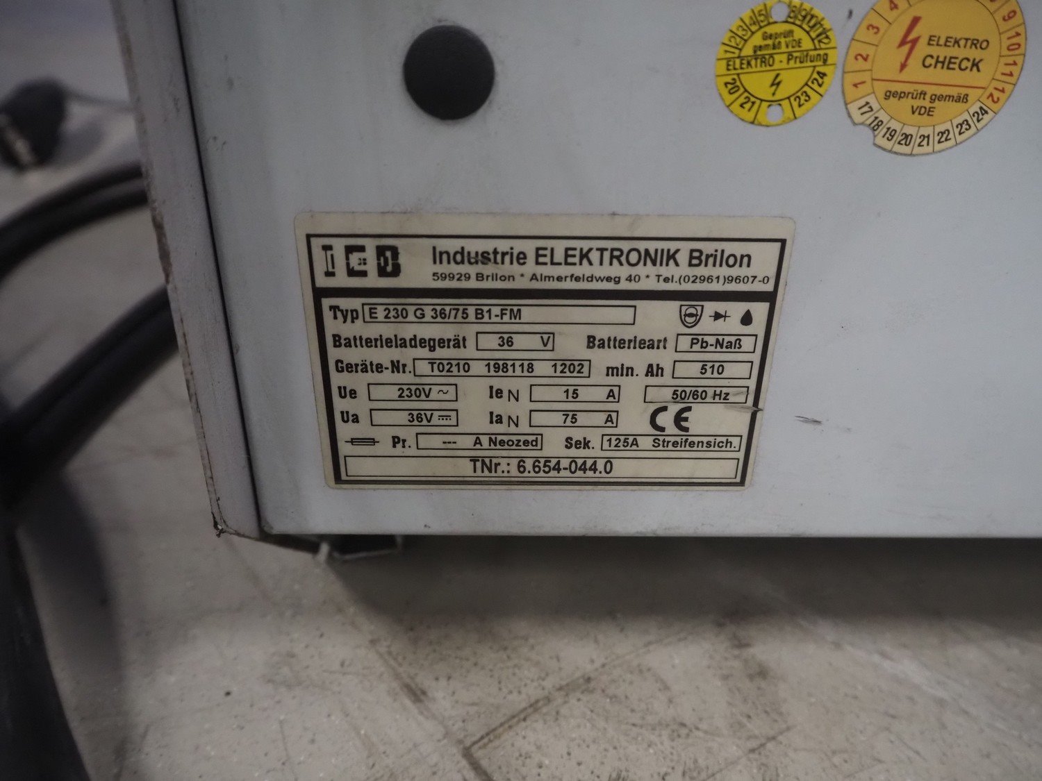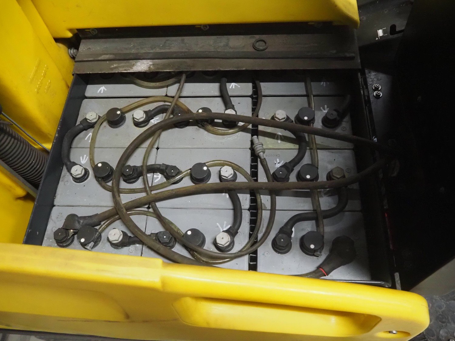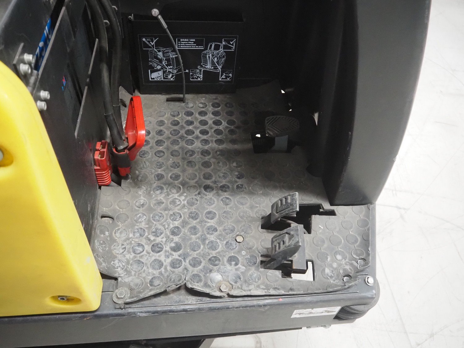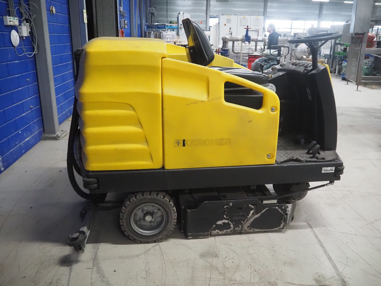 Kärcher floor scrubbing machine, model: BR 1000 bat pack, number: 010942, year of construction: 2002, 36 V, 5500 W, dimensions: 2000 mm x 1380 mm x 1450 mm. Including battery charger, type: E 230 G 36/75 B1-FM, 230 V, 1 Ph, 50/60 Hz, 15/75 A, dimensions: 500 mm x 380 mm x 360 mm. Kavel locatie: Looyenbeemd 11, 5652 BH Eindhoven, Nederland