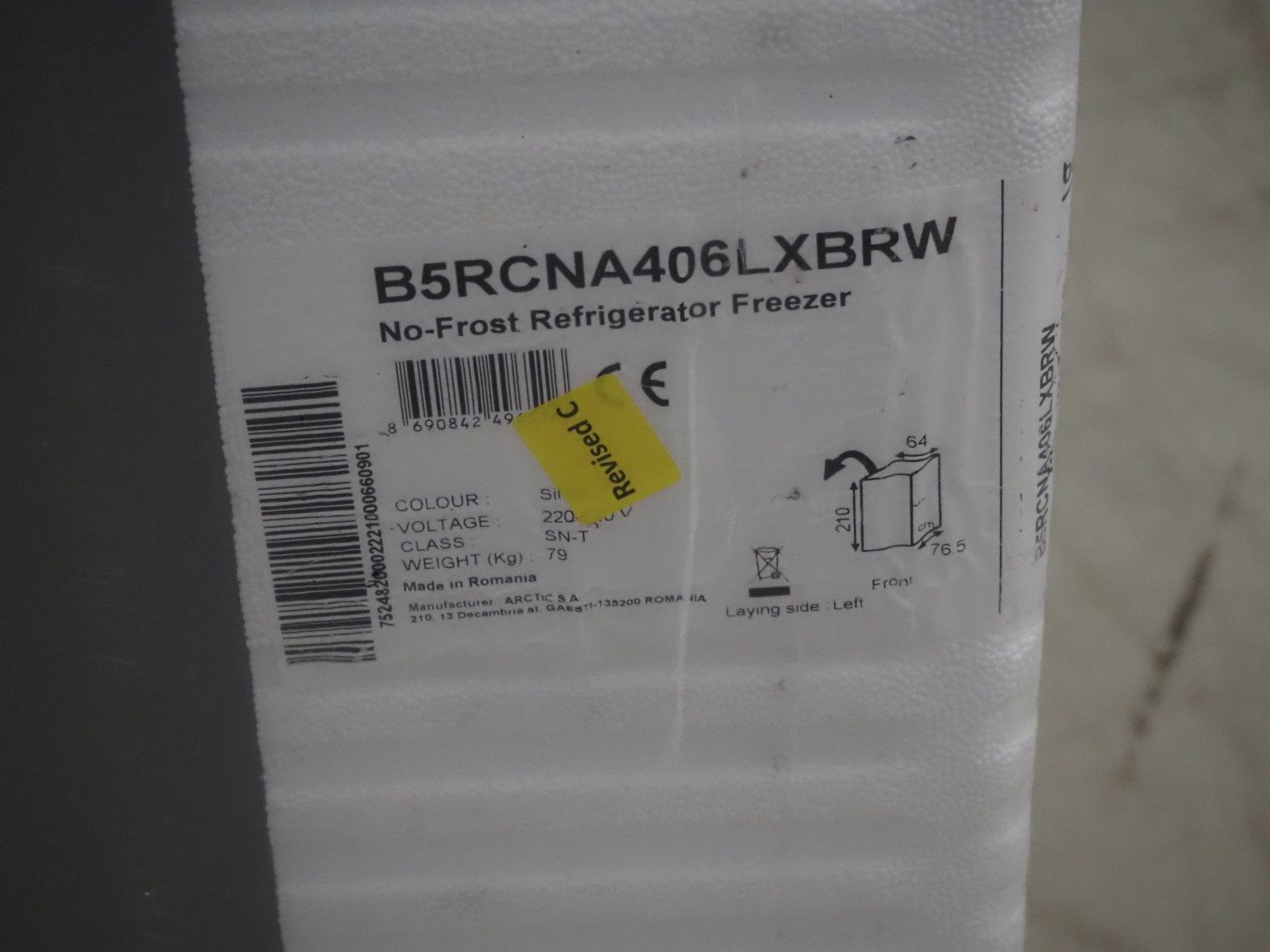 Beko No-Frost refrigerator/freezer, type: B5RCNA406LXBRW, 220-240 V, dimensions: 600 mm x 750 mm x 2100 mm. Kavel locatie: Looyenbeemd 11, 5652 BH Eindhoven, Nederland