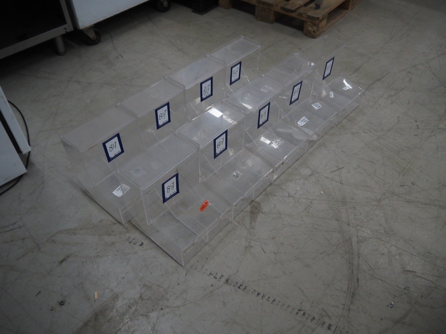 9 plastic candy dispenser, dimensions: (9x) 300 mm x 250 mm x 290 mm. Kavel locatie: Looyenbeemd 11, 5652 BH Eindhoven, Nederland