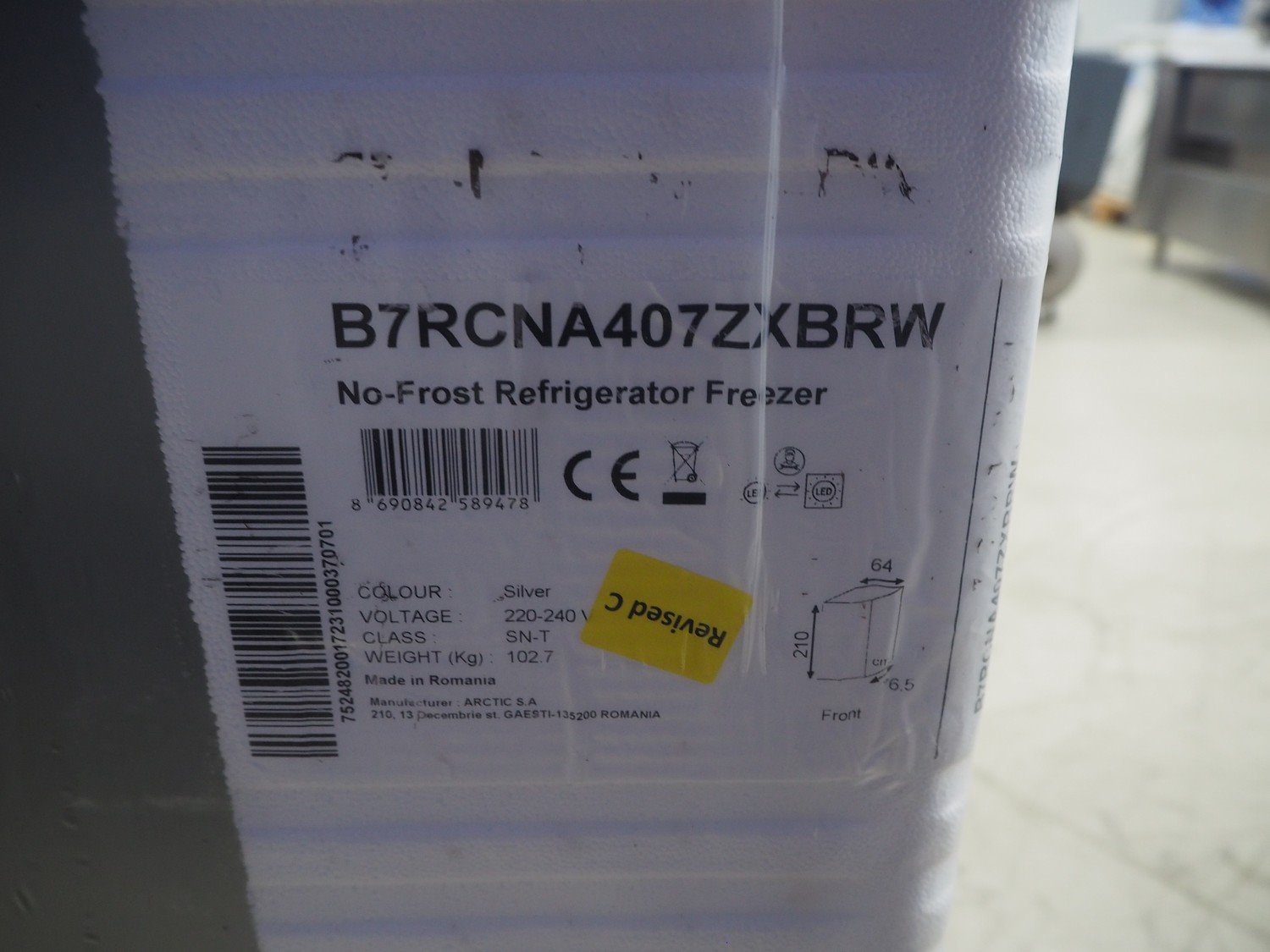 Beko No-Frost refrigerator/freezer, type: B7RCNA407ZXBRW, 220-240 V, dimensions: 600 mm x 750 mm x 2100 mm. Kavel locatie: Looyenbeemd 11, 5652 BH Eindhoven, Nederland
