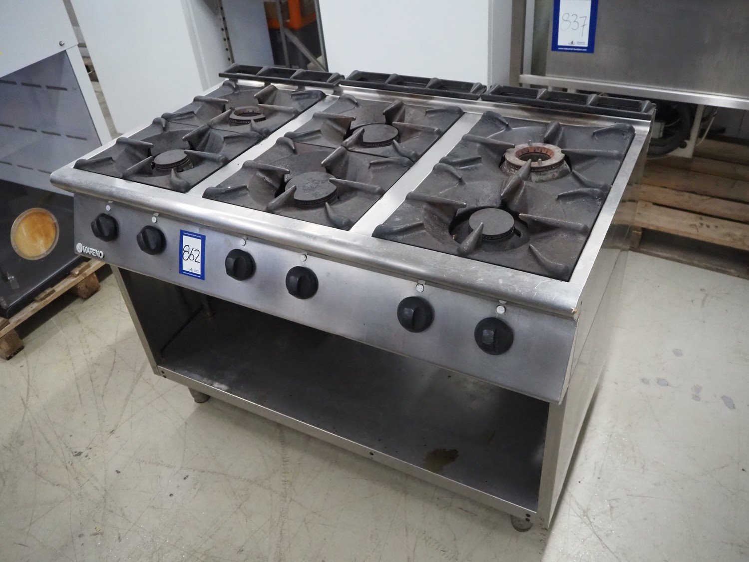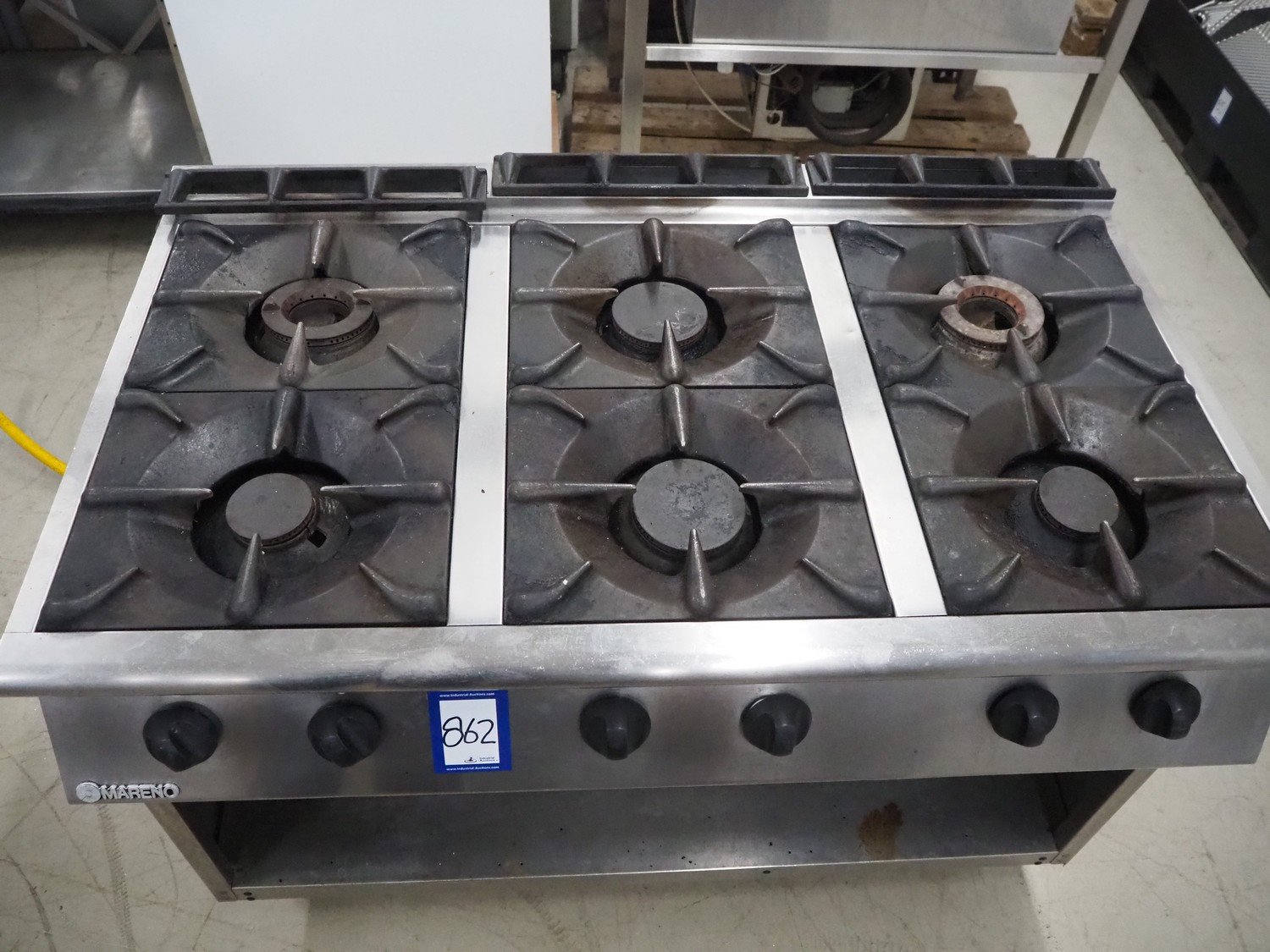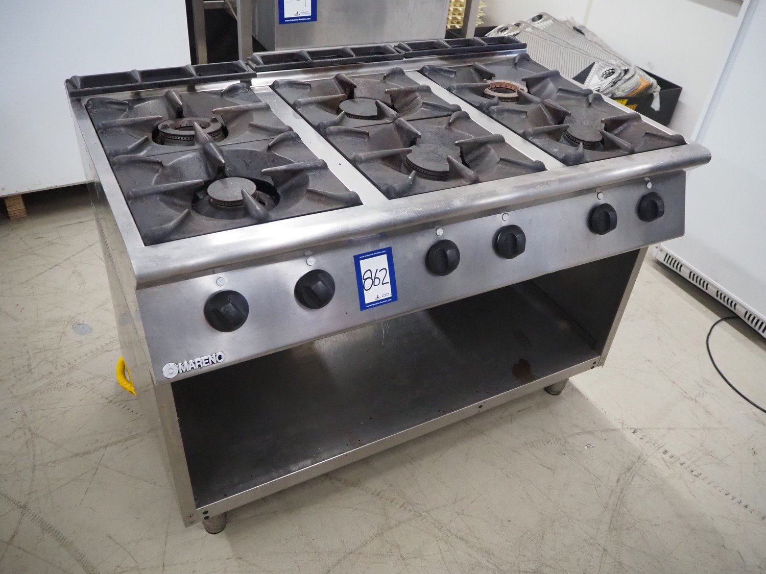 Mareno 6-pits furnace, dimensions: 1200 mm x 740 mm x 880 mm. Kavel locatie: Looyenbeemd 11, 5652 BH Eindhoven, Nederland