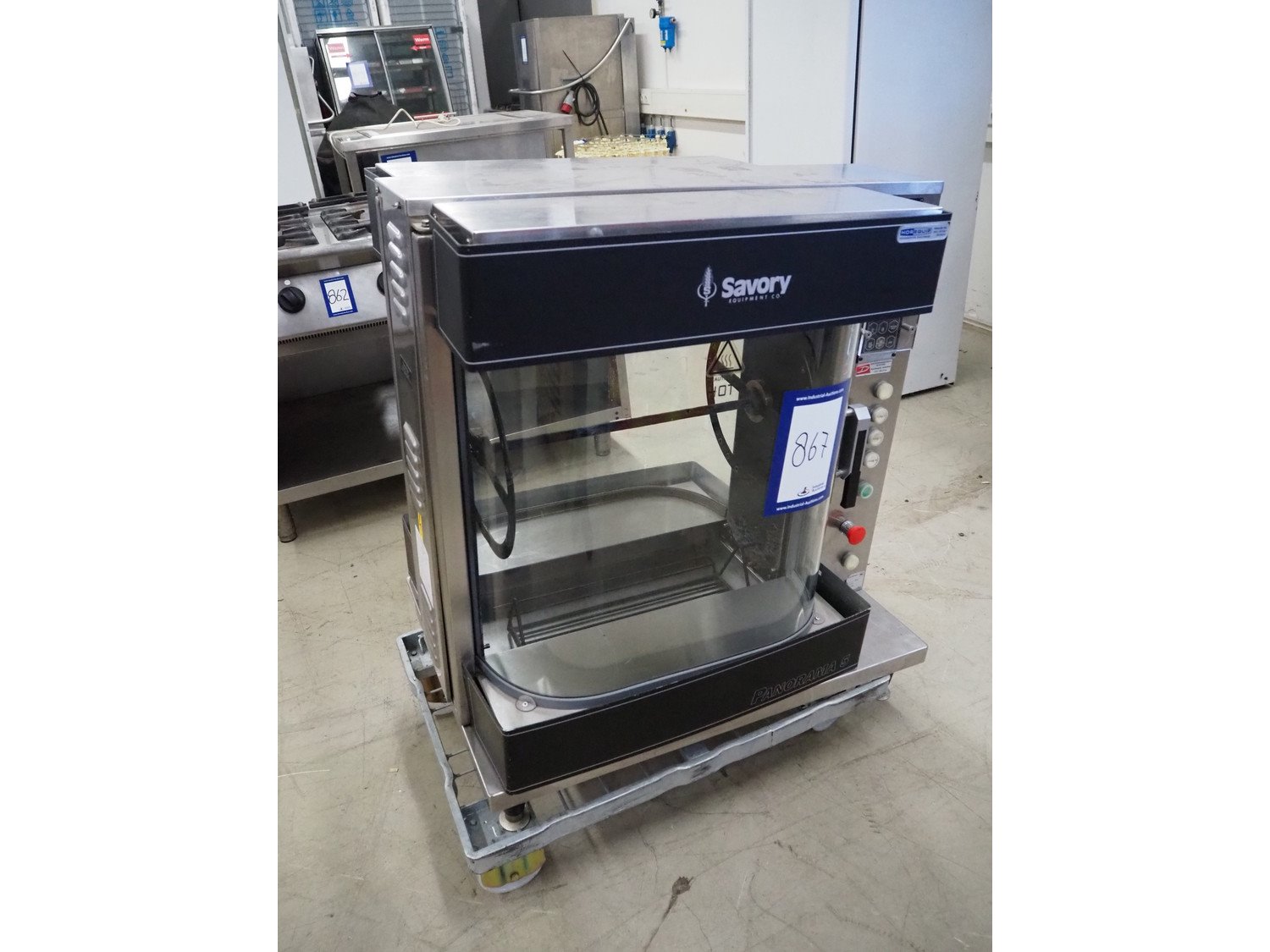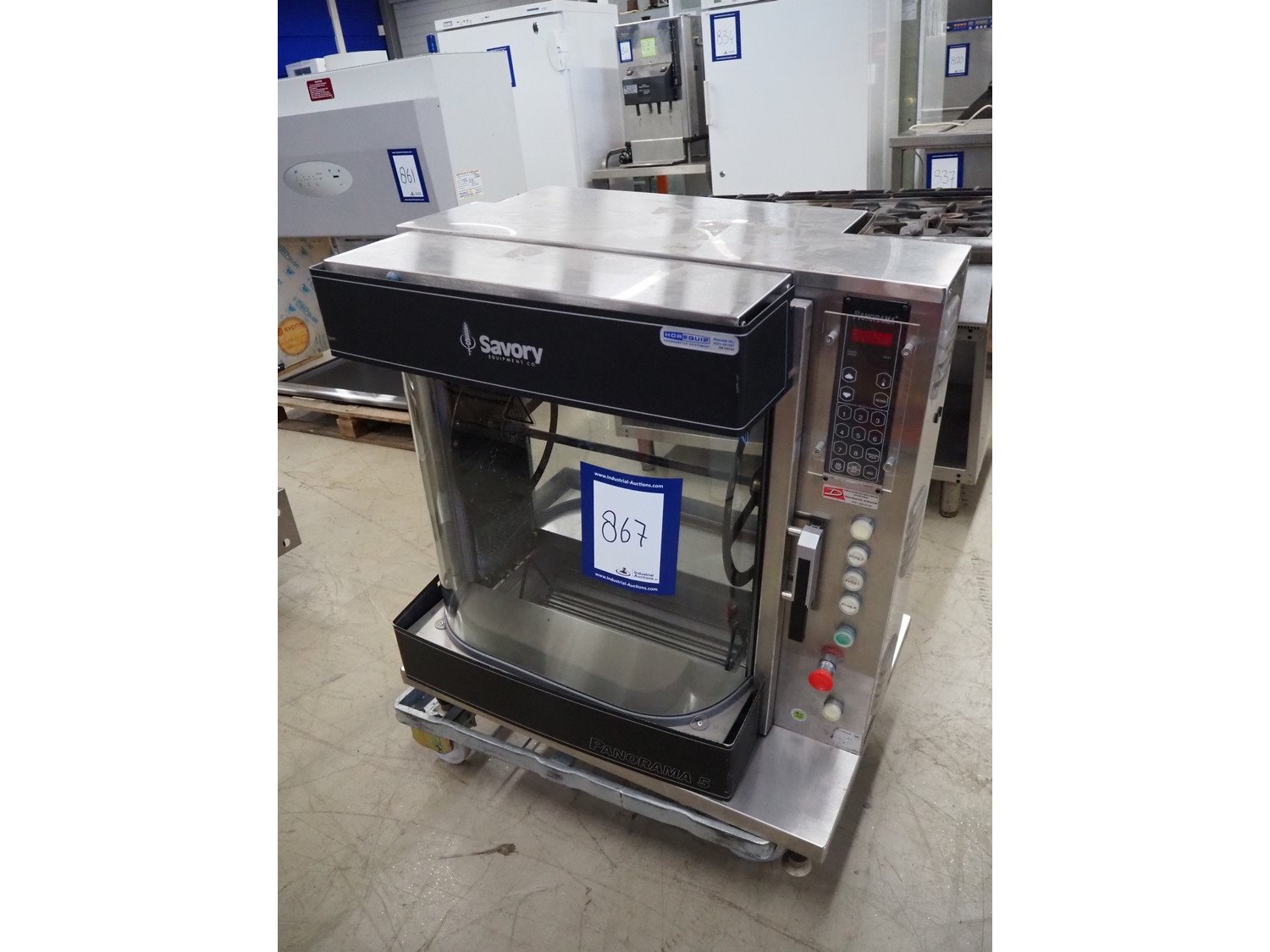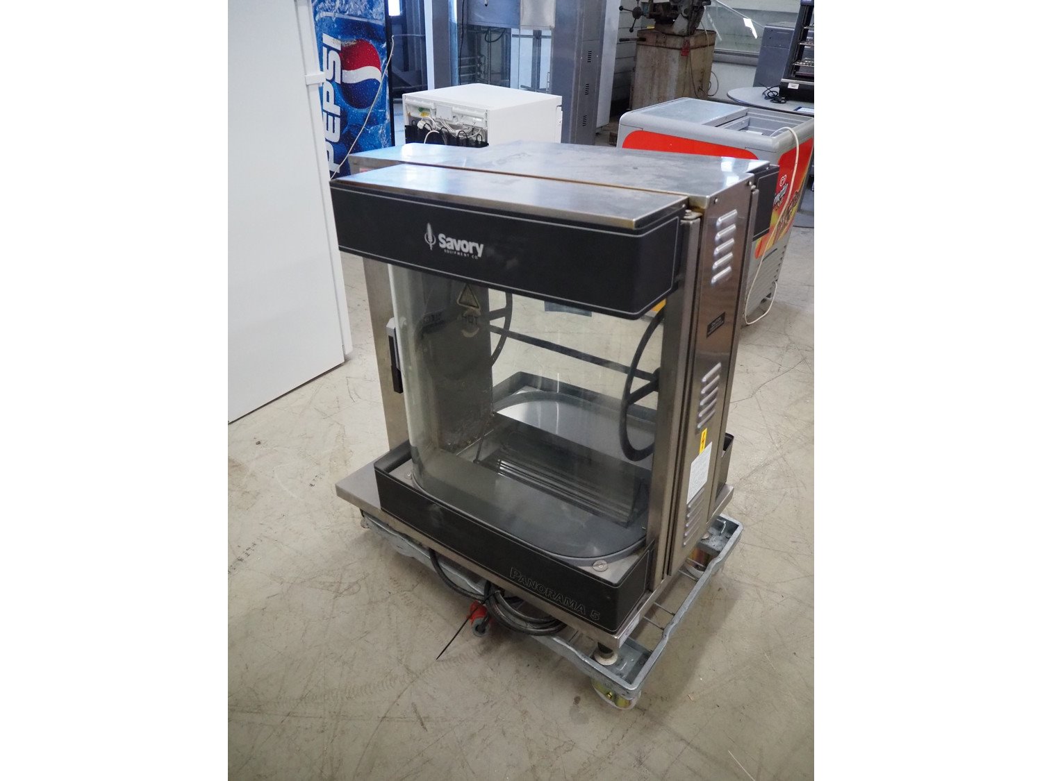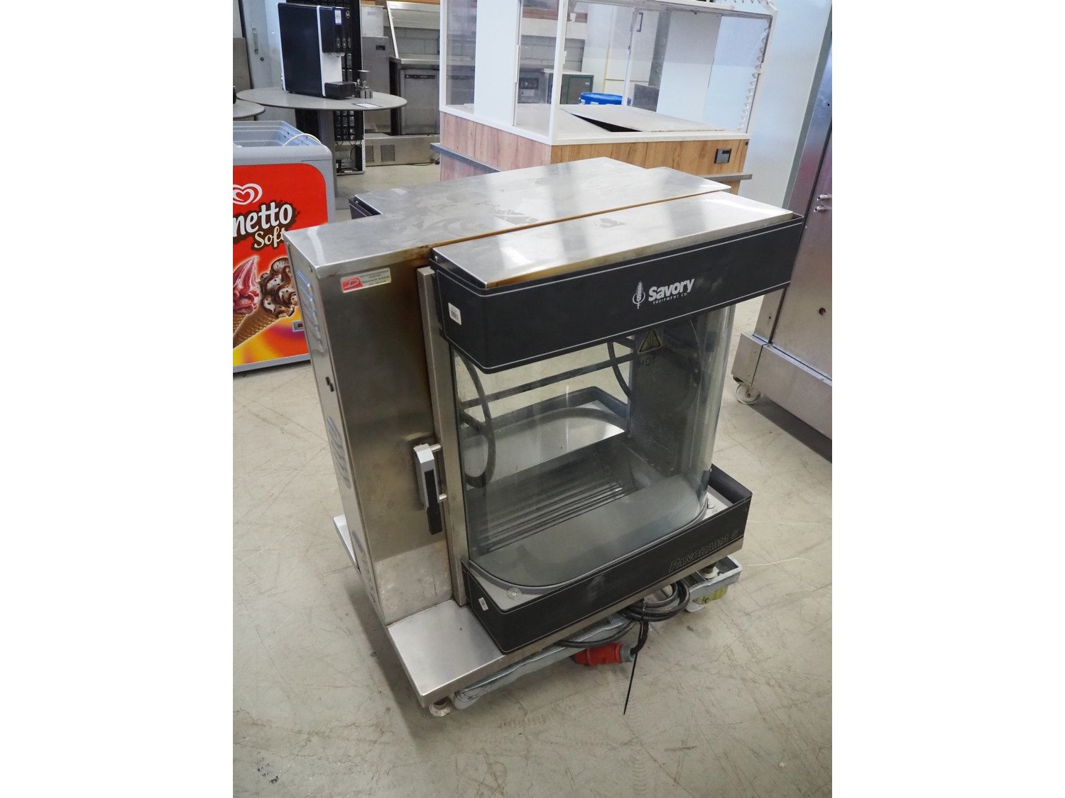 Merco Savory rotisserie grill on s/s trolley, model: SP-5, type: Panorama 5, 6 kW, 1 grill basket, dimensions basket: 450 mm x 160 mm, total dimensions: 860 mm x 625 mm x 1100 mm. Kavel locatie: Looyenbeemd 11, 5652 BH Eindhoven, Nederland