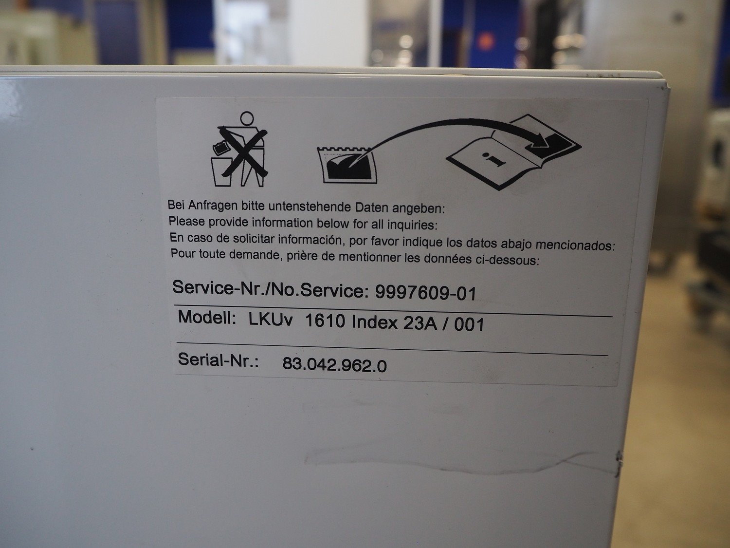 Liebherr laboratory refrigerator, model: LKUv 1610, serial number: 83.042.962.0, 220-240 V, 50 Hz, 1.0 A, refrigerant: R600a, 24 gram, volume: 130 liter, dimensions: 620 mm x 600 mm x 840 mm. Kavel locatie: Looyenbeemd 11, 5652 BH Eindhoven, Nederland