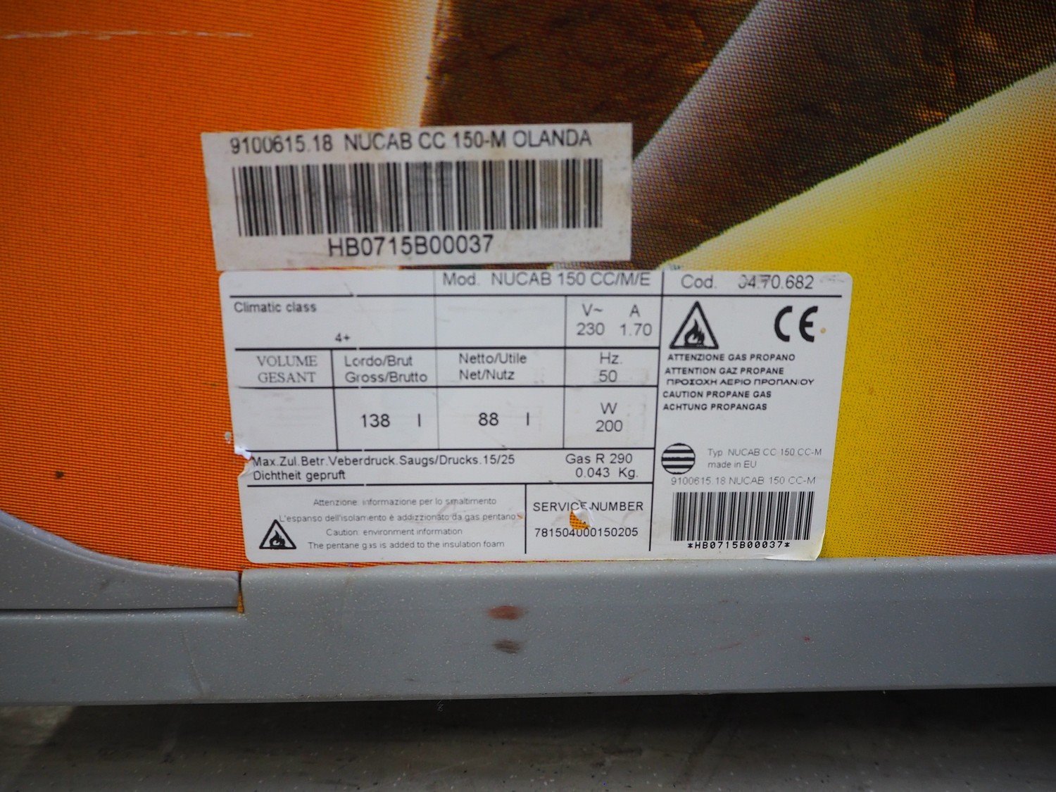 Iarp freezer, model: NUCAB 150 CC/M/E, serial number: 9100615.18, 230 V, 50 Hz, 1.7 A, 200 W, gross volume: 138 liter, net volume: 88 liter, refrigerant: R290 / 0.043 kg, dimensions: 700 mm x 650 mm x 900 mm. Kavel locatie: Looyenbeemd 11, 5652 BH Eindhoven, Nederland