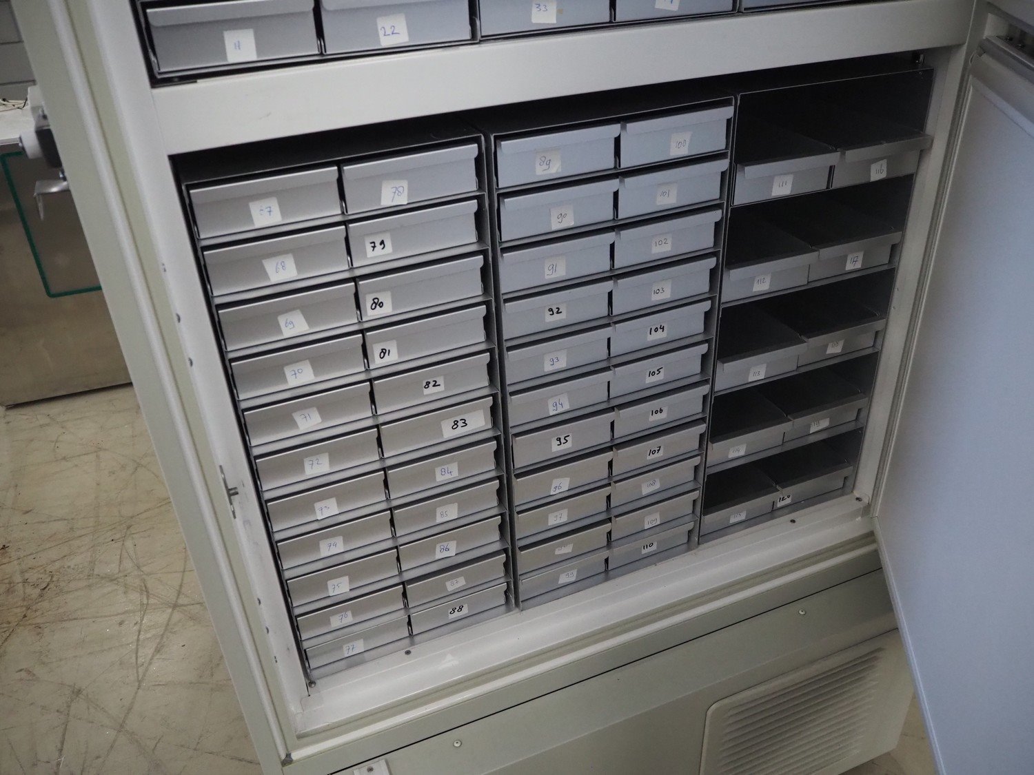 Panasonic mobile ultra low laboratory freezer, capacity: -80° C, dimensions: 1070 mm x 1000 mm x 2000 mm. Kavel locatie: Looyenbeemd 11, 5652 BH Eindhoven, Nederland