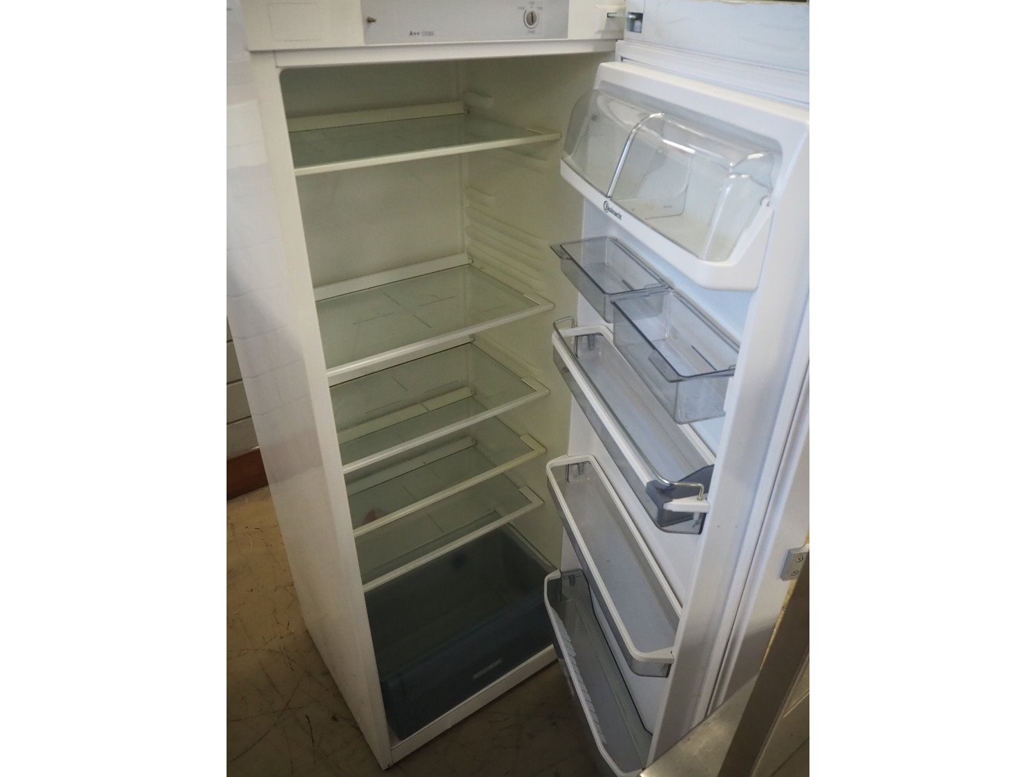Bauknecht refrigerator, model: KR 325 A++WS, 220-240 V, 50 Hz, 0.8 A, volume: 325 liter, refrigerant: R600a / 0.060 kg, dimensions: 640 mm x 600 mm x 1600 mm. Kavel locatie: Looyenbeemd 11, 5652 BH Eindhoven, Nederland