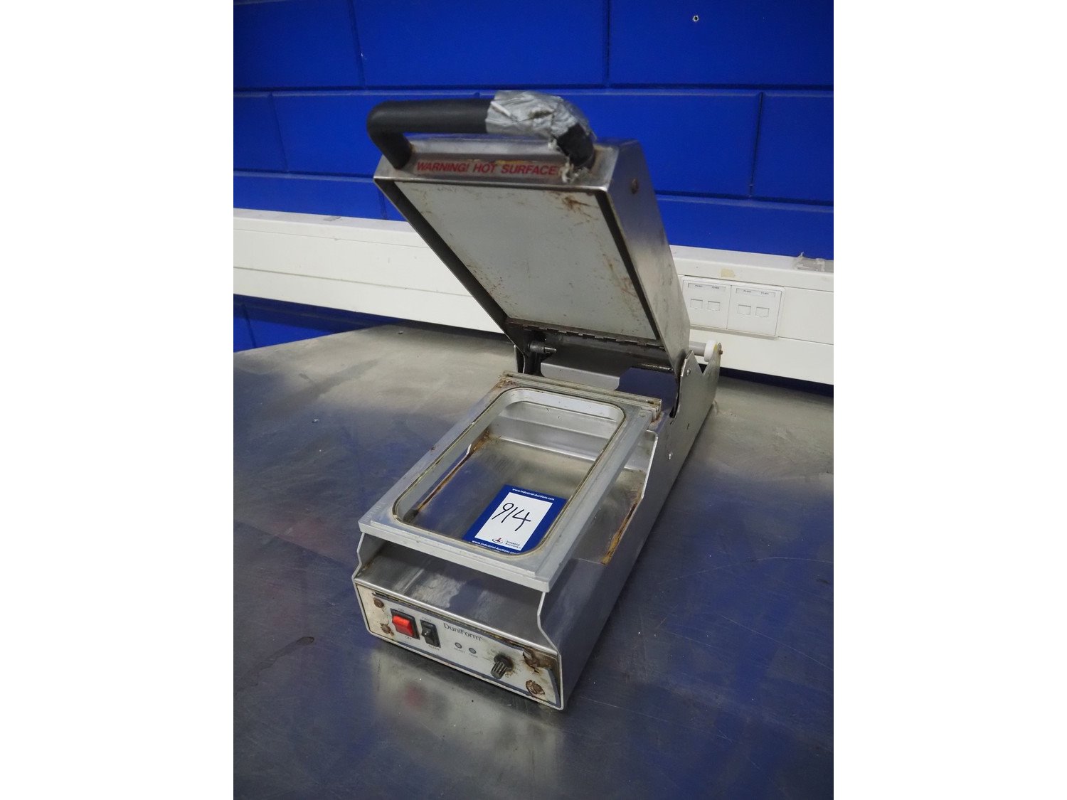 Duniform traysealer, type: DF 20, machine number: 202884, year of construction: 2006, 230 V, 50 Hz, 0.75 kW, dimensions dye: 245 mm x 145 mm, total dimensions: 620 mm x 220 mm x 220 mm. Kavel locatie: Looyenbeemd 11, 5652 BH Eindhoven, Nederland