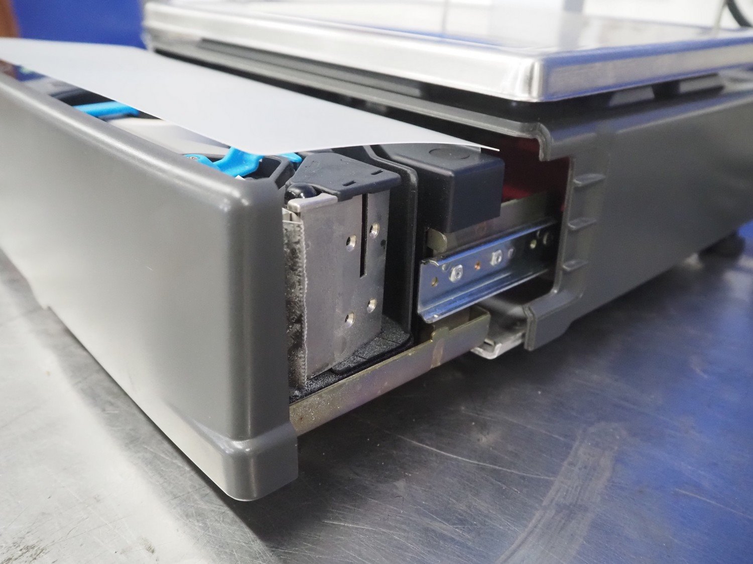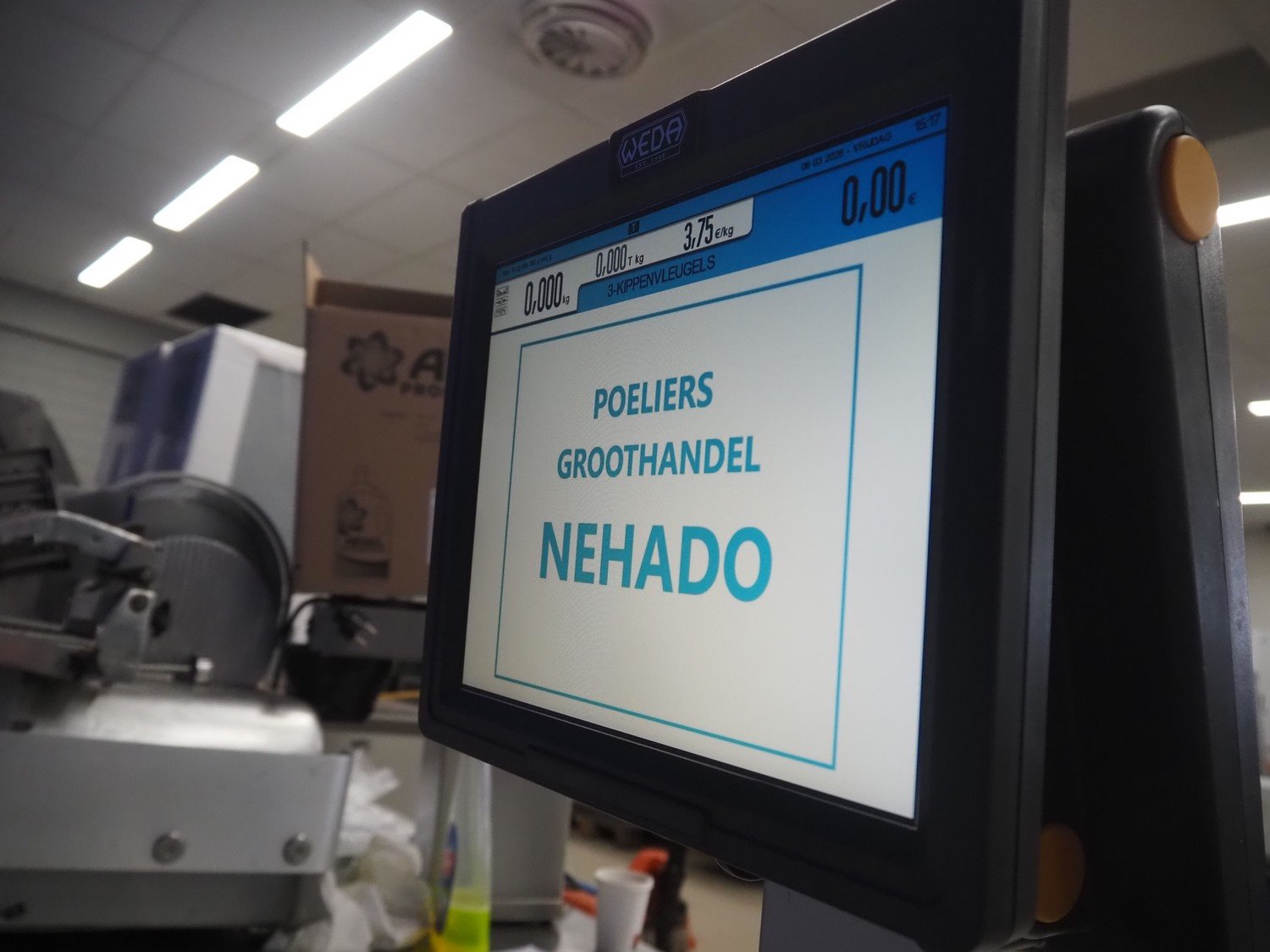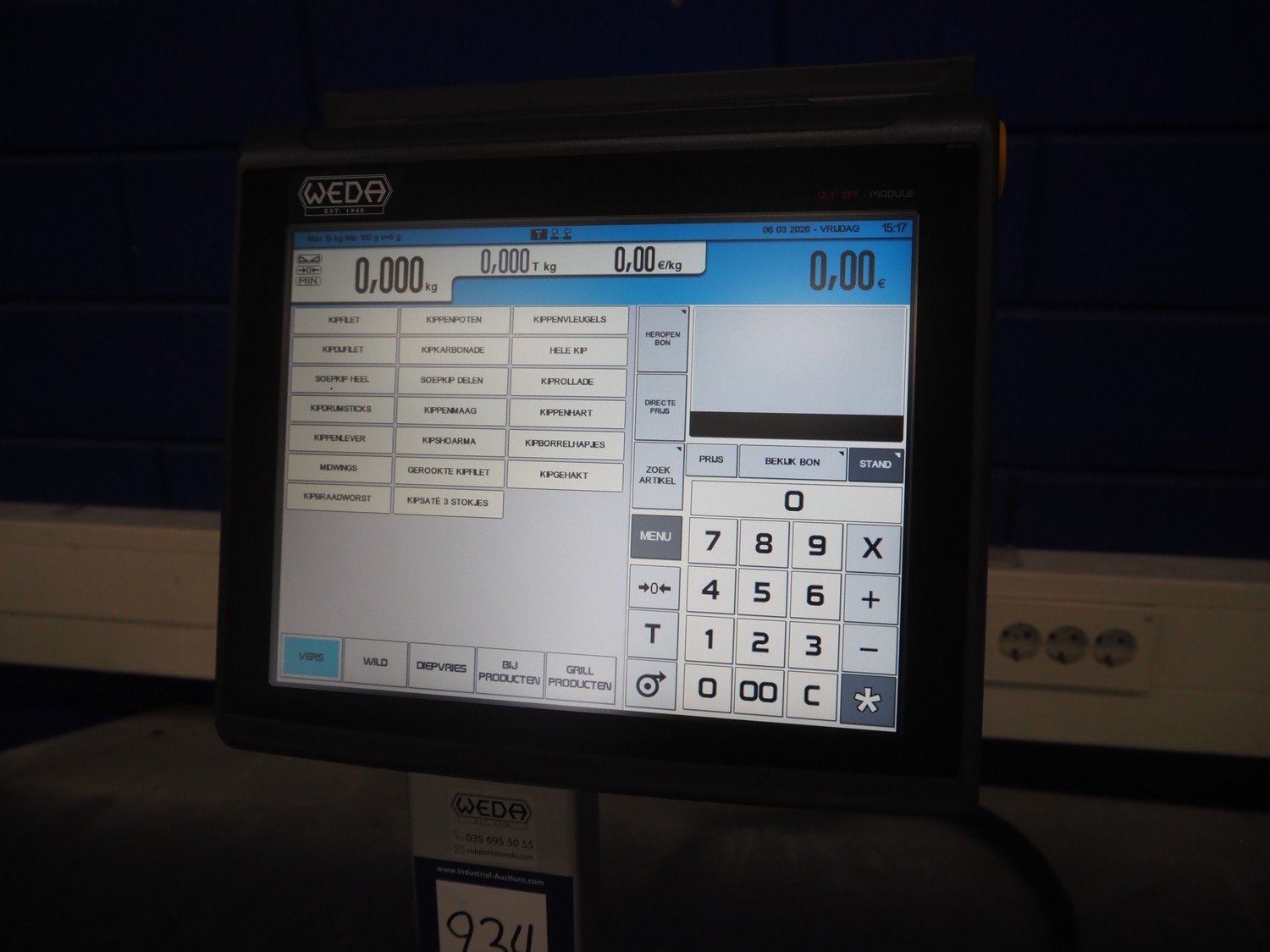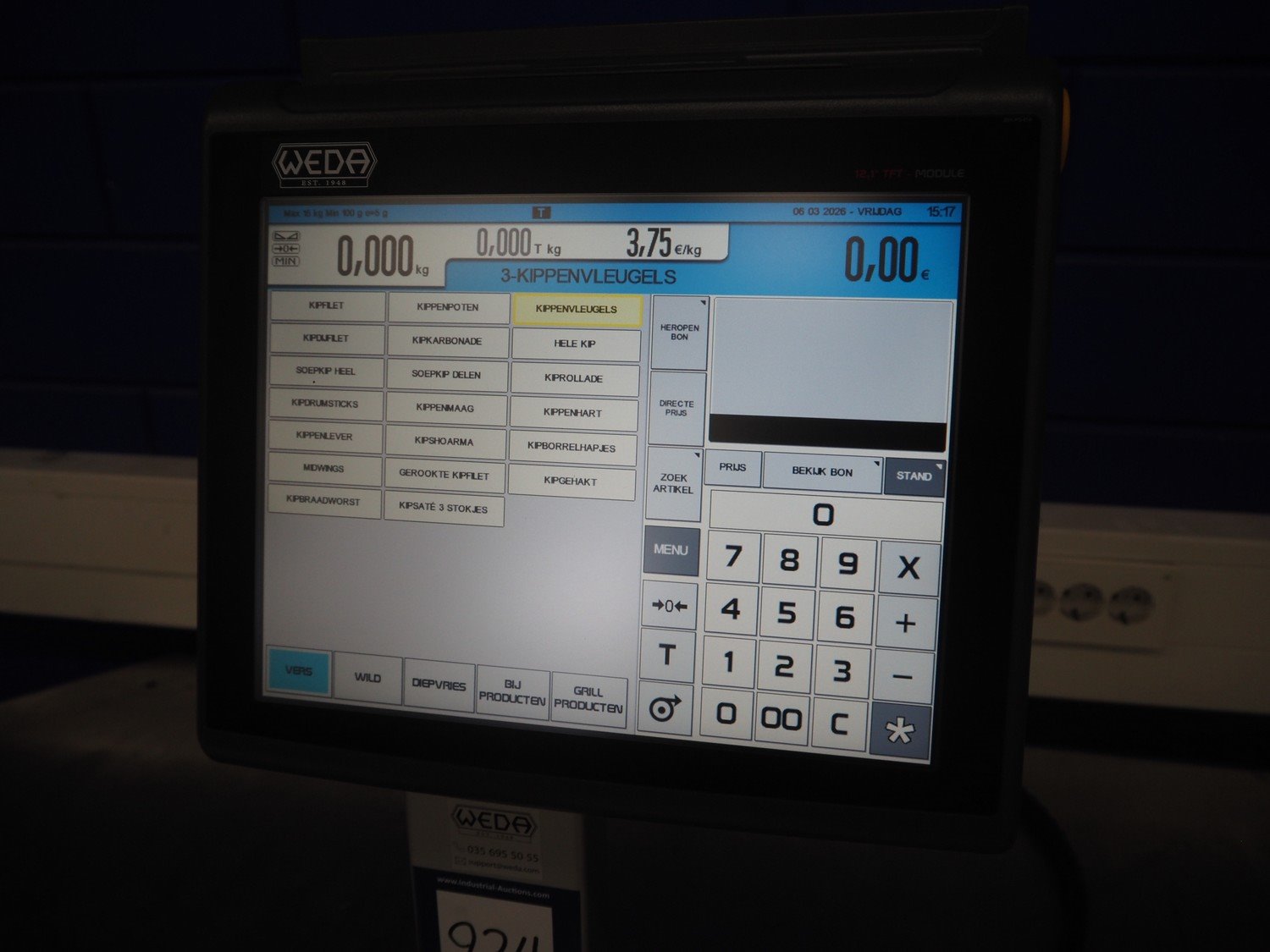 Dibal S.A. weighing scale with label printer and scanner, model: D-900 series, serial number: 31920960, 110-230 V, 50/60 Hz, 1.2 A, maximum weight: 15 kg, minimum weight: 100 gram, e= 5 gram, T= -14.995 kg, dimensions scale: 360 mm x 280 mm, total dimensions: 380 mm x 460 mm x 620 mm. Kavel locatie: Looyenbeemd 11, 5652 BH Eindhoven, Nederland