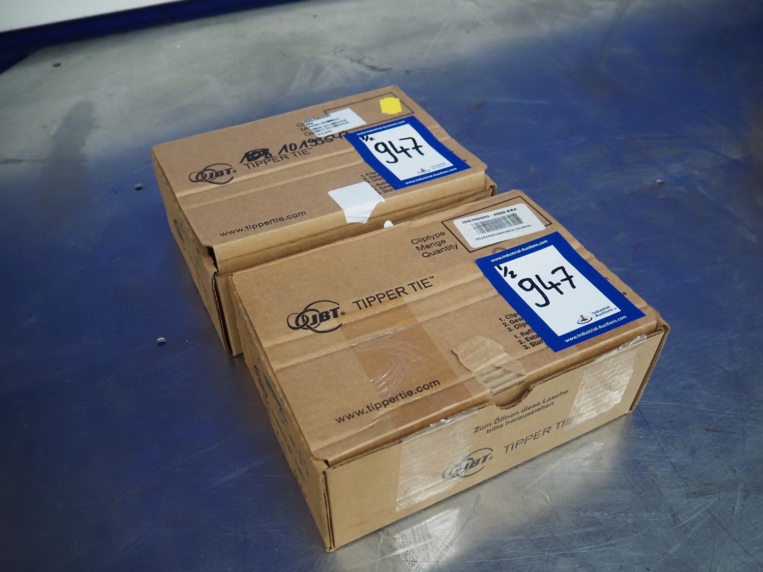 2 boxes with JBT Tipper Tie clips, dimensions: (2x) 250 mm x 180 mm x 100 mm. Kavel locatie: Looyenbeemd 11, 5652 BH Eindhoven, Nederland